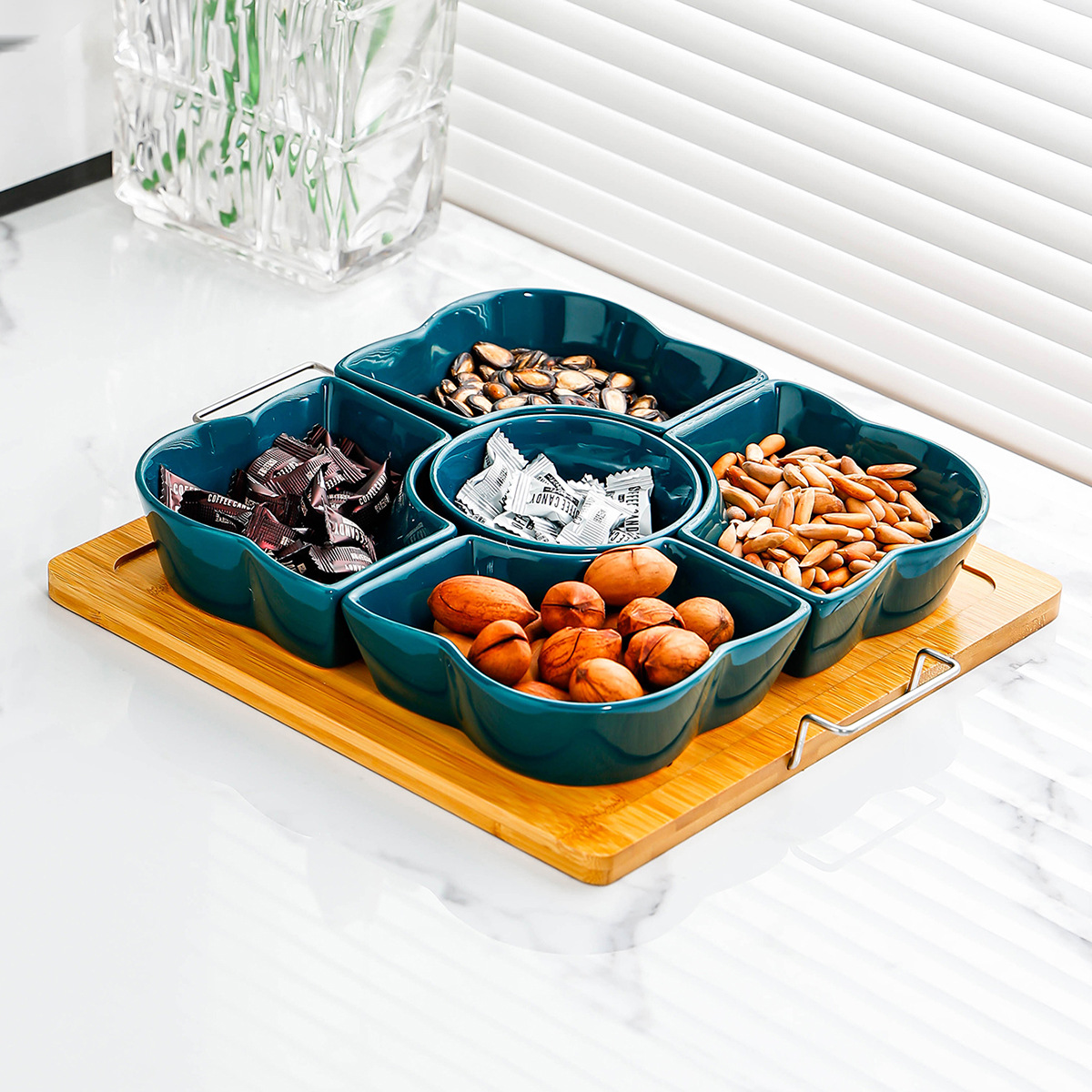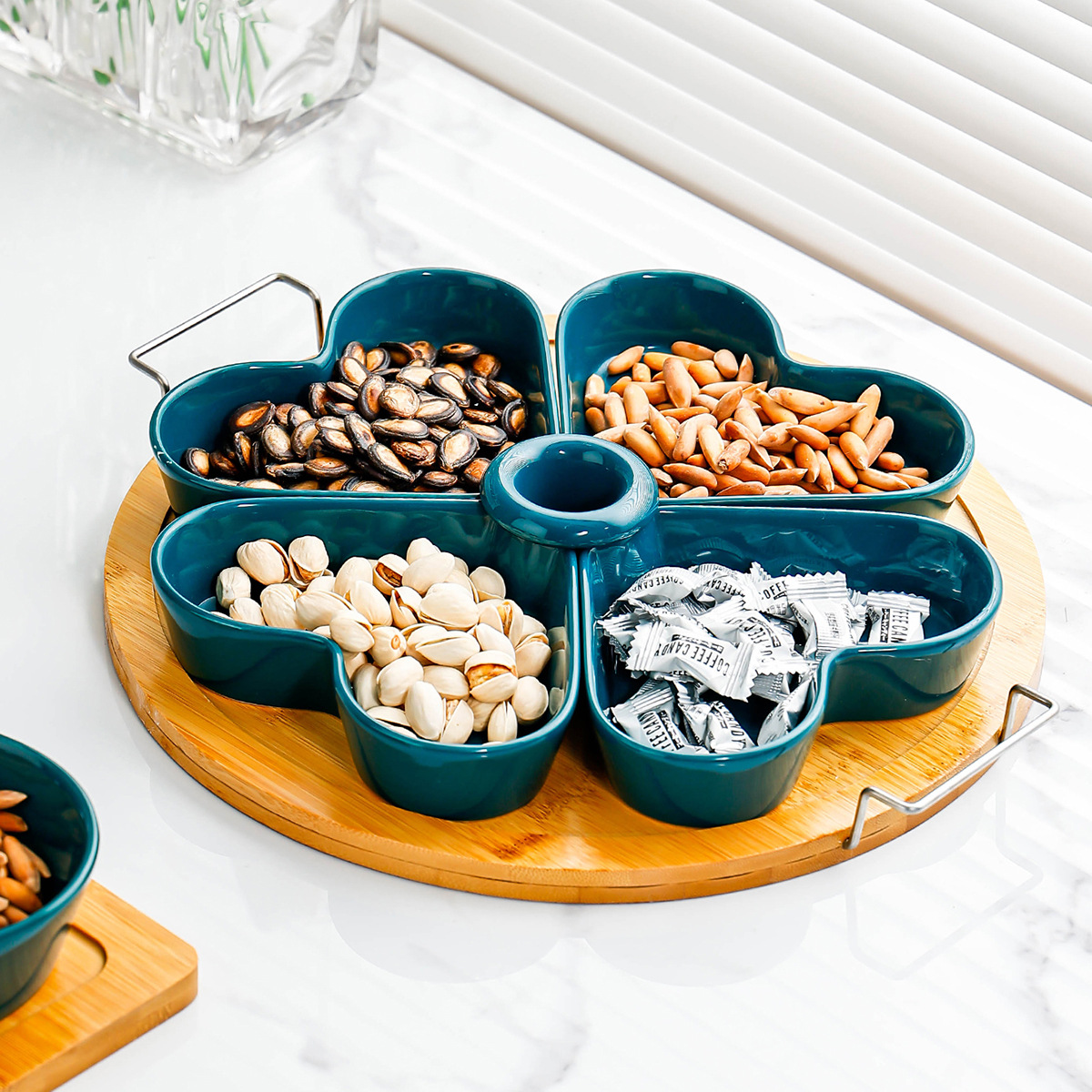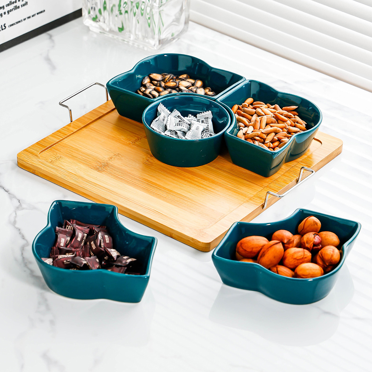 세라믹 말린 과일 플래터 조합 멀티 그리드 과일 플레이트 거실 크리에이티브 스낵 캔디 플레이트 멜론과 견과류 새해스토어 가기