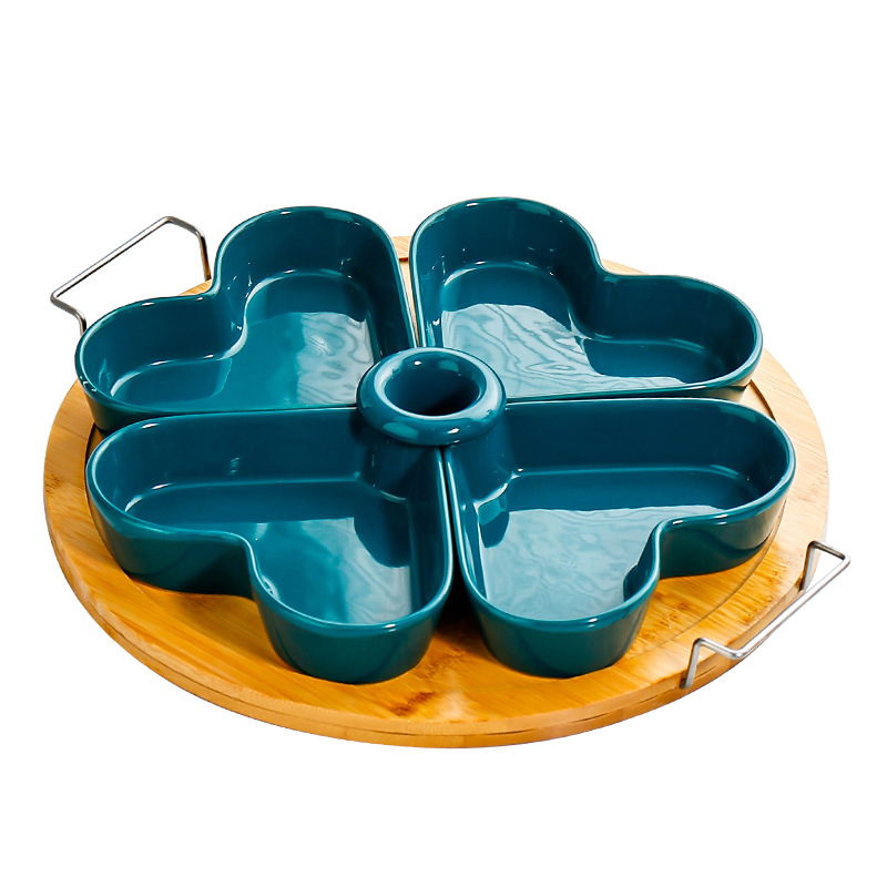 • B형 원형 4접시 나무 트레이 말린 과일 접시