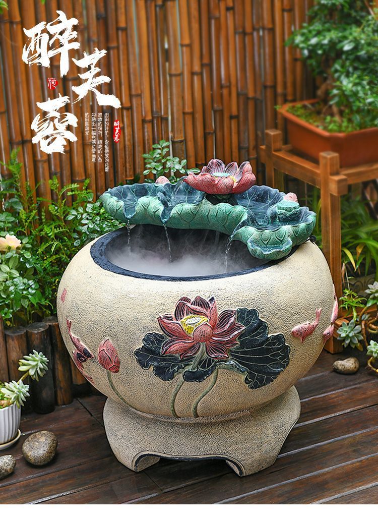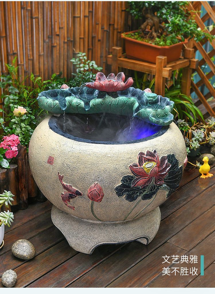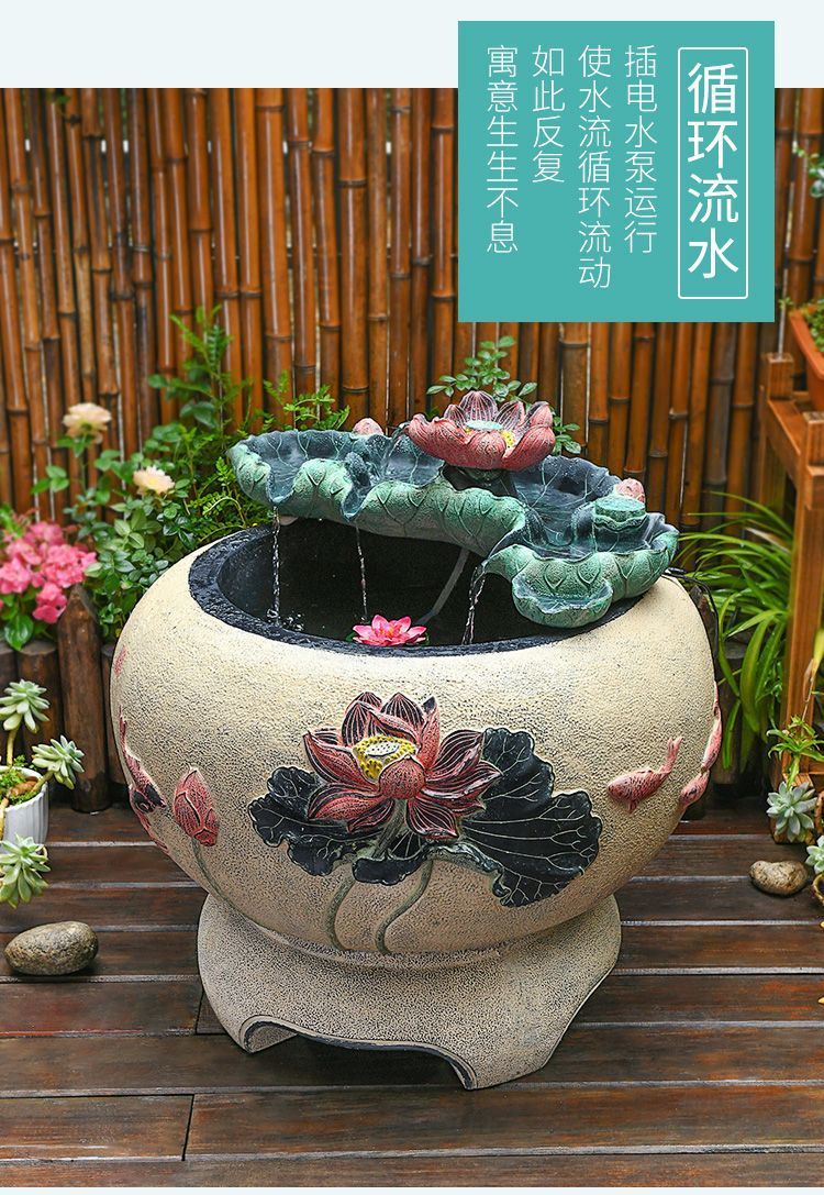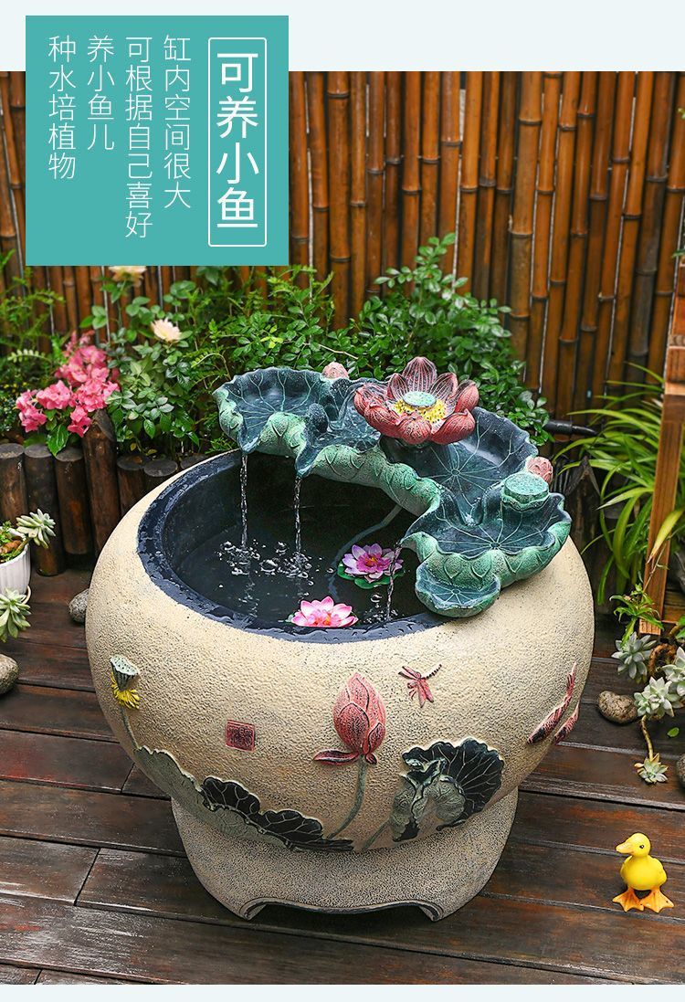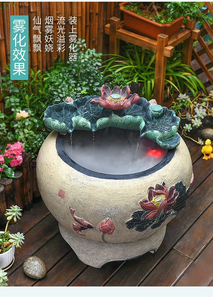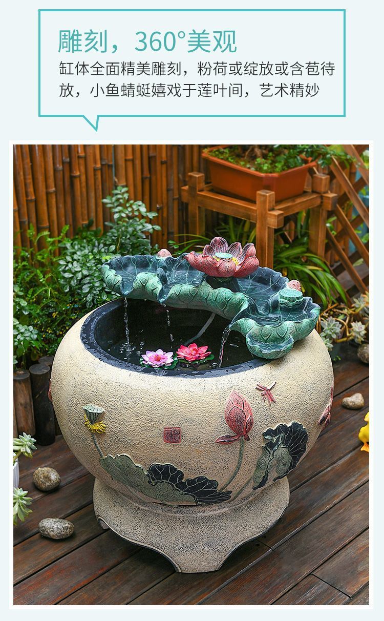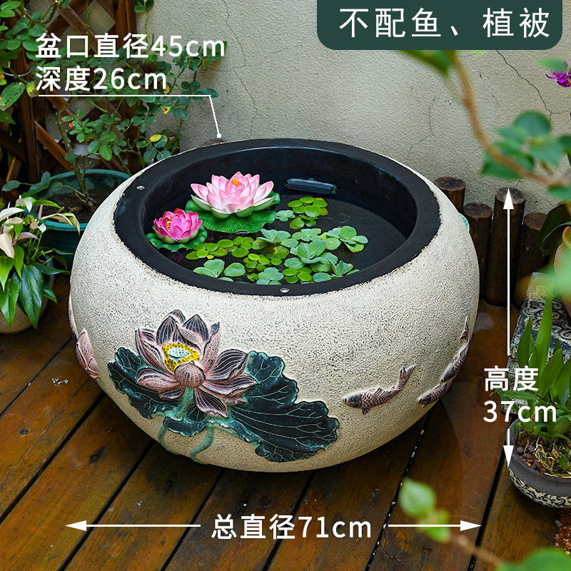 더 크고 두꺼운 둥근 연꽃 수조, 필터링된 순환 물 수조, 안뜰 야외 조경 장식품