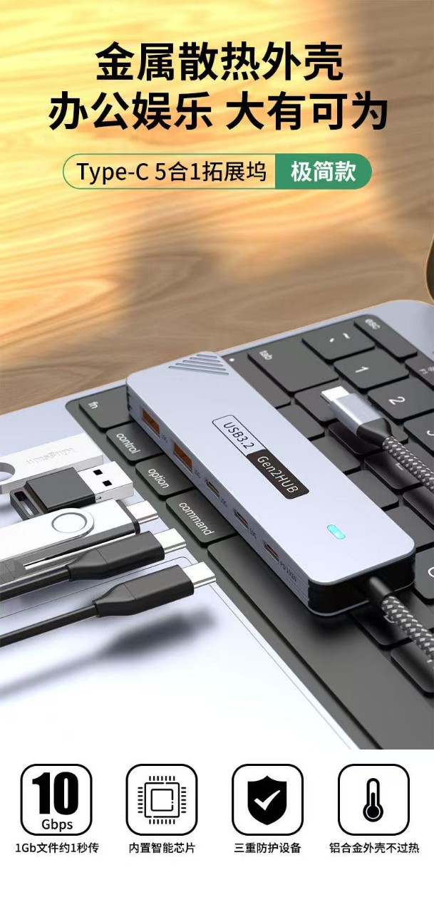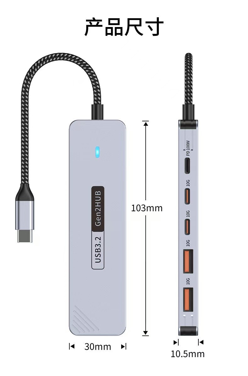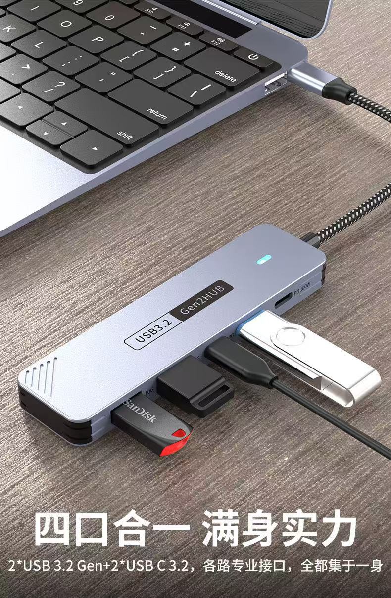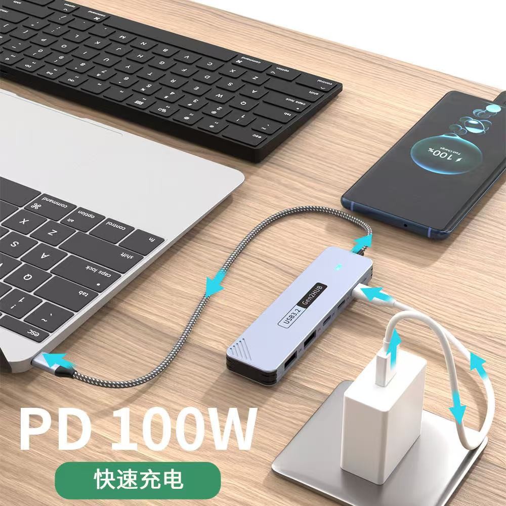 새로운 4포트 듀얼 USB3.2 듀얼 TYPE-C 인터페이스 허브 100WPD 충전 기능이 있는 고속 10Gbps 확장기