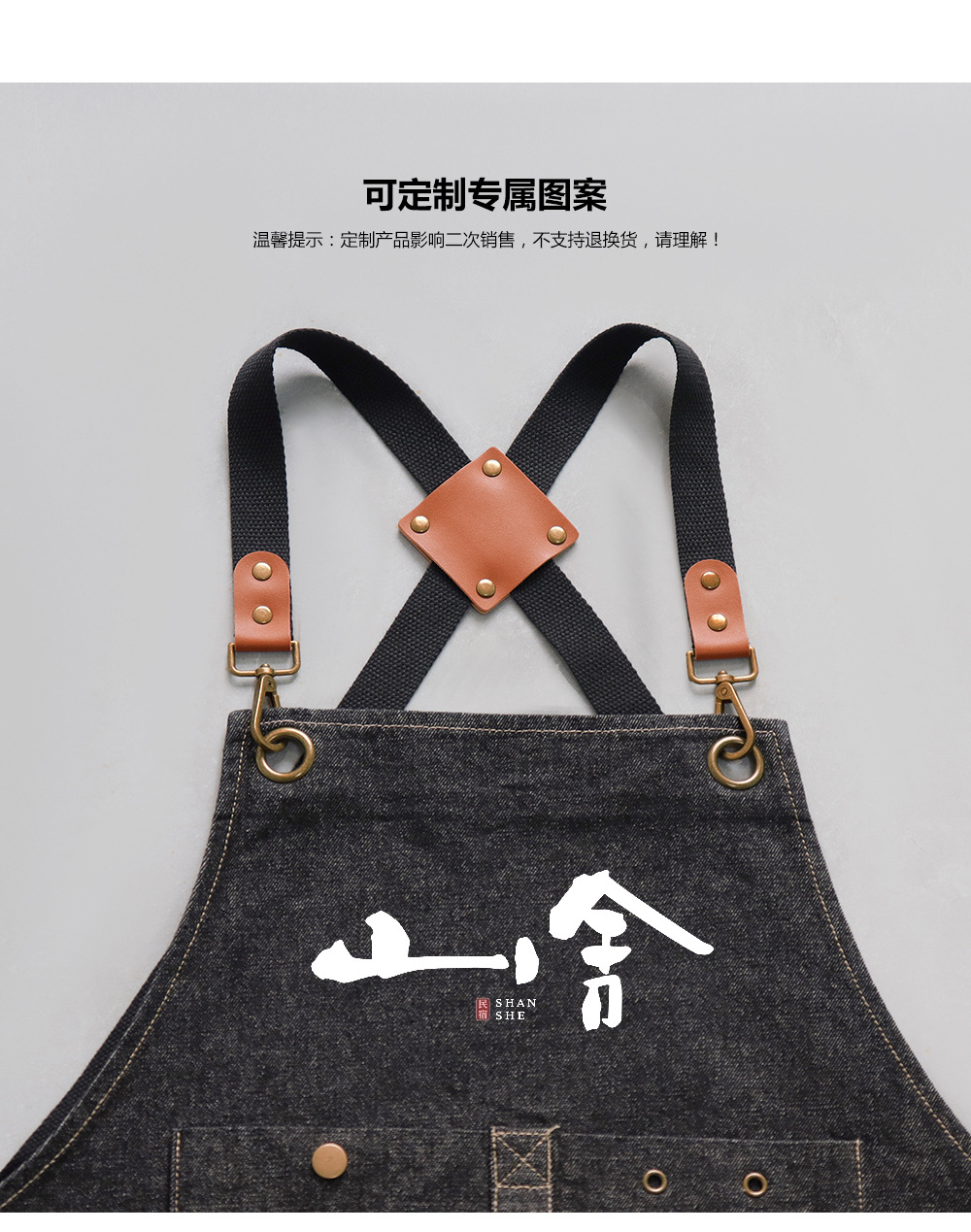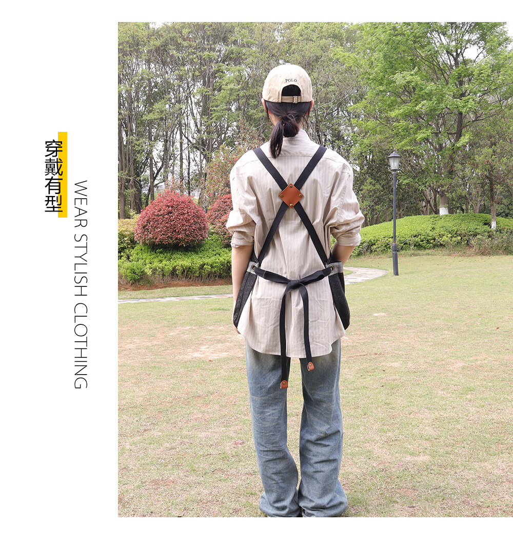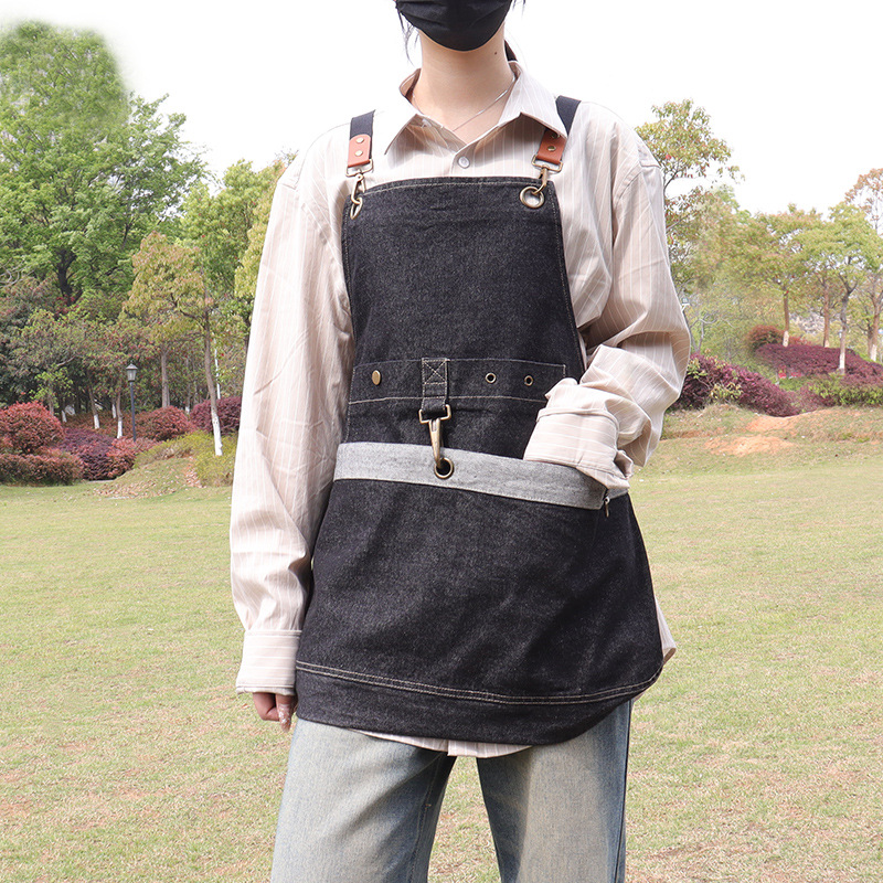 헤어 및 매니큐어 아티스트를 위한 맞춤형 로고가 있는 국경 간 데님 앞치마, 밀크티 가게, 커피숍 작업복, 가정용 앞치마 도매