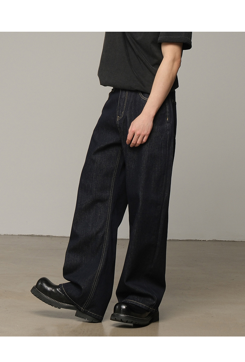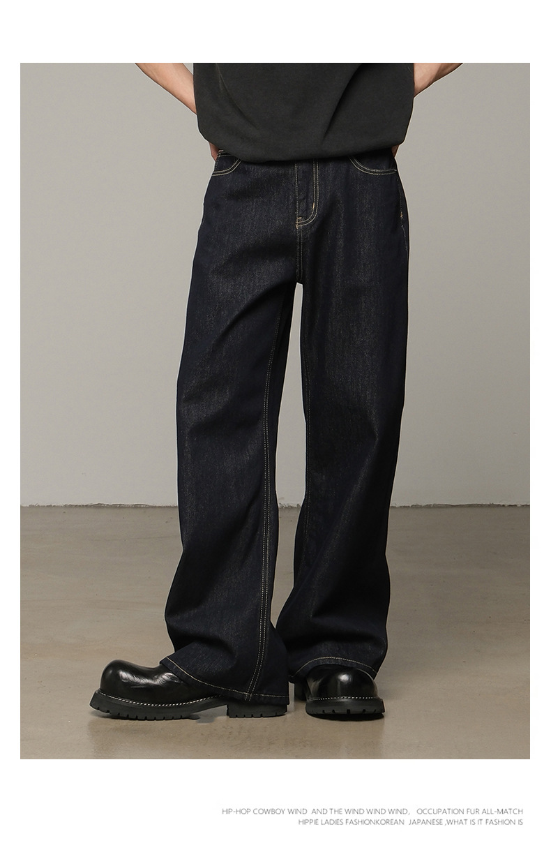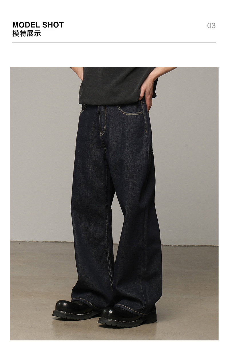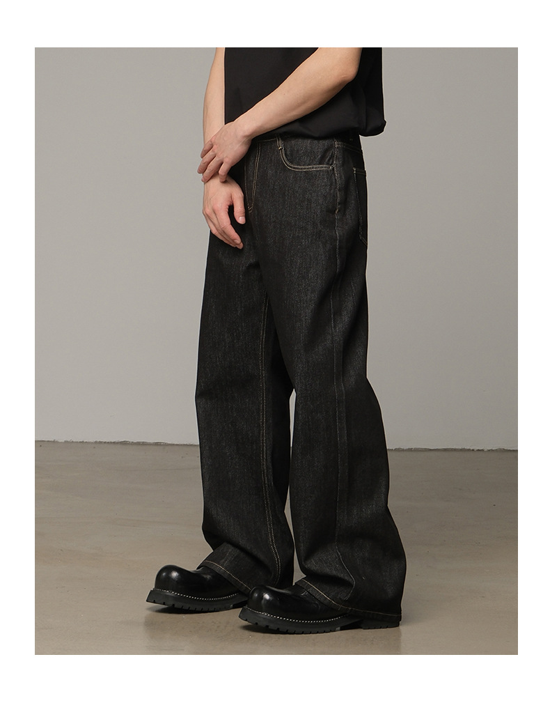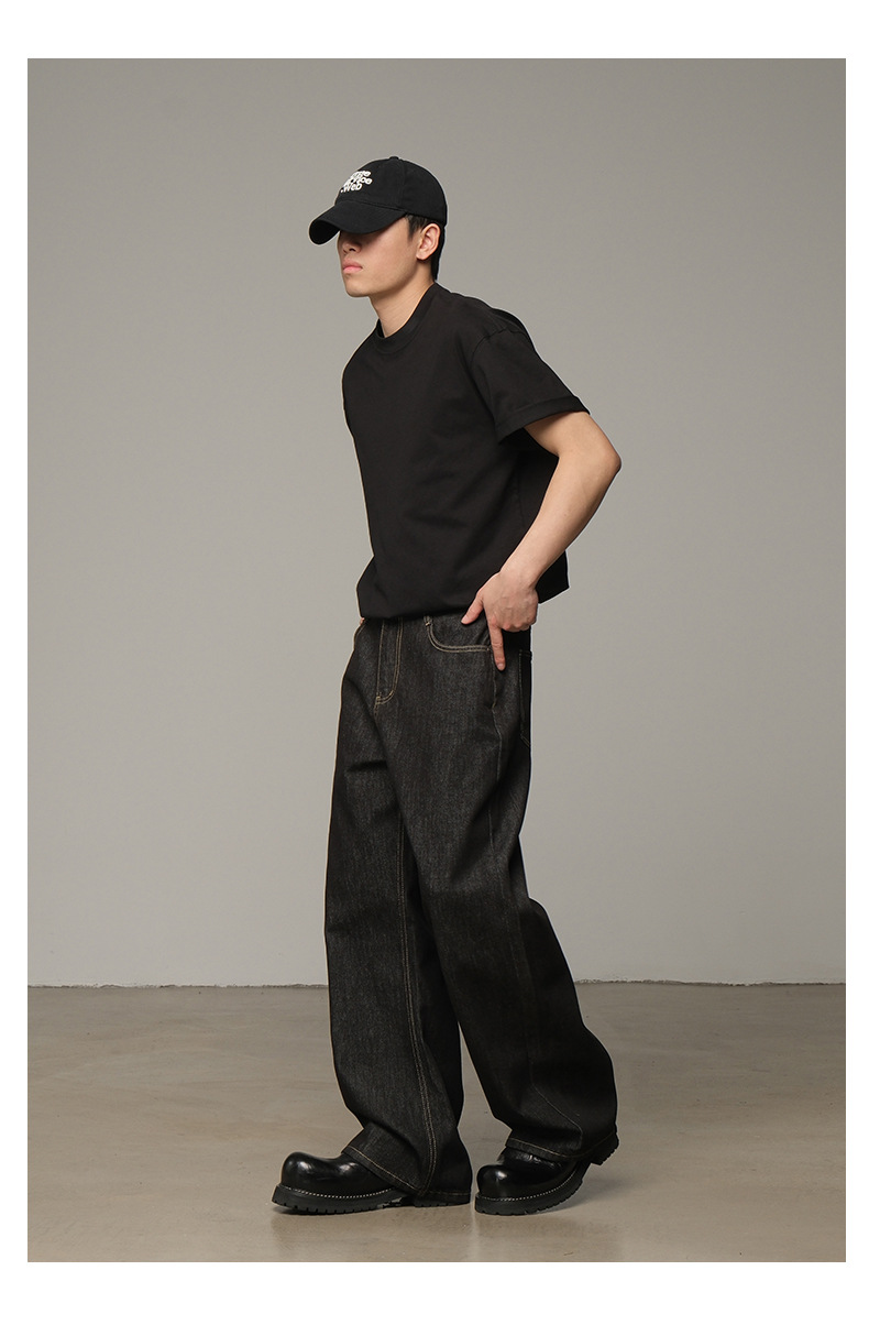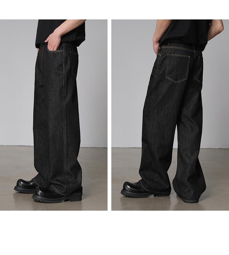 2025 아메리칸 레트로 오리지널 소가죽 청바지 남성용 블랙 루즈 스트레이트 A 라인 와이드 레그 롱 팬츠 여름 새 스타일스토어 가기