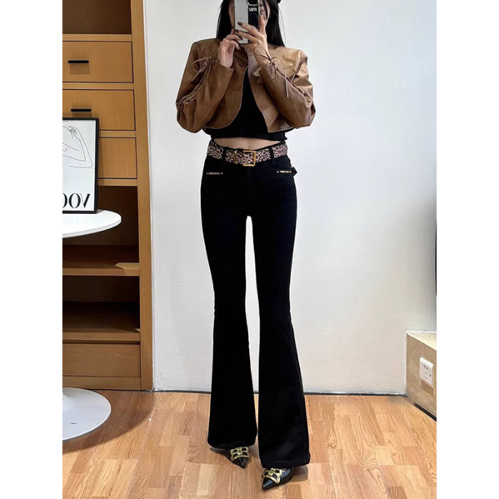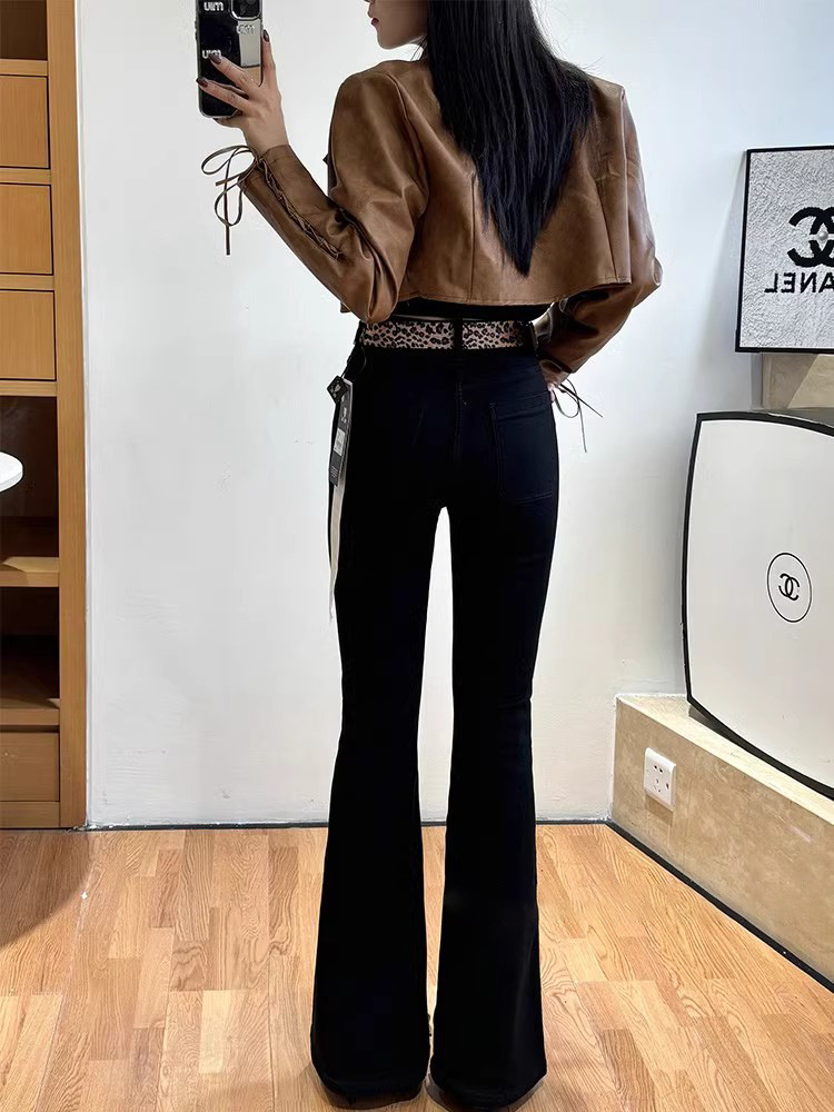 2025年春季新款高腰百搭微喇牛仔裤女弹力修身显瘦提臀喇叭马蹄裤