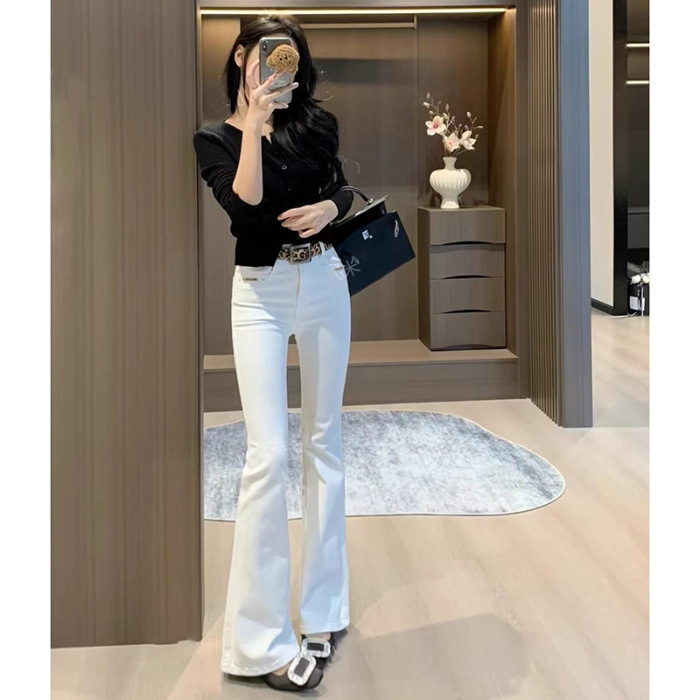 2025年春季新款高腰百搭微喇牛仔裤女弹力修身显瘦提臀喇叭马蹄裤스토어 가기