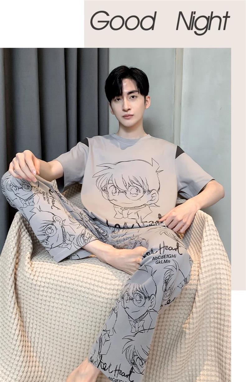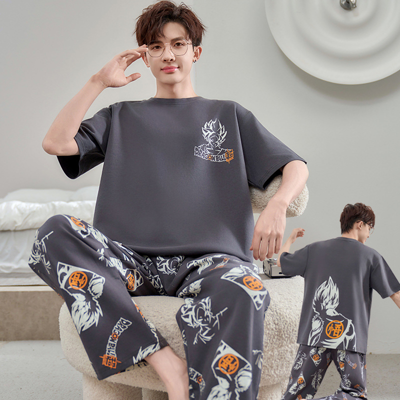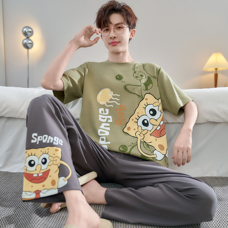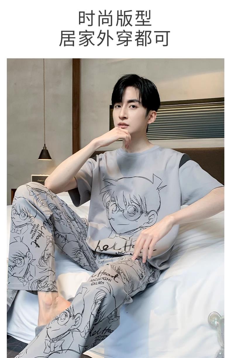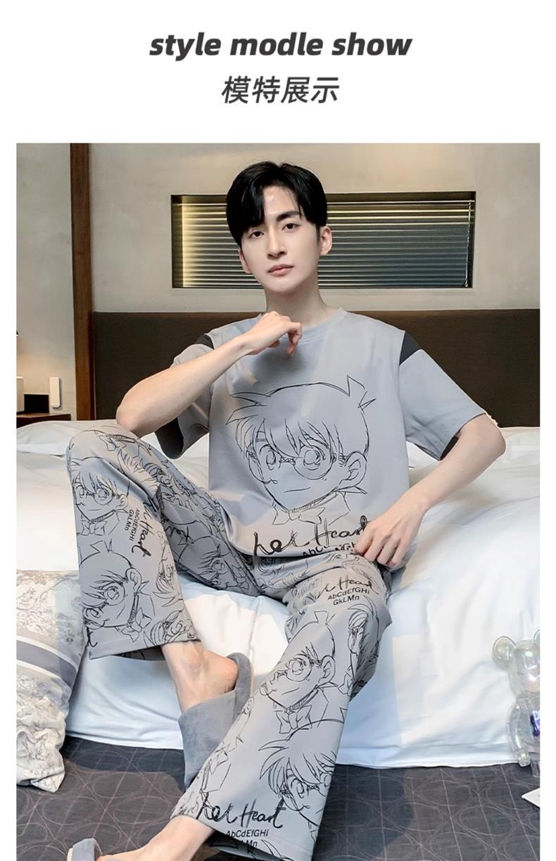남성용 잠옷 2025 새로운 여름 순수 코튼 반팔 바지 얇은 가을 대형 만화 홈웨어 세트스토어 가기