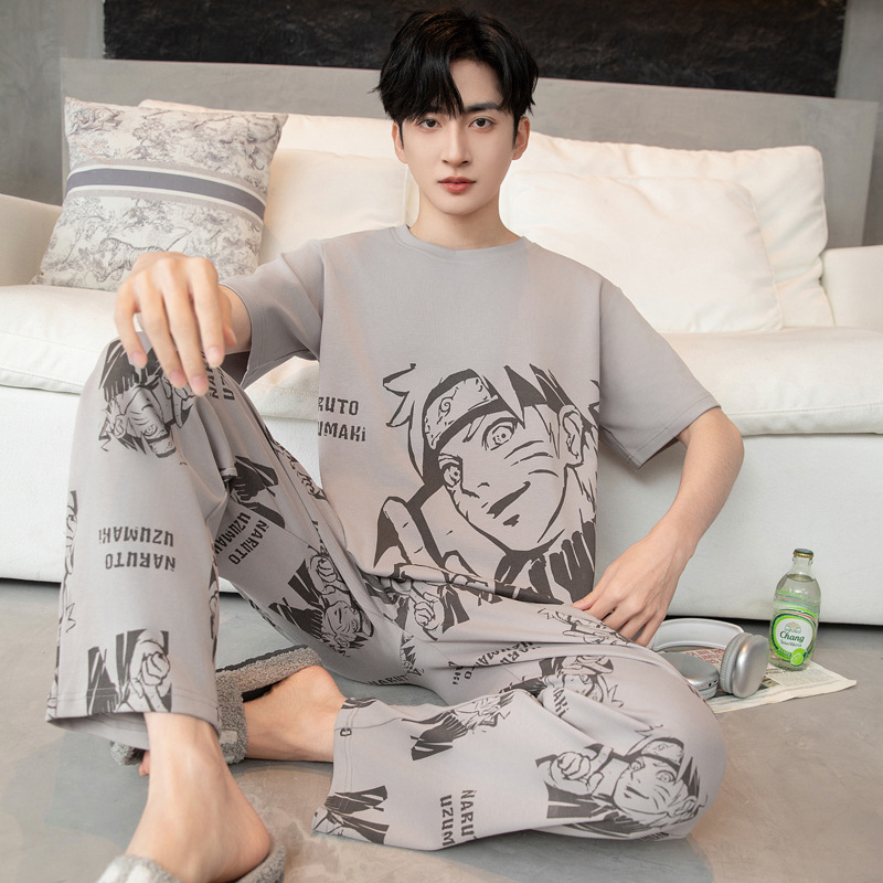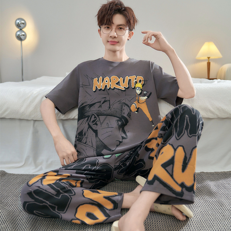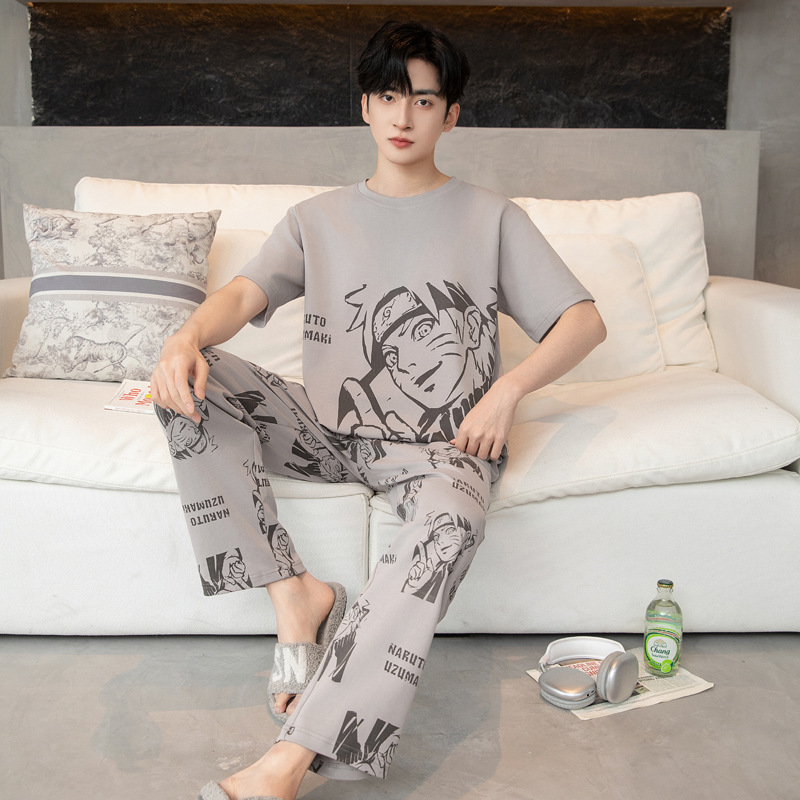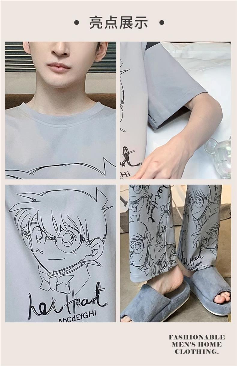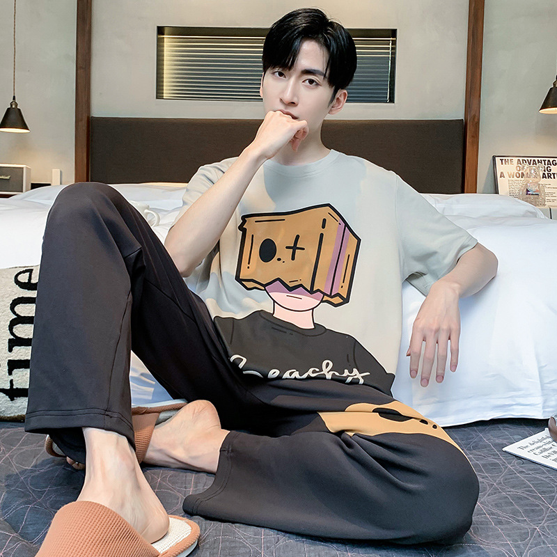 남성용 잠옷 2025 새로운 여름 순수 코튼 반팔 바지 얇은 가을 대형 만화 홈웨어 세트스토어 가기