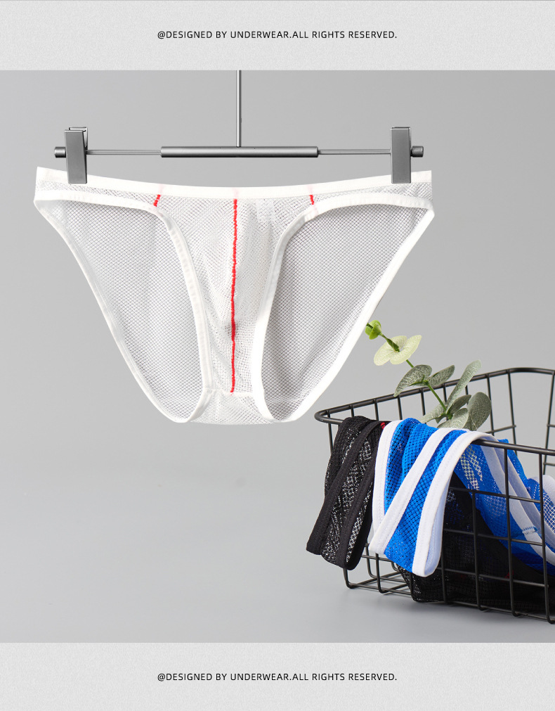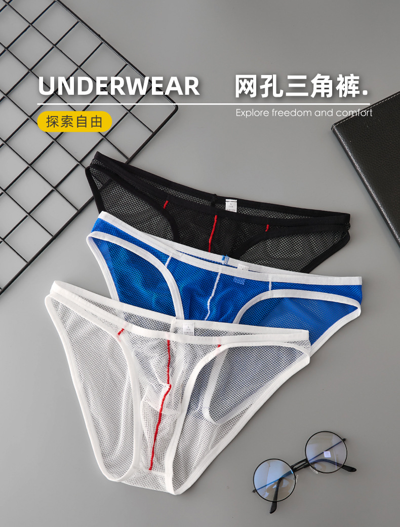 GTOPX男士薄款网纱冰丝透明三角裤 日系U凸低腰透气网孔性感内裤
