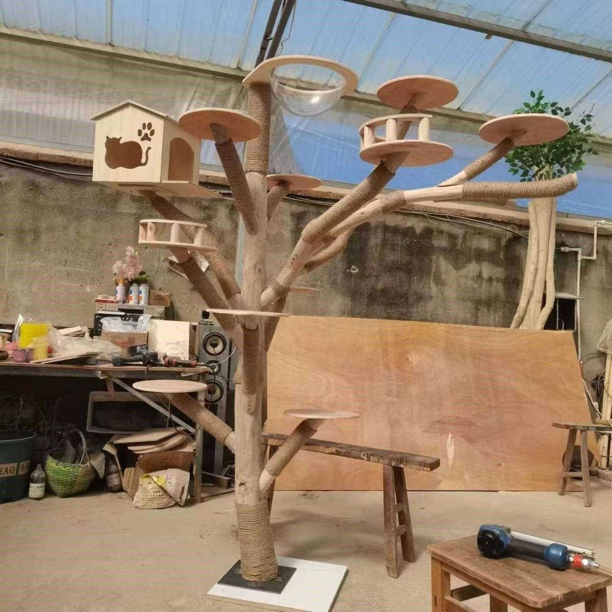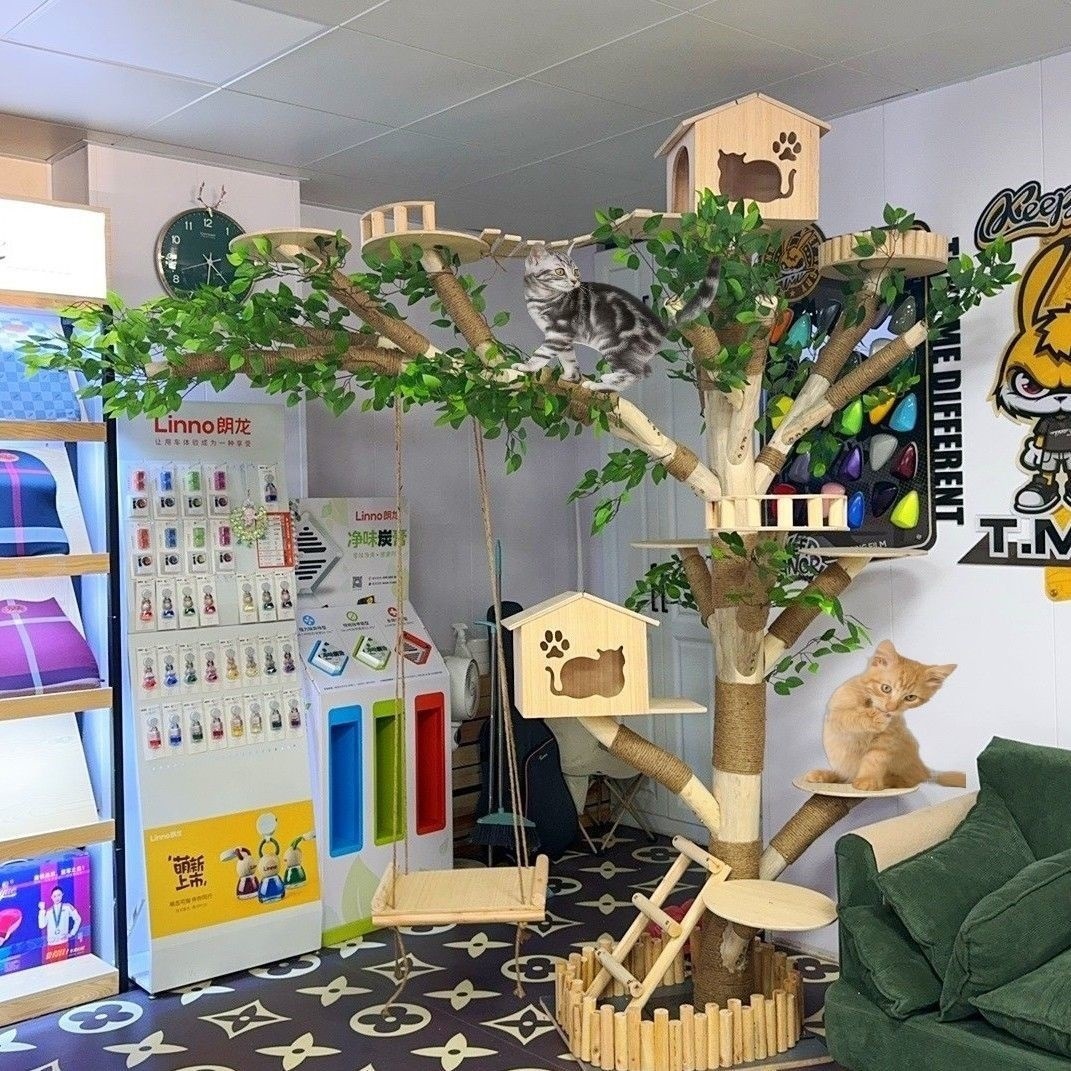 고양이 클라이밍 프레임, 고양이 둥지, 고양이를 위한 일체형 고양이 장난감, 고양이를 위한 재미있고 지루함을 해소하는 고양이 스크래치 기둥, 내마모성 및 부스러기 없는 원목 고양이 스크래치 기둥, 고양이 스크래치 보드스토어 가기