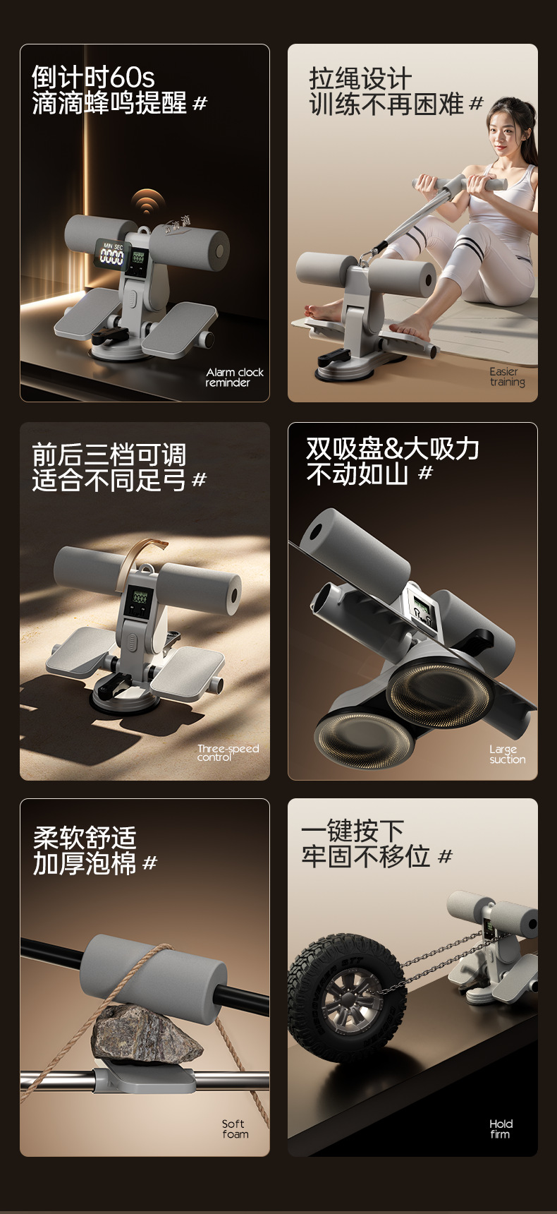 Zhijia Chronograph Sit-up 어시스턴트 피트니스 가구 다기능 실내 흡입 컵 롤업 텐션 픽서