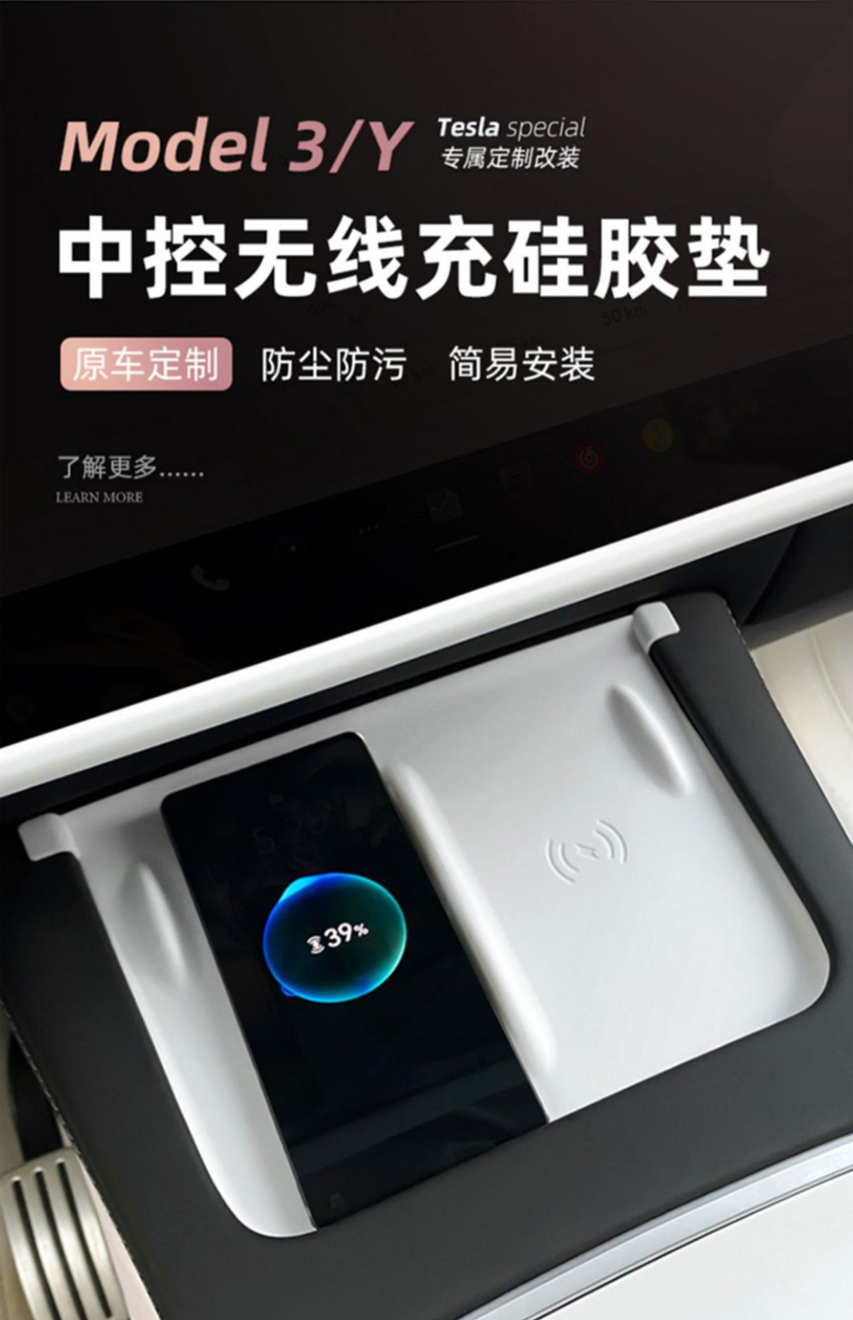 테슬라 자동차 무선 충전 실리콘 패드 Model3/Y 자동차 중앙 제어 충전 미끄럼 방지 패드 내부 액세서리에 적합스토어 가기