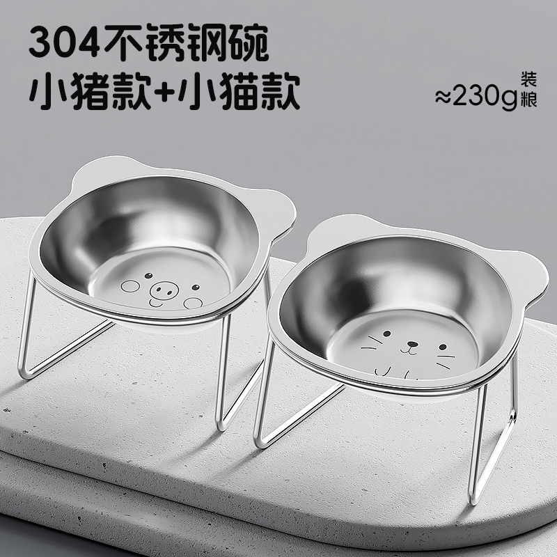 304 스테인레스 스틸 고양이 그릇, 개 그릇, 물 그릇, 식수 그릇, 애완 동물 목 보호대, 높이 조절 가능한 개밥 그릇, 애완 동물 그릇스토어 가기