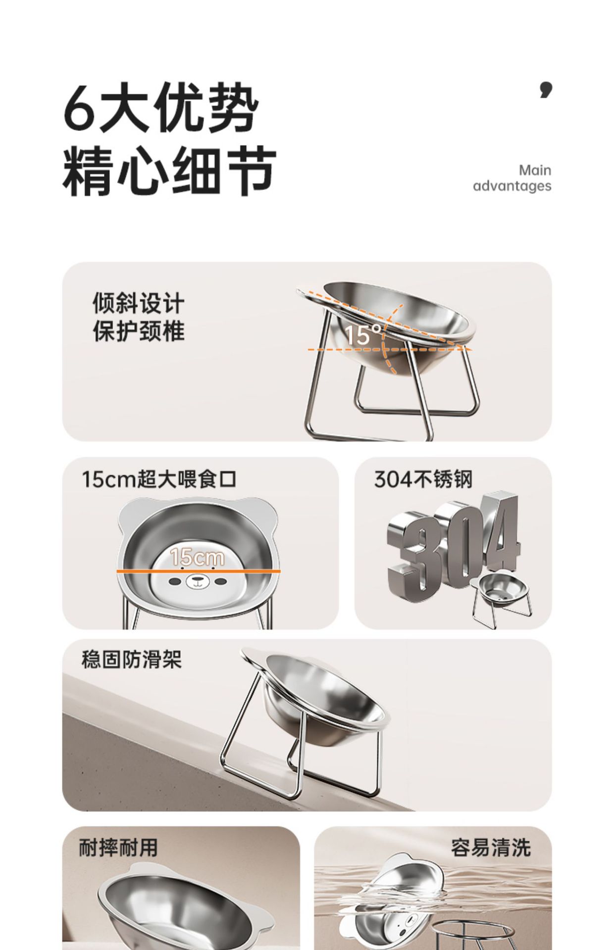 304 스테인레스 스틸 고양이 그릇, 개 그릇, 물 그릇, 식수 그릇, 애완 동물 목 보호대, 높이 조절 가능한 개밥 그릇, 애완 동물 그릇