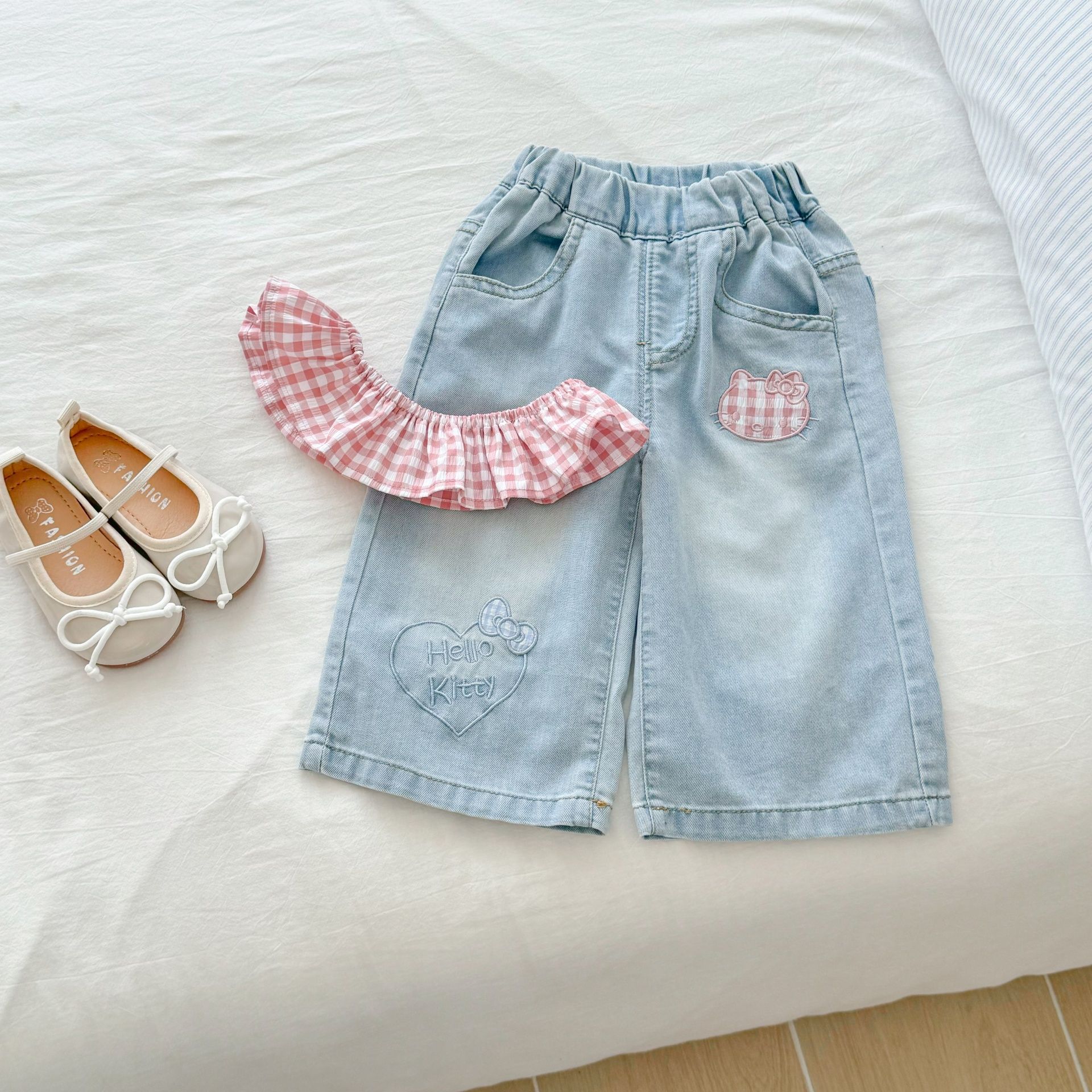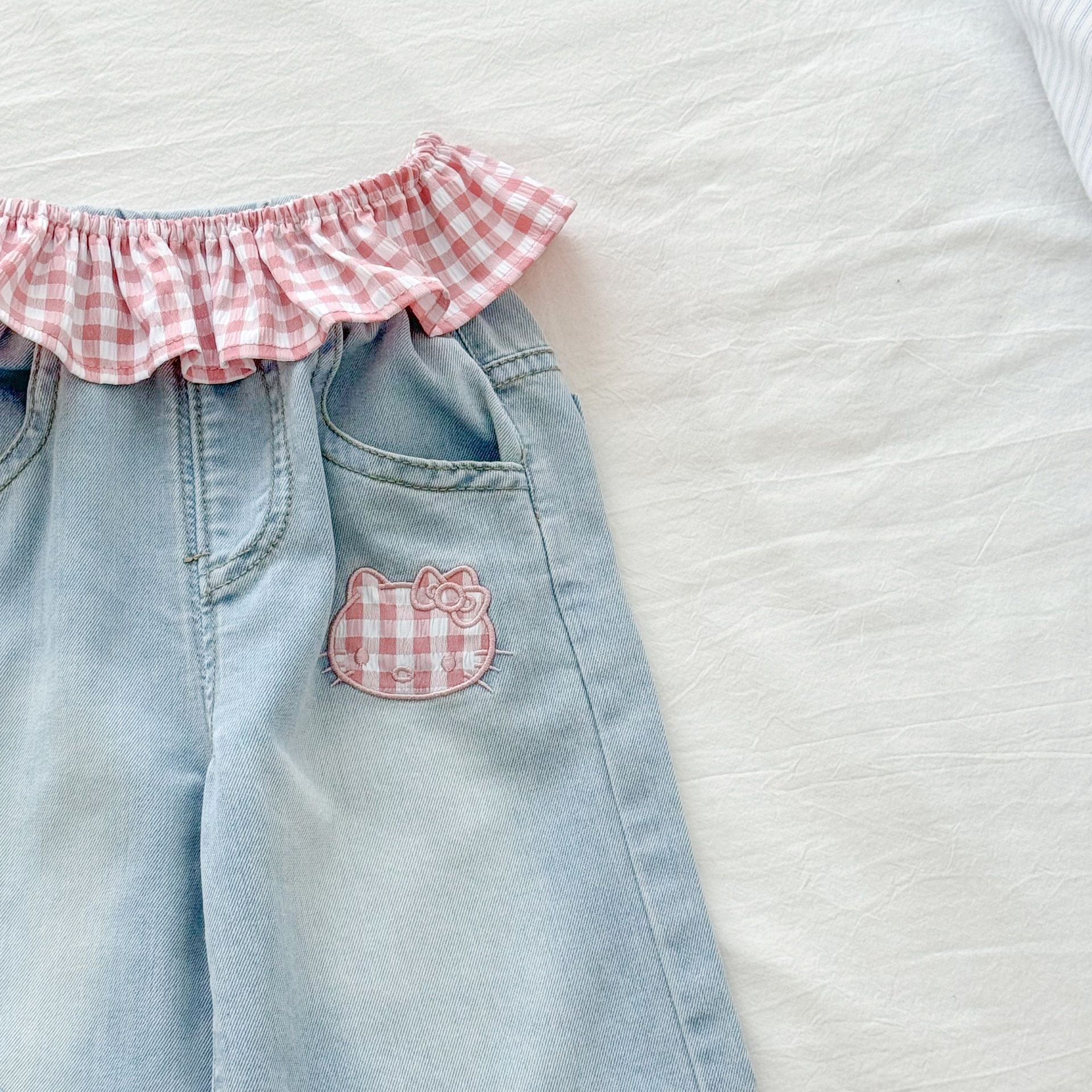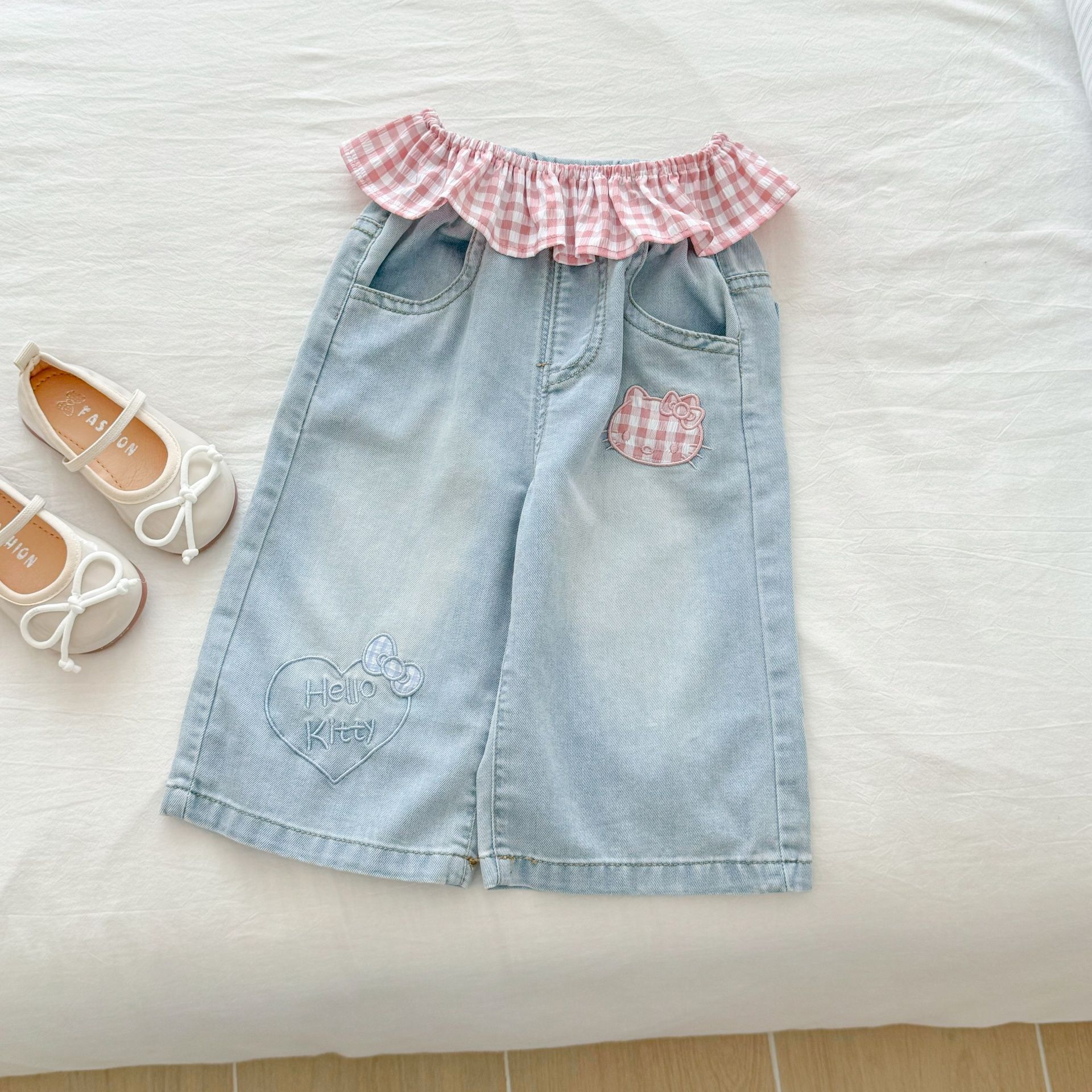 라임 소녀의 레이스 청바지 새로운 스타일 서양식 아기의 캐주얼 바지 어린이 자른 스트레이트 바지 여름스토어 가기