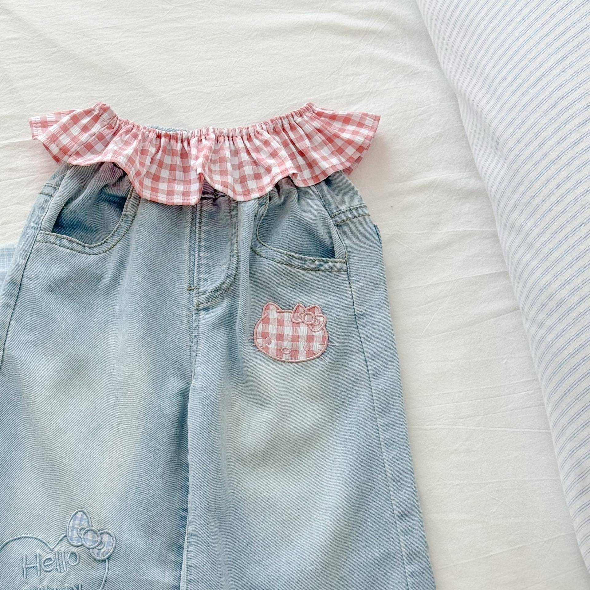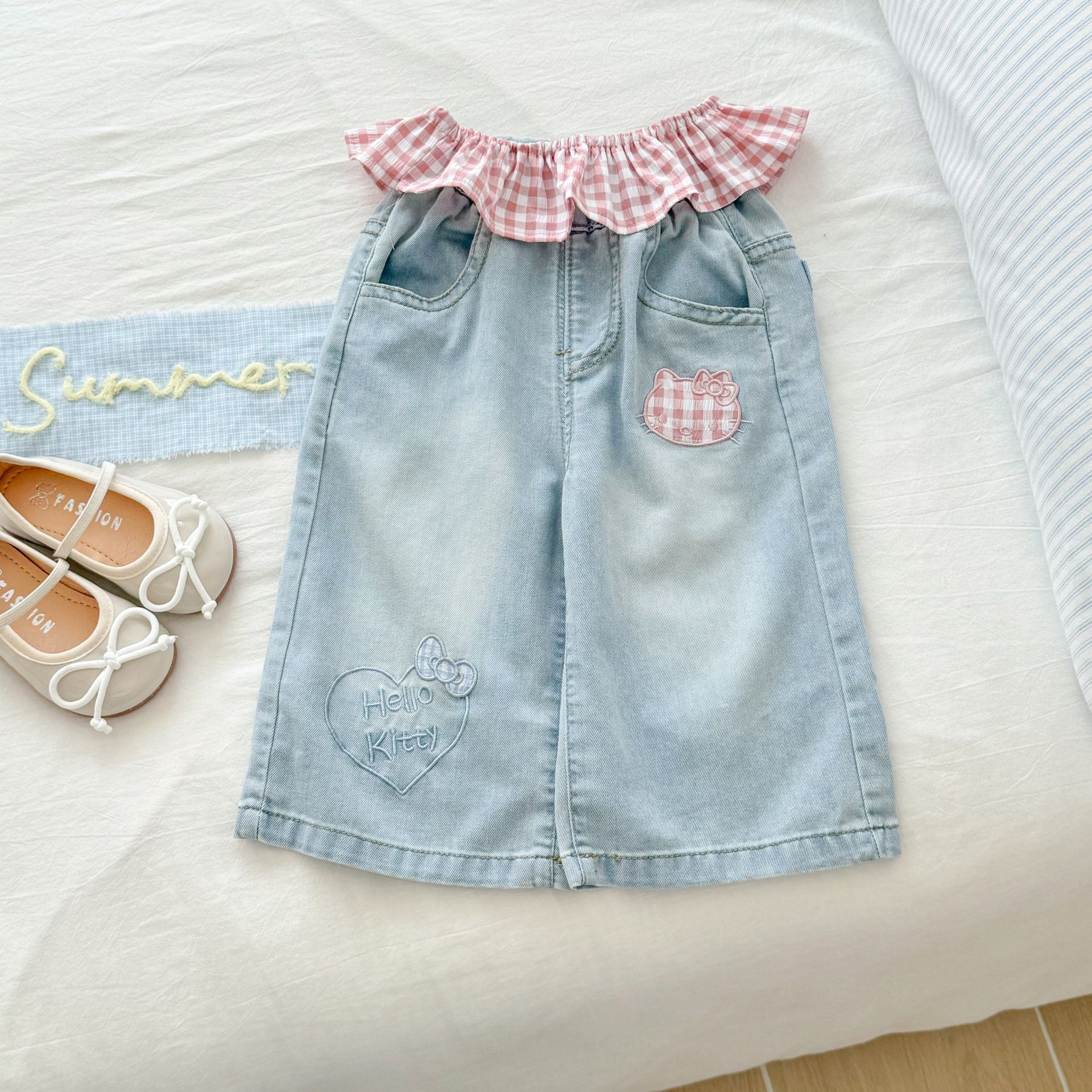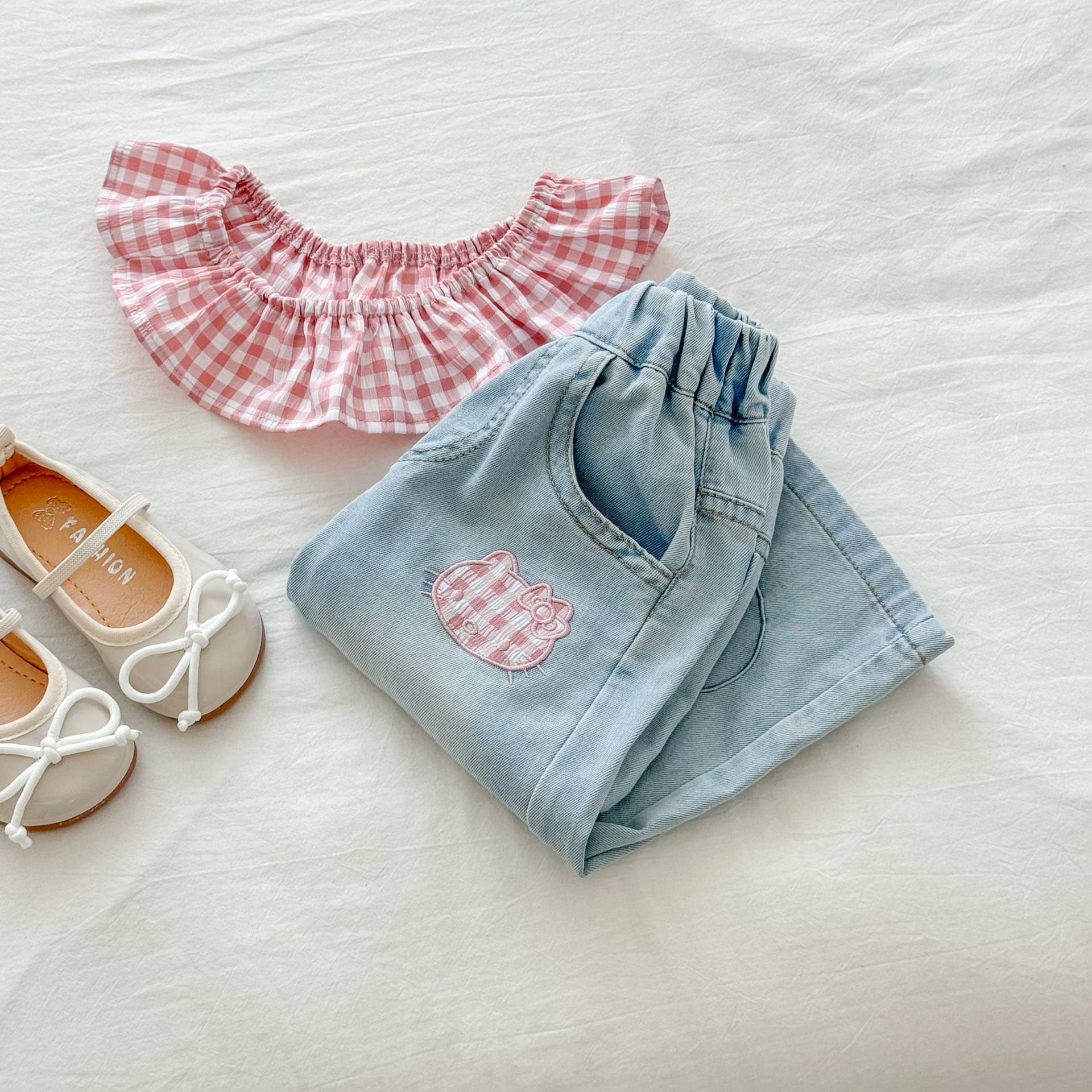 라임 소녀의 레이스 청바지 새로운 스타일 서양식 아기의 캐주얼 바지 어린이 자른 스트레이트 바지 여름스토어 가기