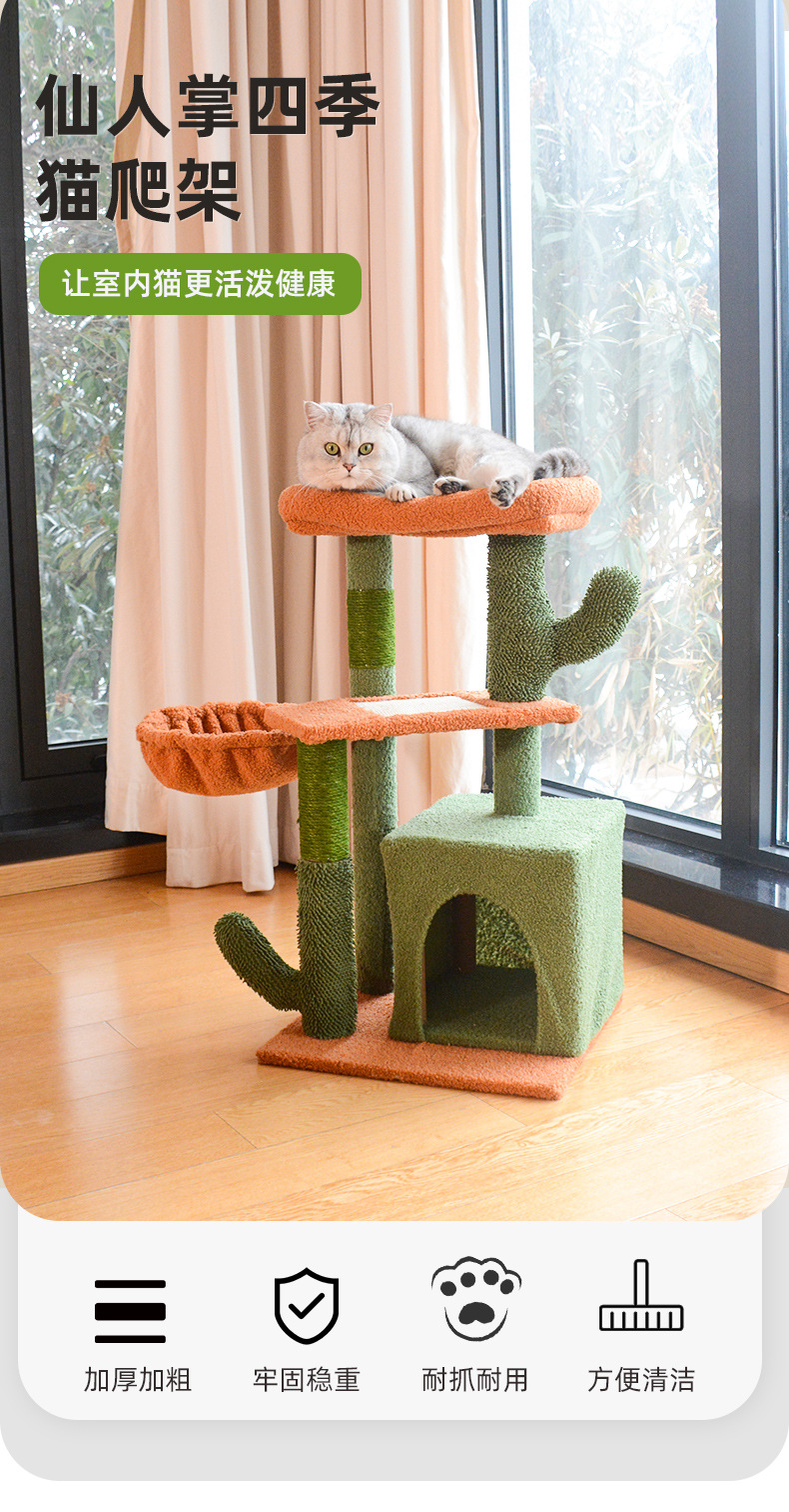 새로운 선인장 고양이 클라이밍 프레임, 작은 고양이 둥지, 고양이 트리, 일체형 고양이 타워, 국경 간 제조업체 도매, 원피스 드롭 배송