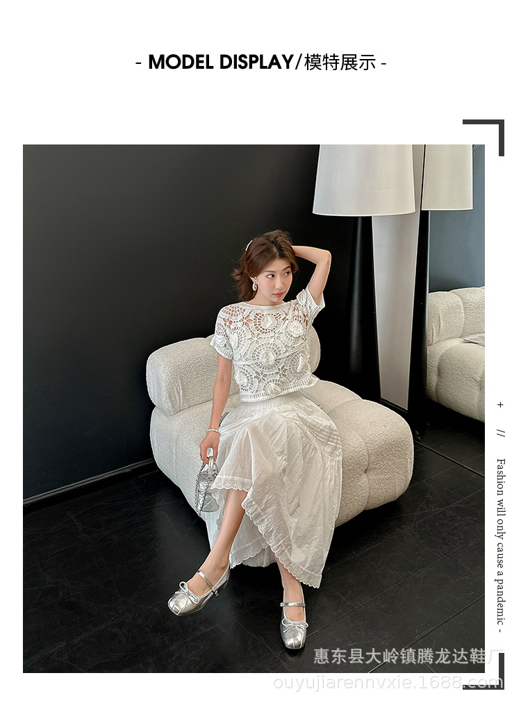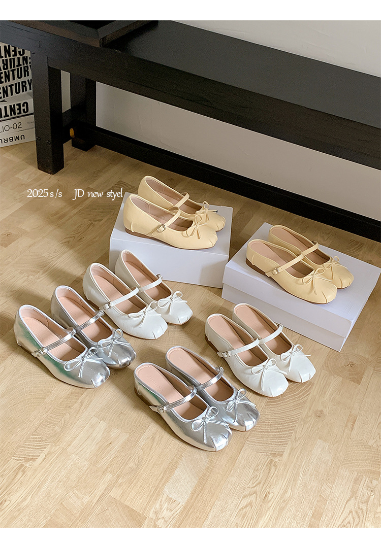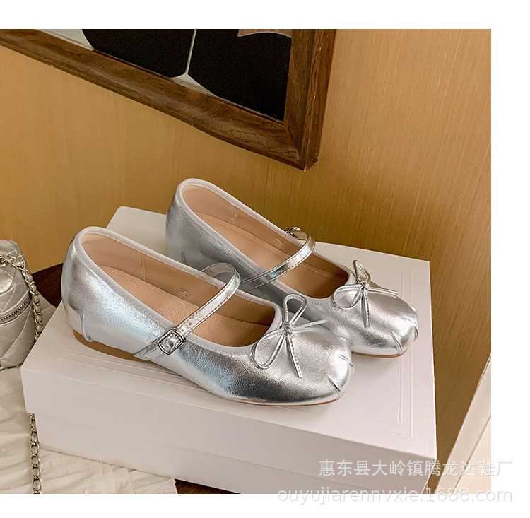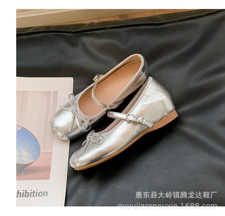 5cm 키높이, 프렌치 스타일의 여성용 발레 슈즈, 봄 여름 신상, 요정풍 실버 메리제인 슈즈스토어 가기