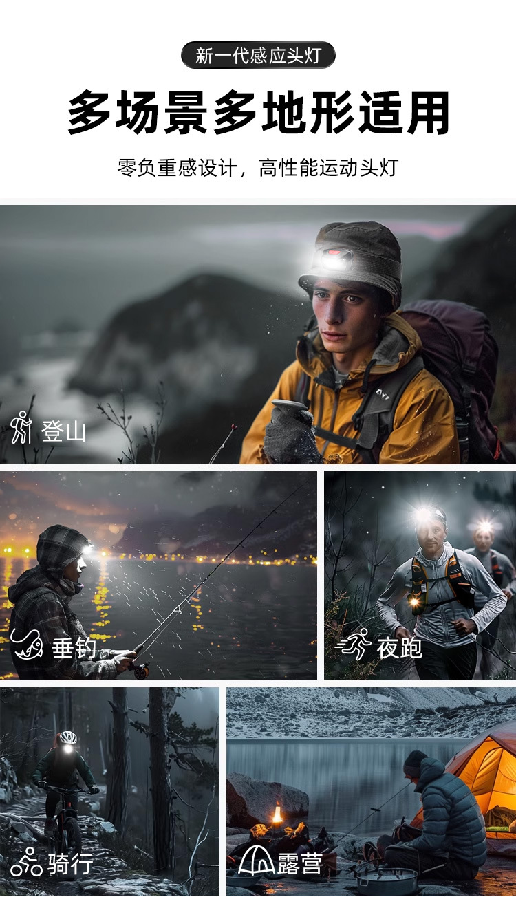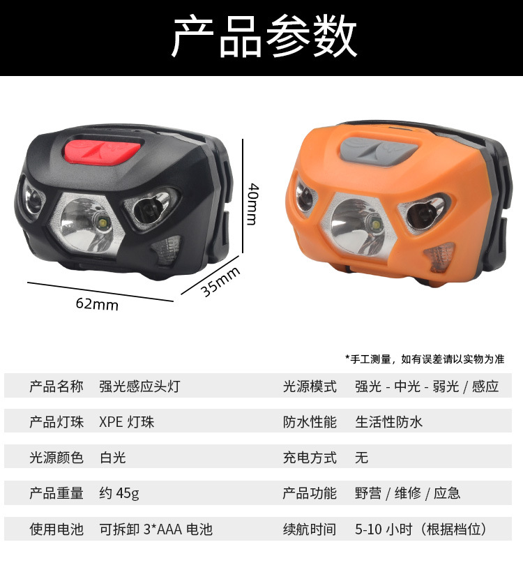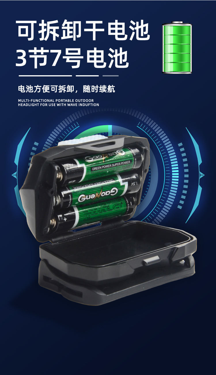 7번 건전지형 헤드램프 LED 강광 초강력 등산 낚시 전용 야간 낚시 센서 헤드램프