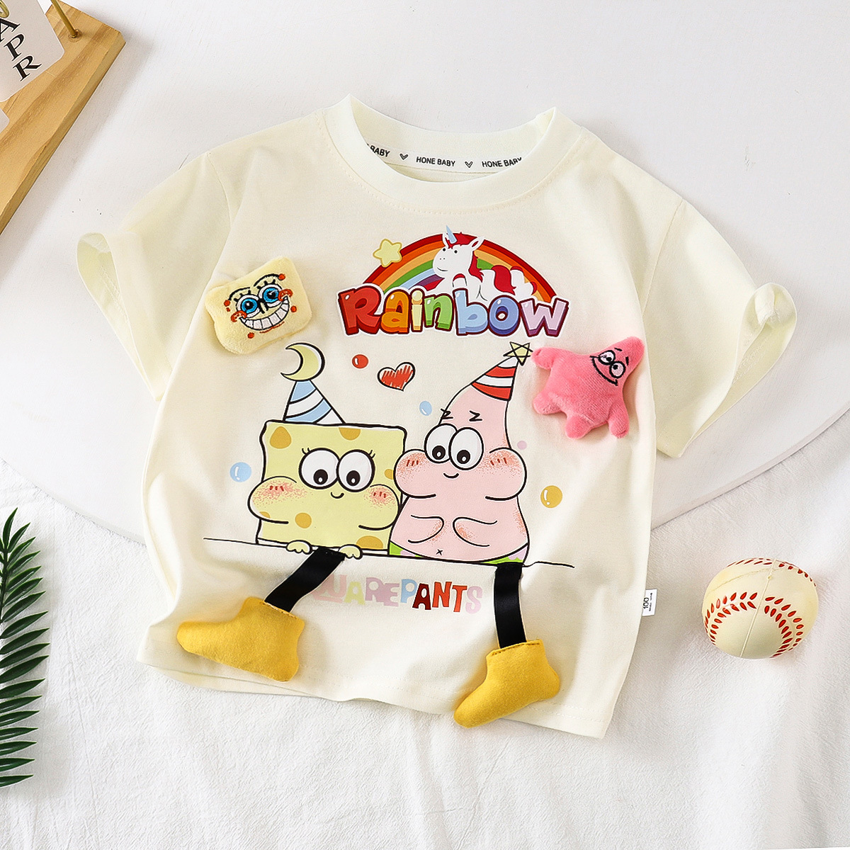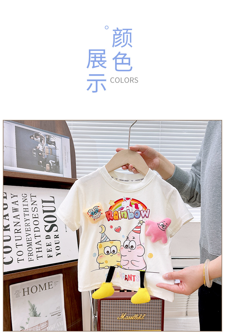 한국 아동복 어린이 여름 반팔 티셔츠 귀여운 만화 인쇄 3 차원 인형 옷 여름 서양식 반소매 T