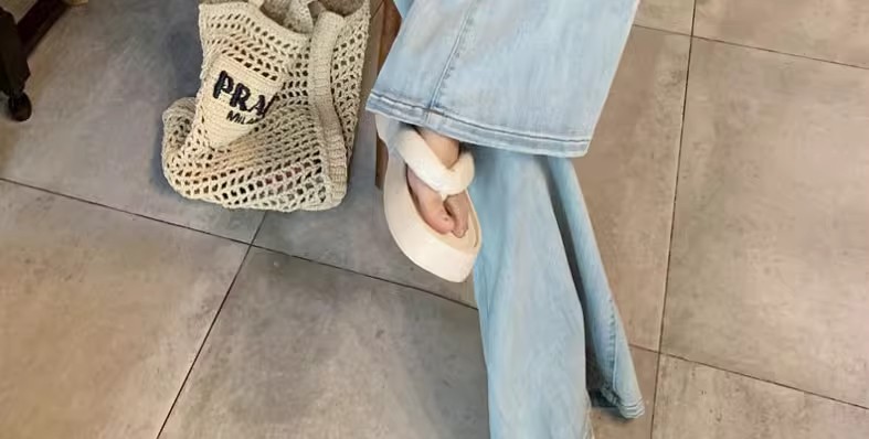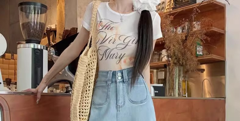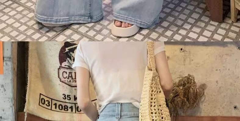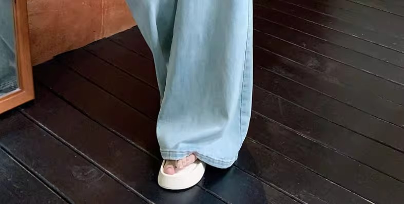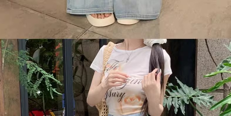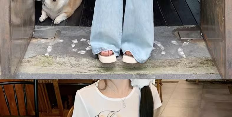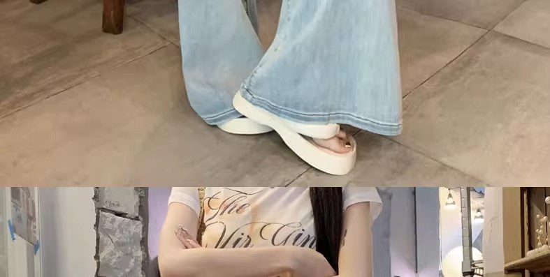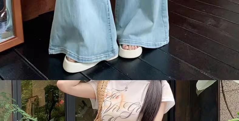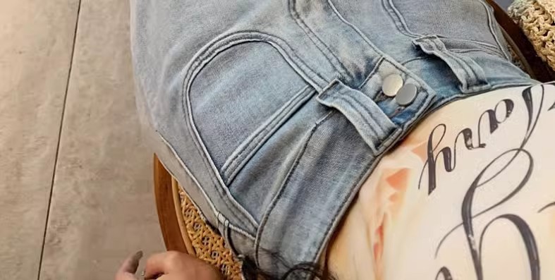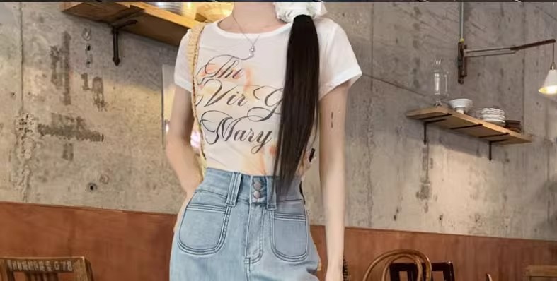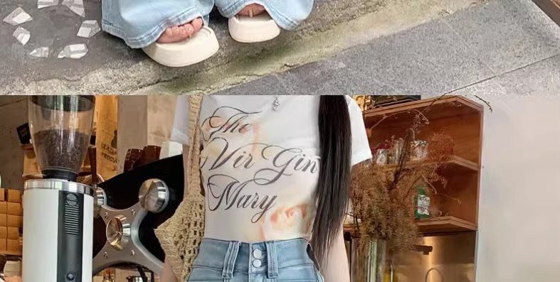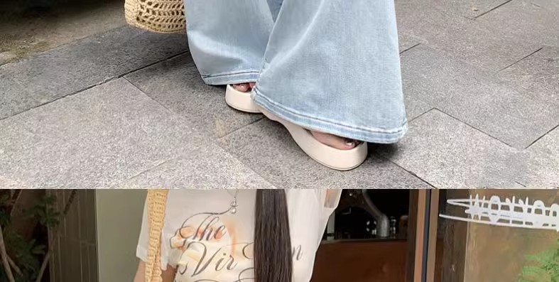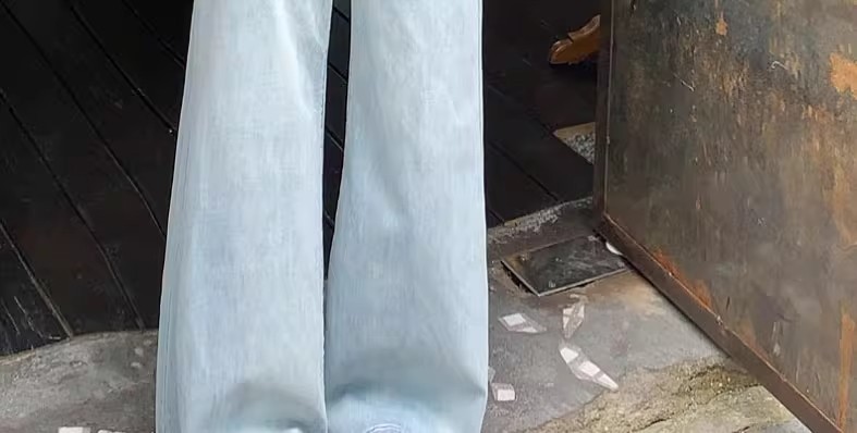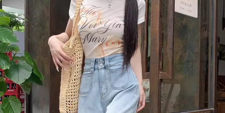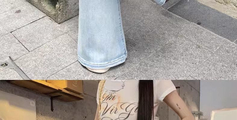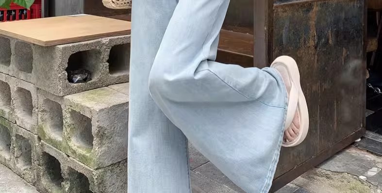 2025 봄 새로운 더블 버클 높은 허리 느슨하지 않은 약간의 청바지 여성의 닦아 넓은 다리 바지스토어 가기