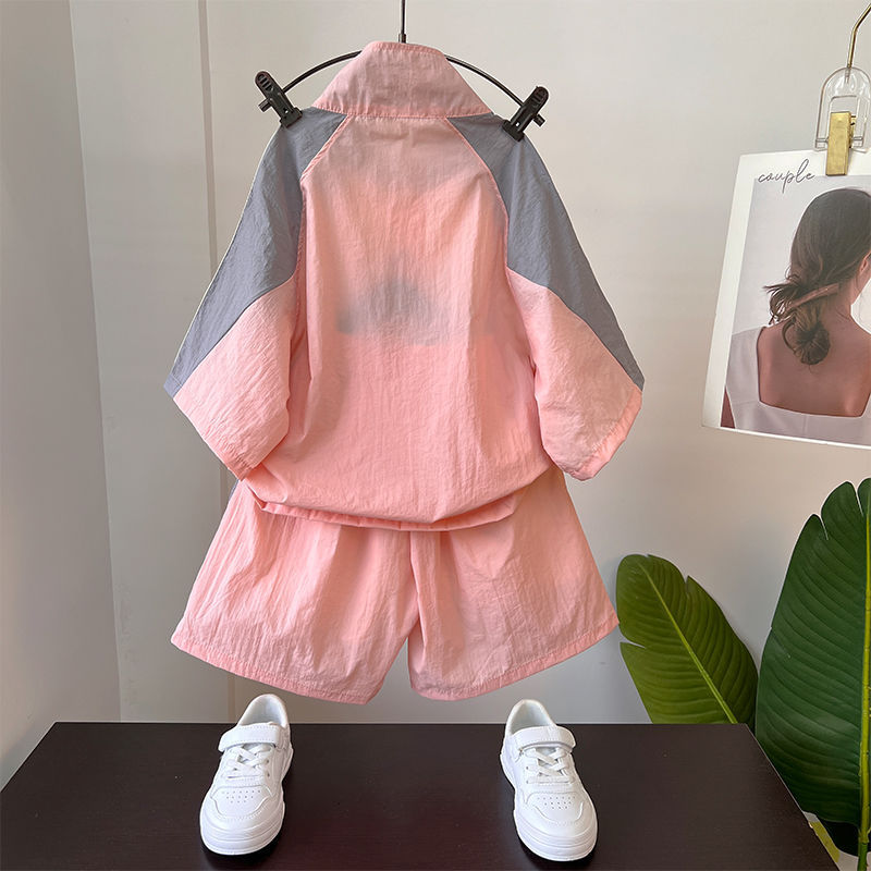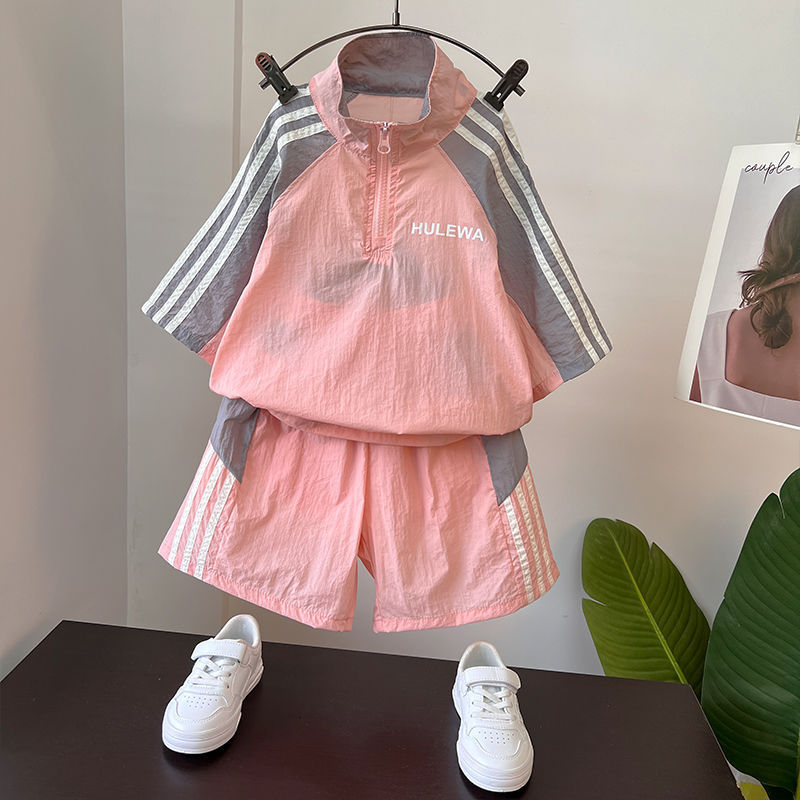 소년과 소녀 자외선 차단 의류 세트 2025 새로운 여름 어린이 의류 속건성 반팔 반바지 자외선 차단 의류스토어 가기