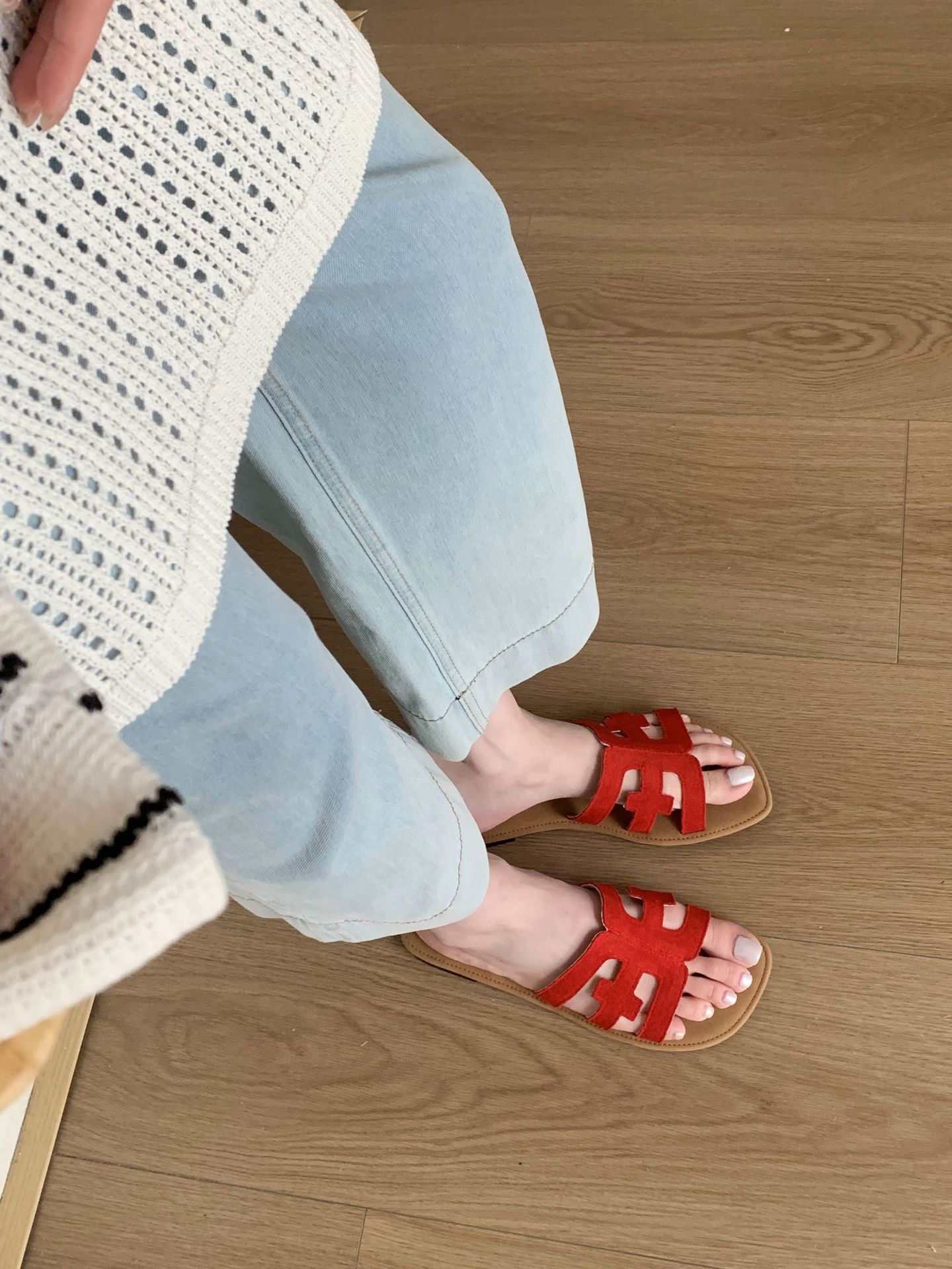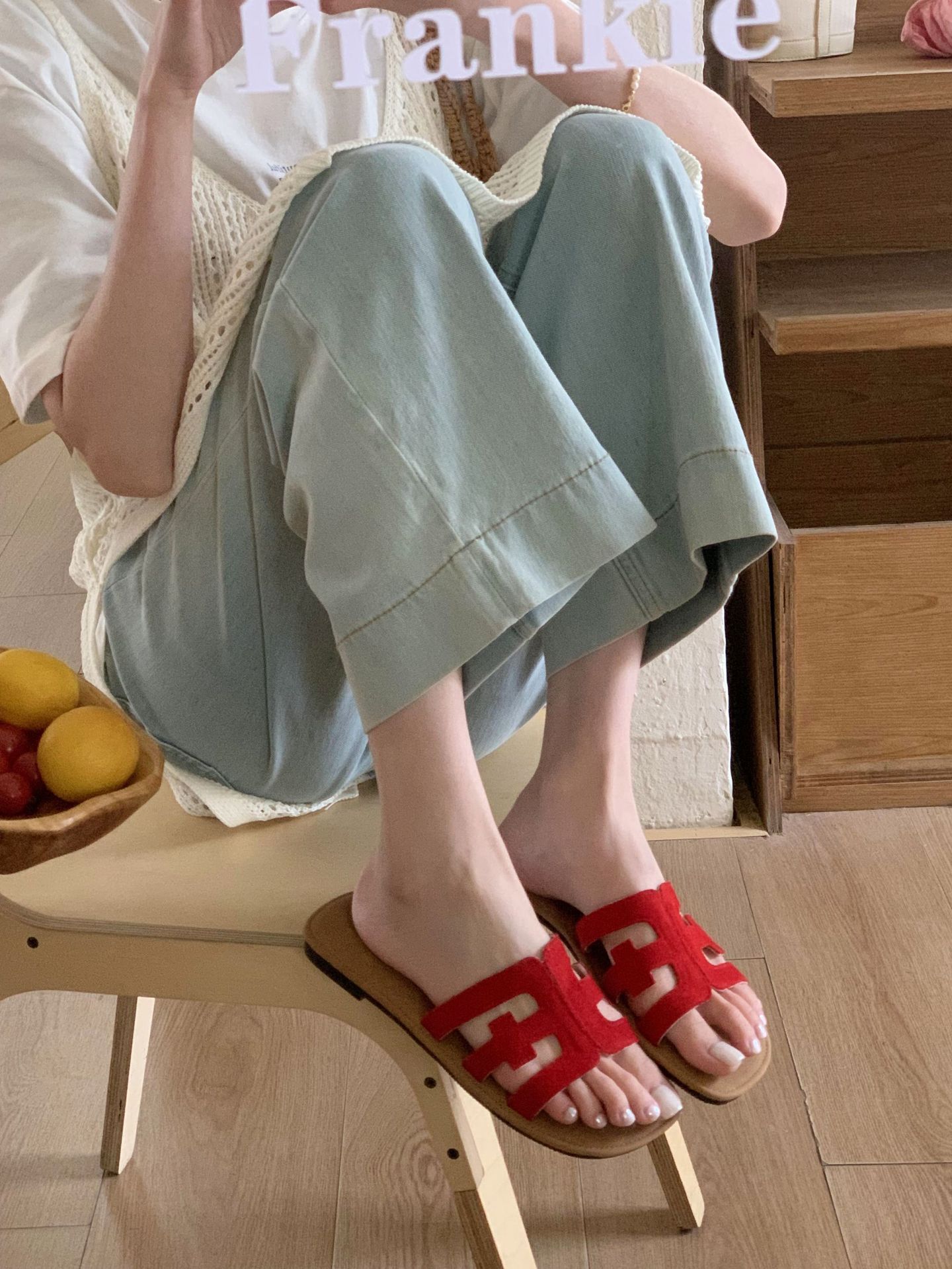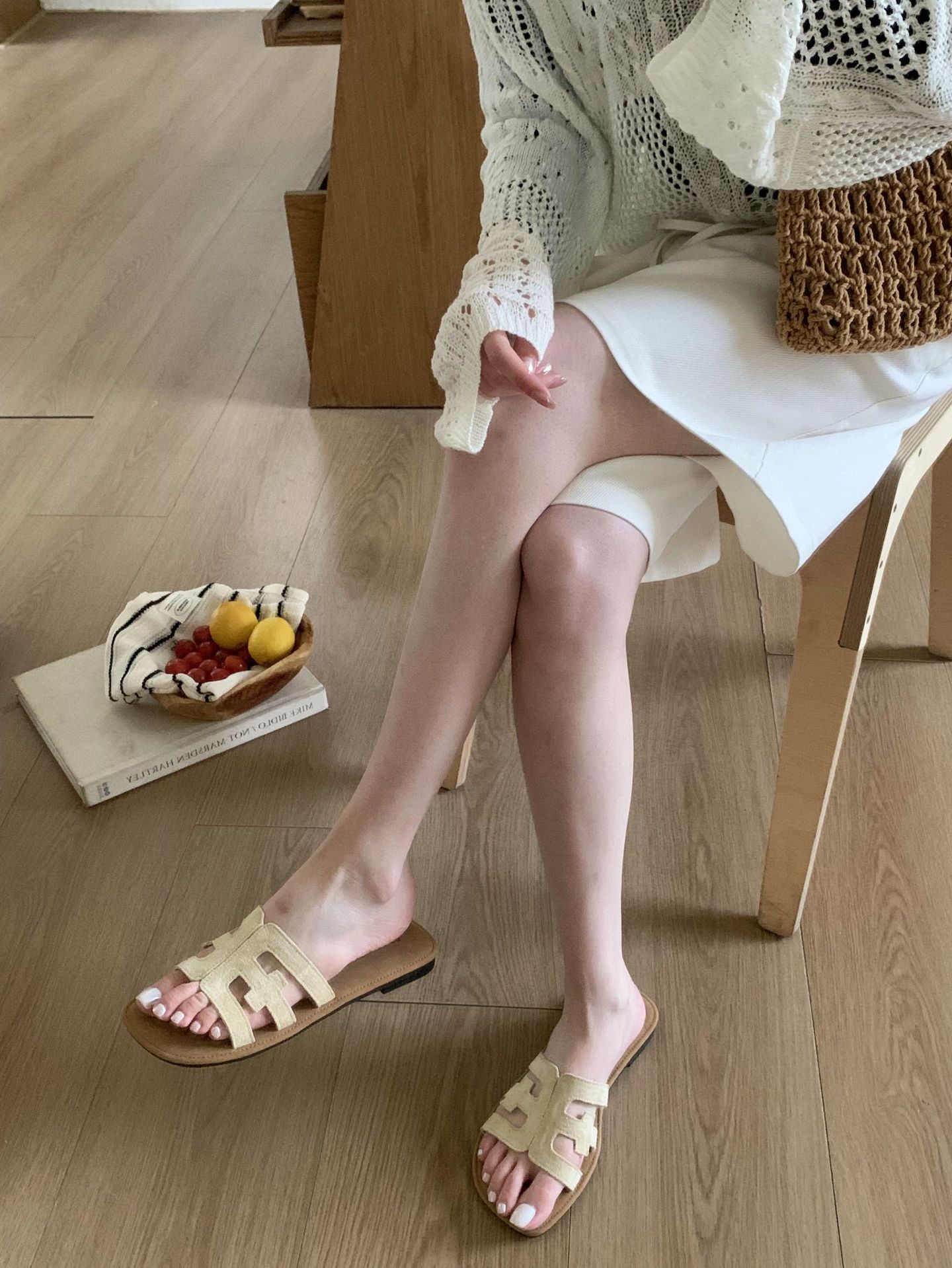 2025년 신상 여름 멀티컬러 스타킹! 클래식 샘 슬리밍 아우터 엠보싱 비치 플랫 슬리퍼 여성용
