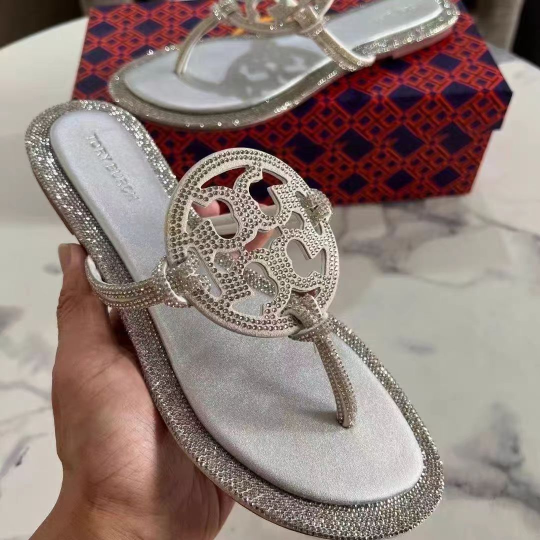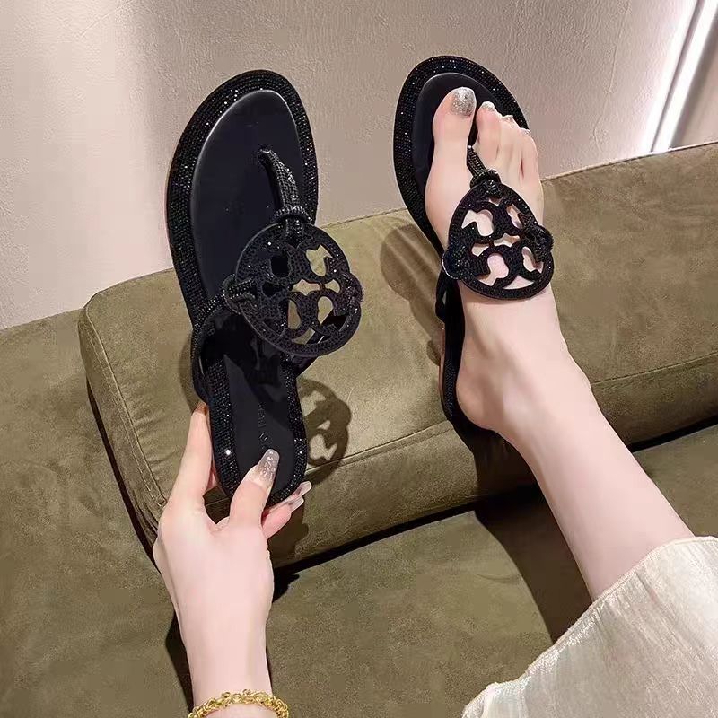 여성용 유럽과 미국의 패셔너블한 다이아몬드가 박힌 플랫 슬리퍼, 여름용 아우터웨어용 플립플롭, 다용도 요정 스타일 플립플롭, 비치 슬리퍼
