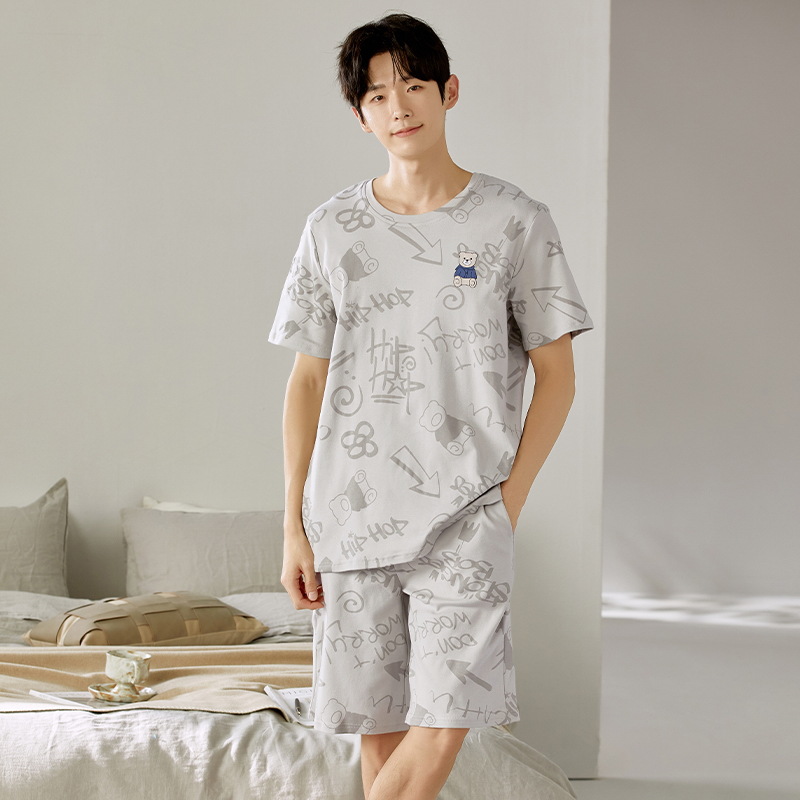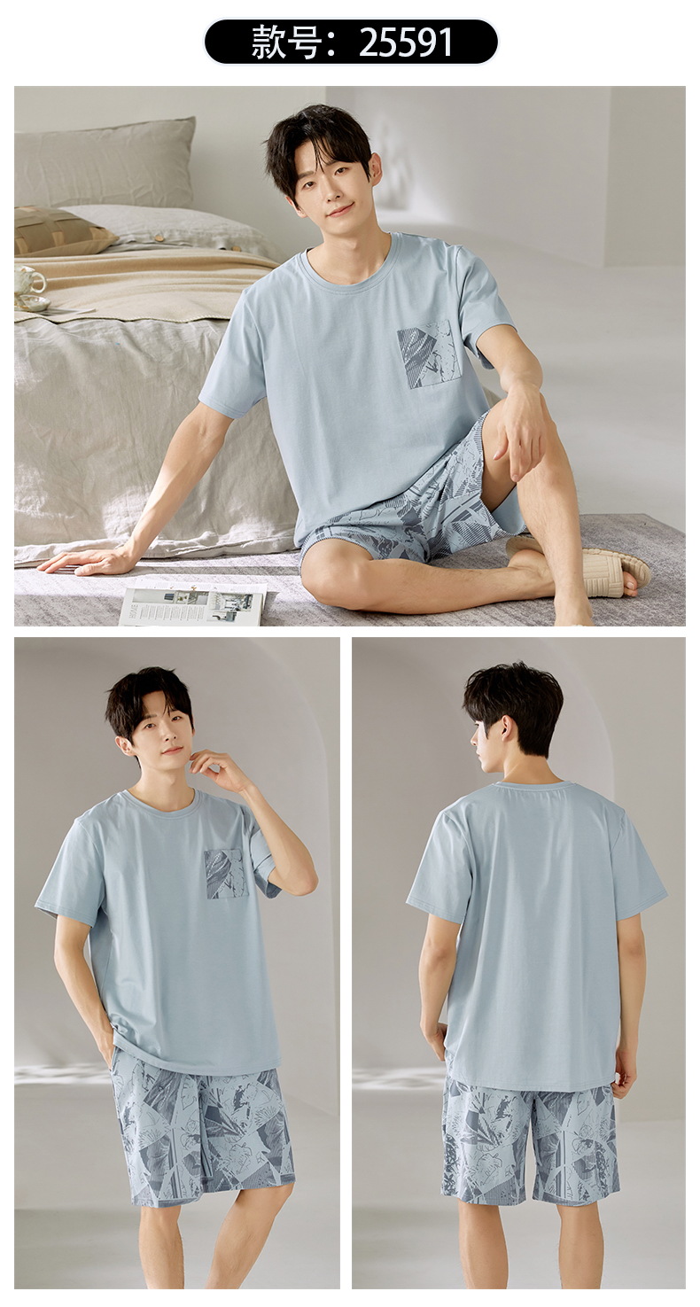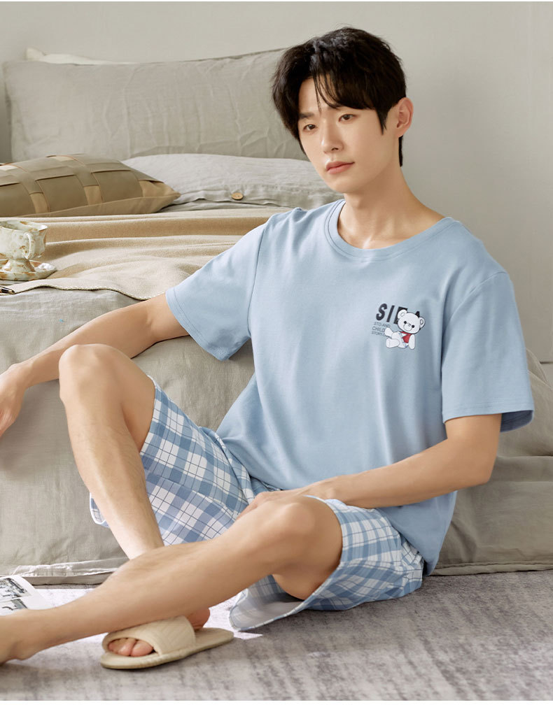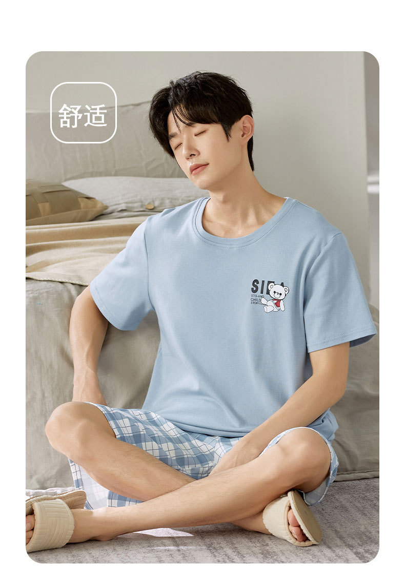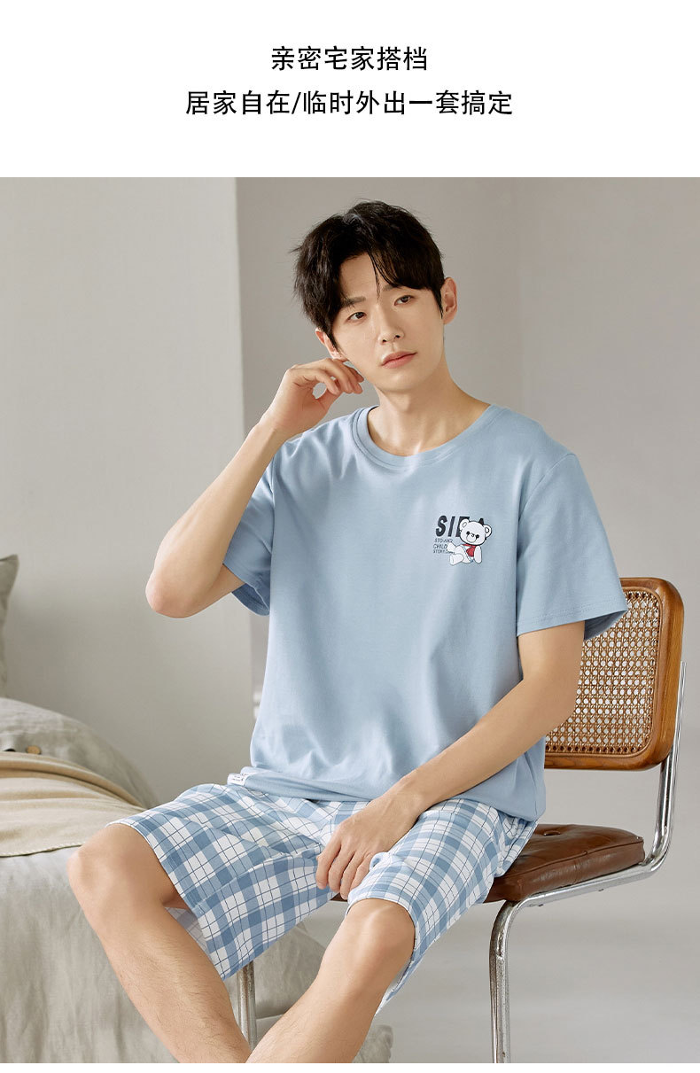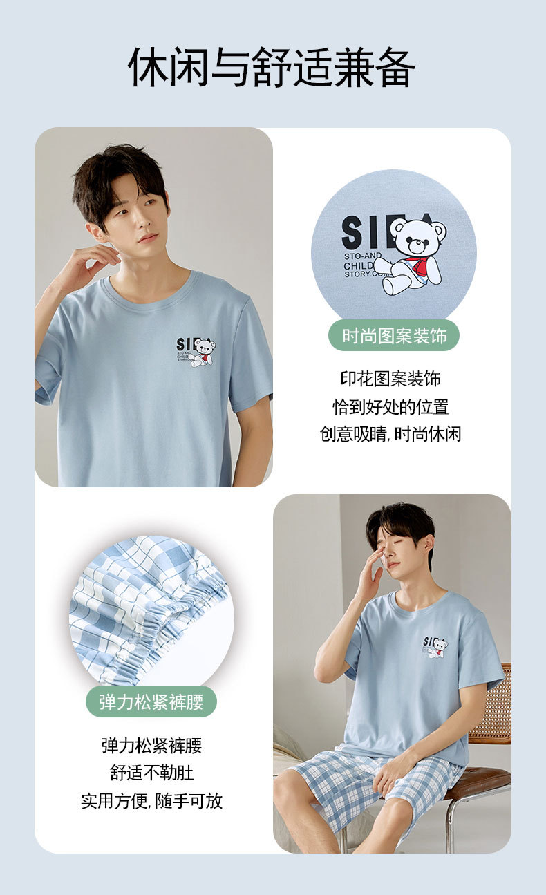 여름 남성 홈웨어 반팔 반바지 파자마 세트 얇고 시원하며 통기성이 뛰어나고 집에서 편안하며 착용 가능