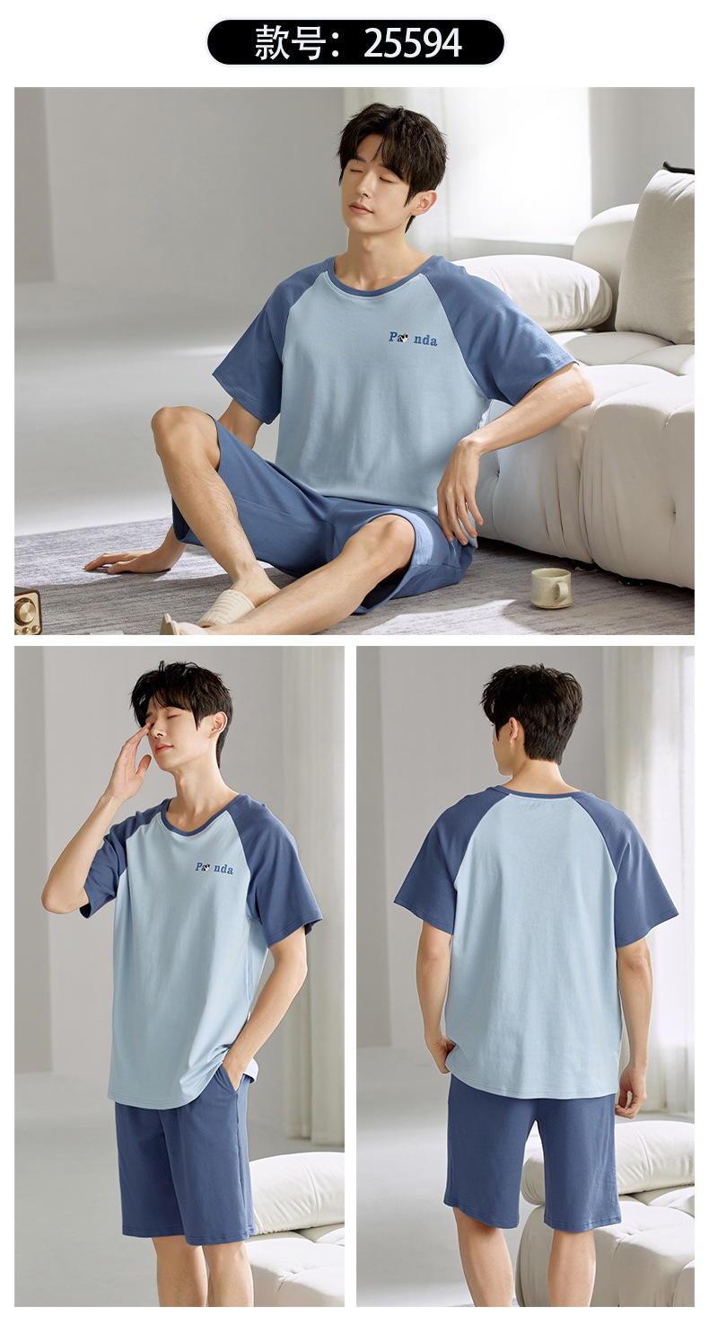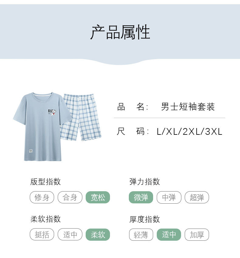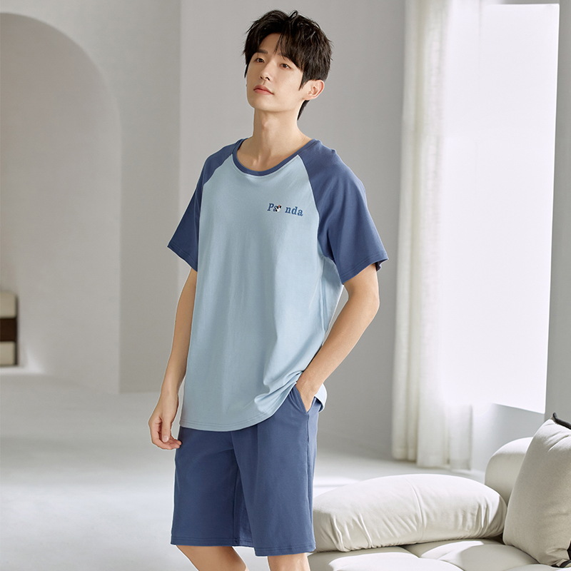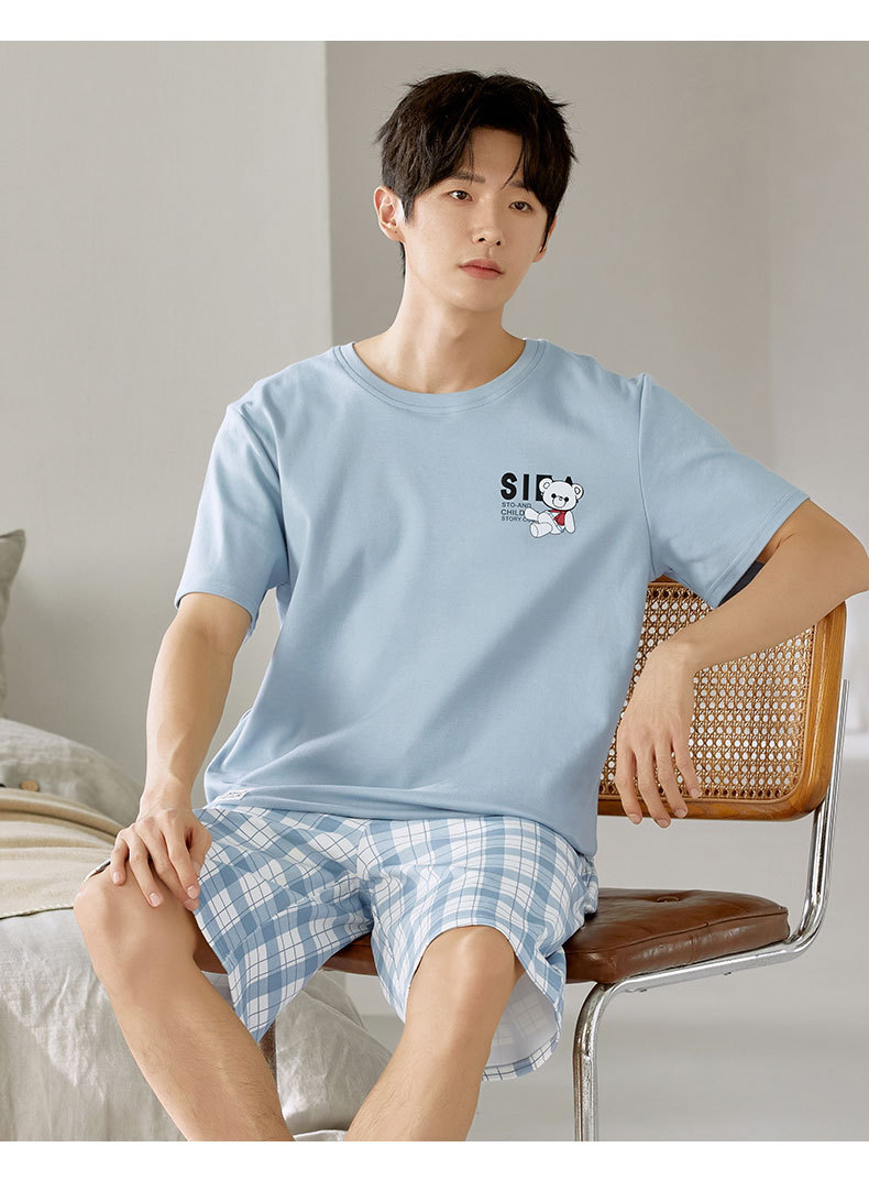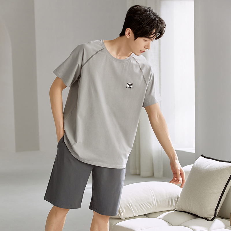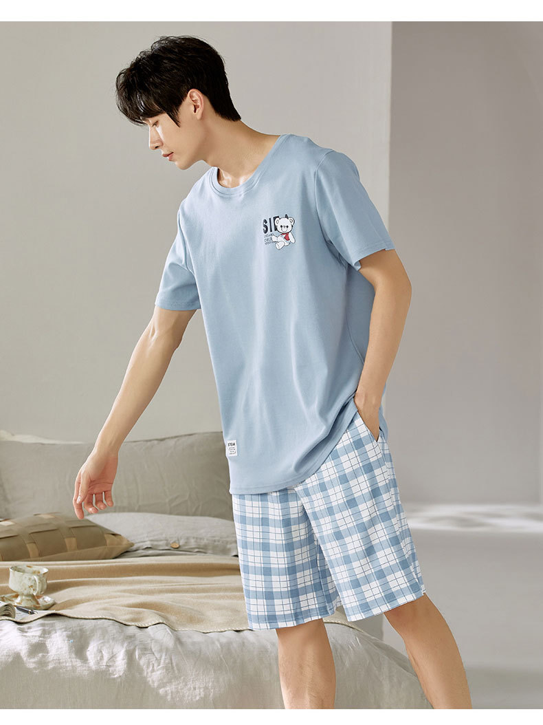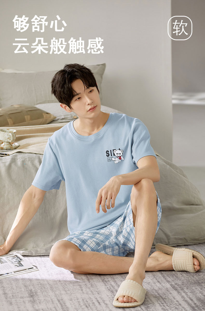 여름 남성 홈웨어 반팔 반바지 파자마 세트 얇고 시원하며 통기성이 뛰어나고 집에서 편안하며 착용 가능