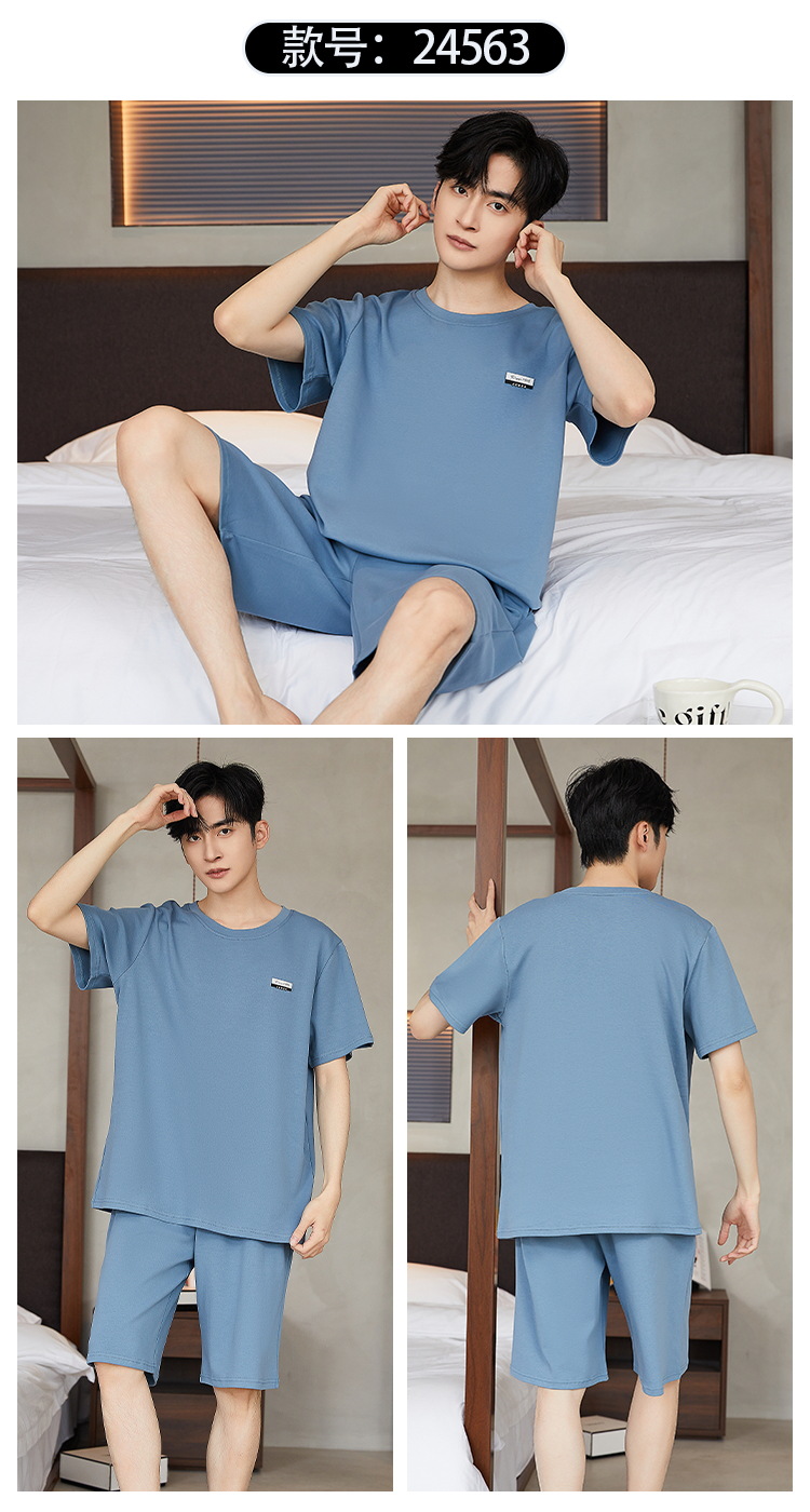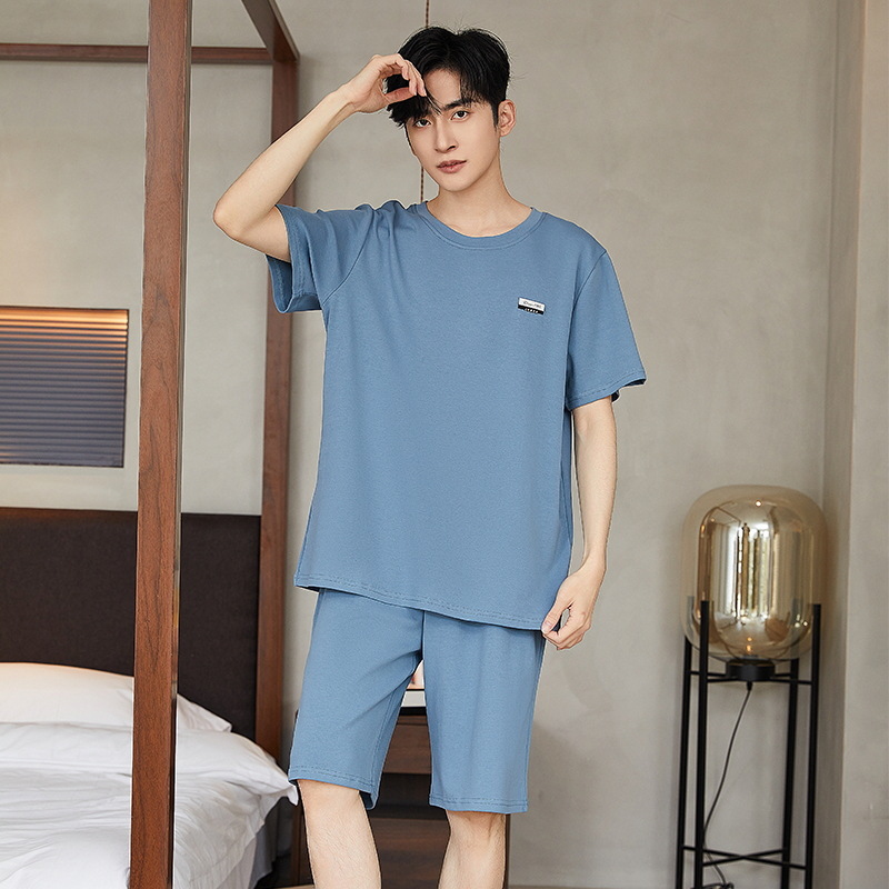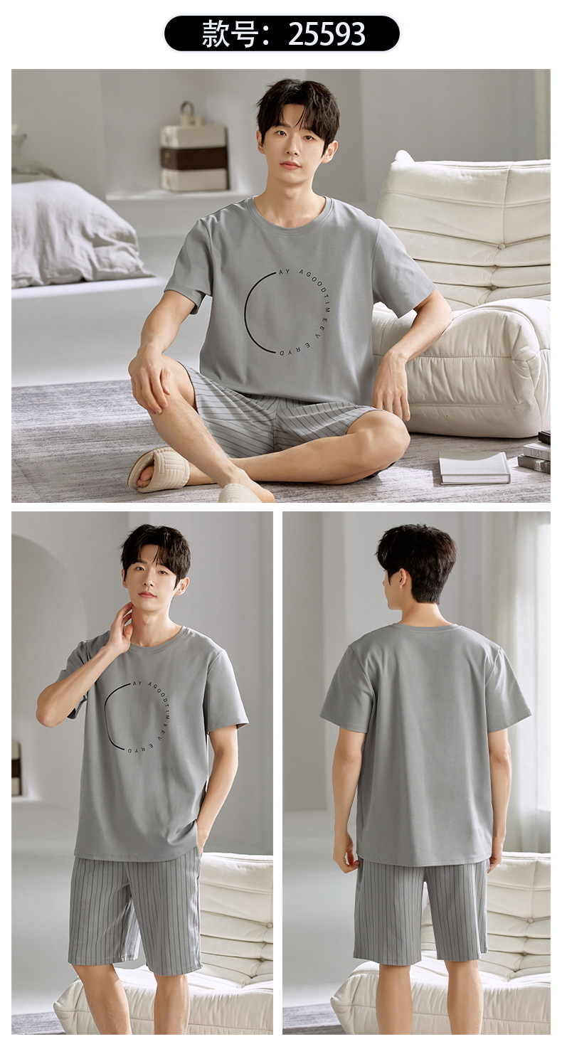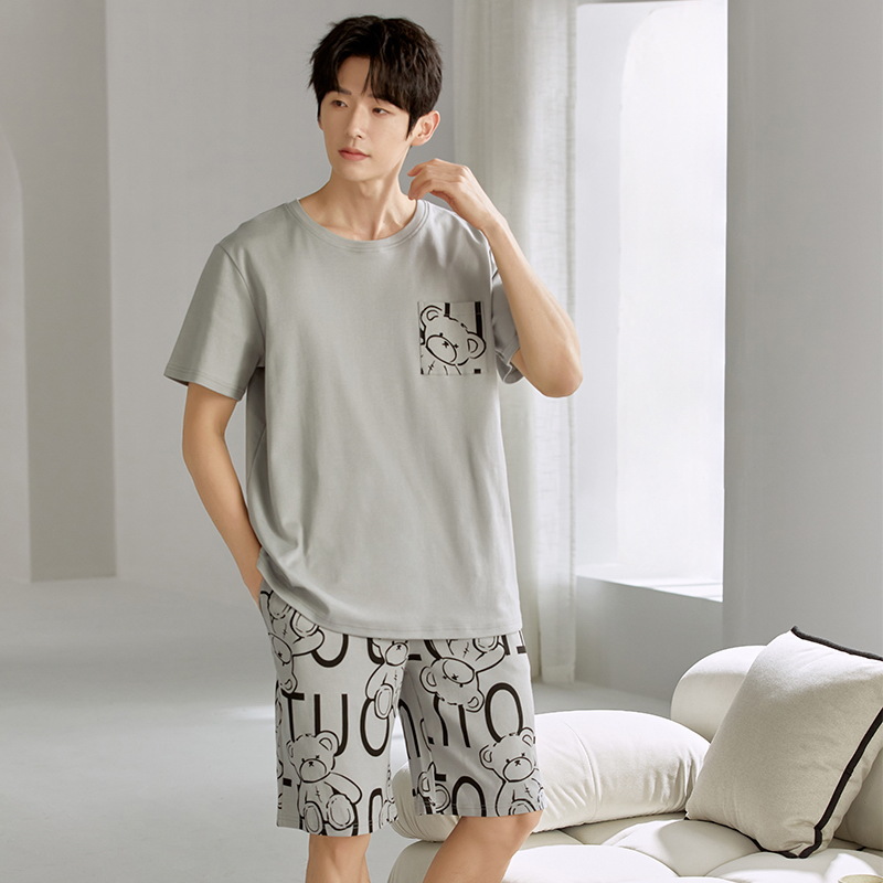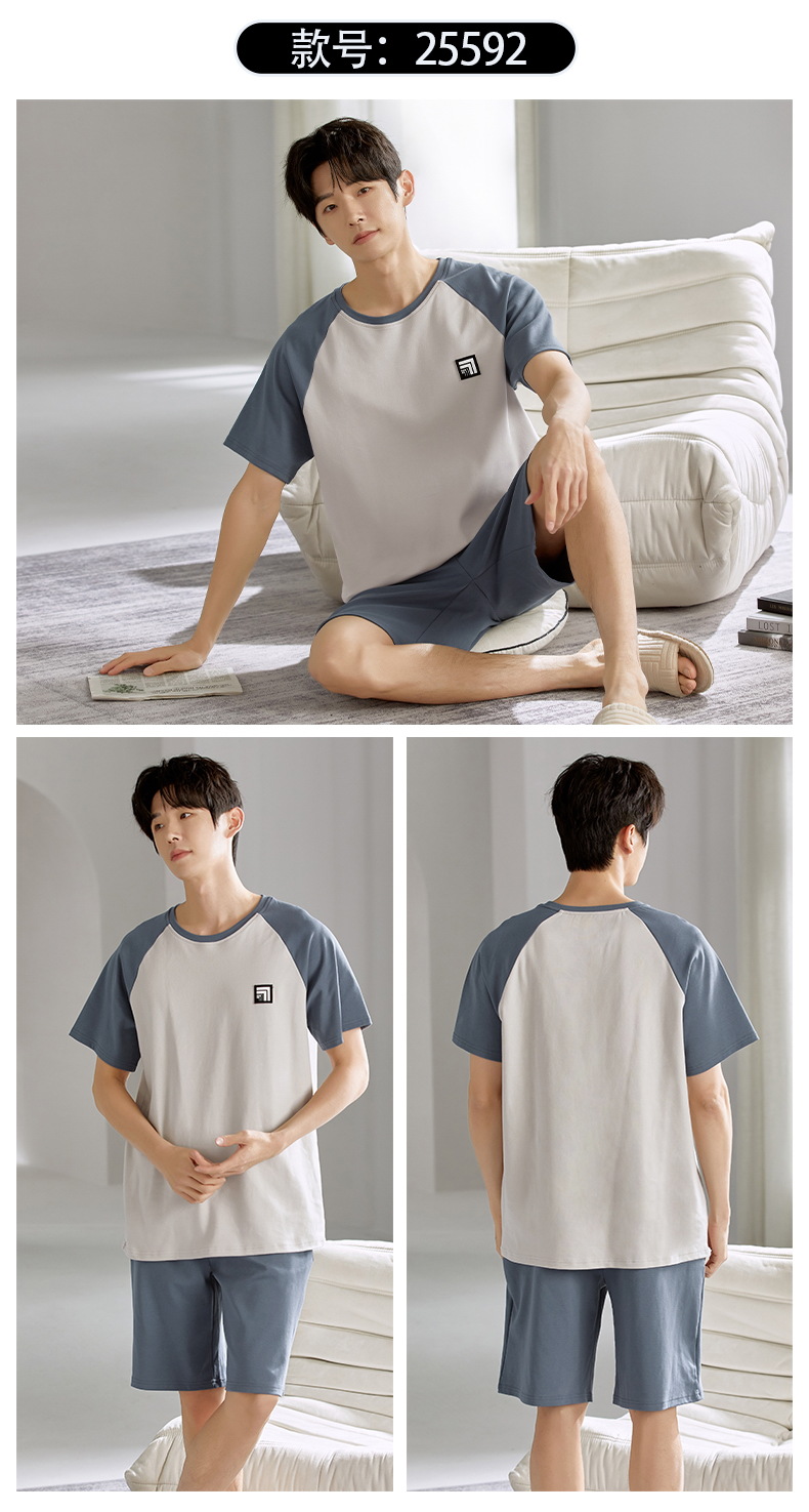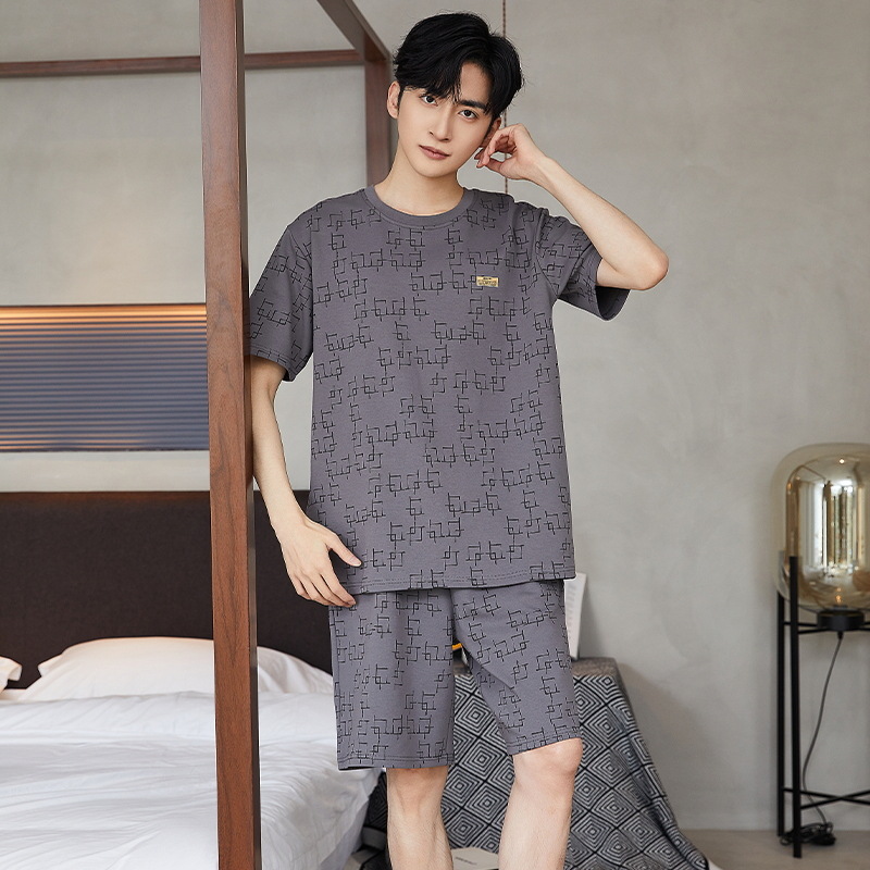여름 남성 홈웨어 반팔 반바지 파자마 세트 얇고 시원하며 통기성이 뛰어나고 집에서 편안하며 착용 가능