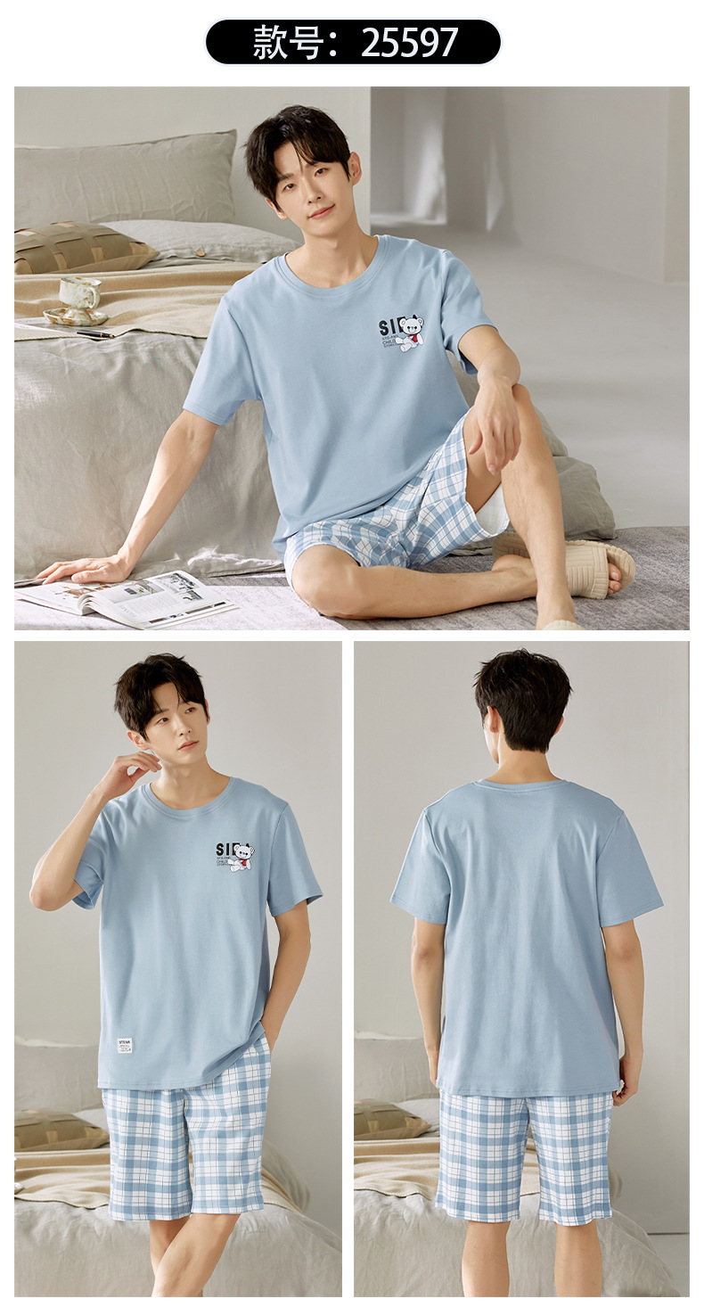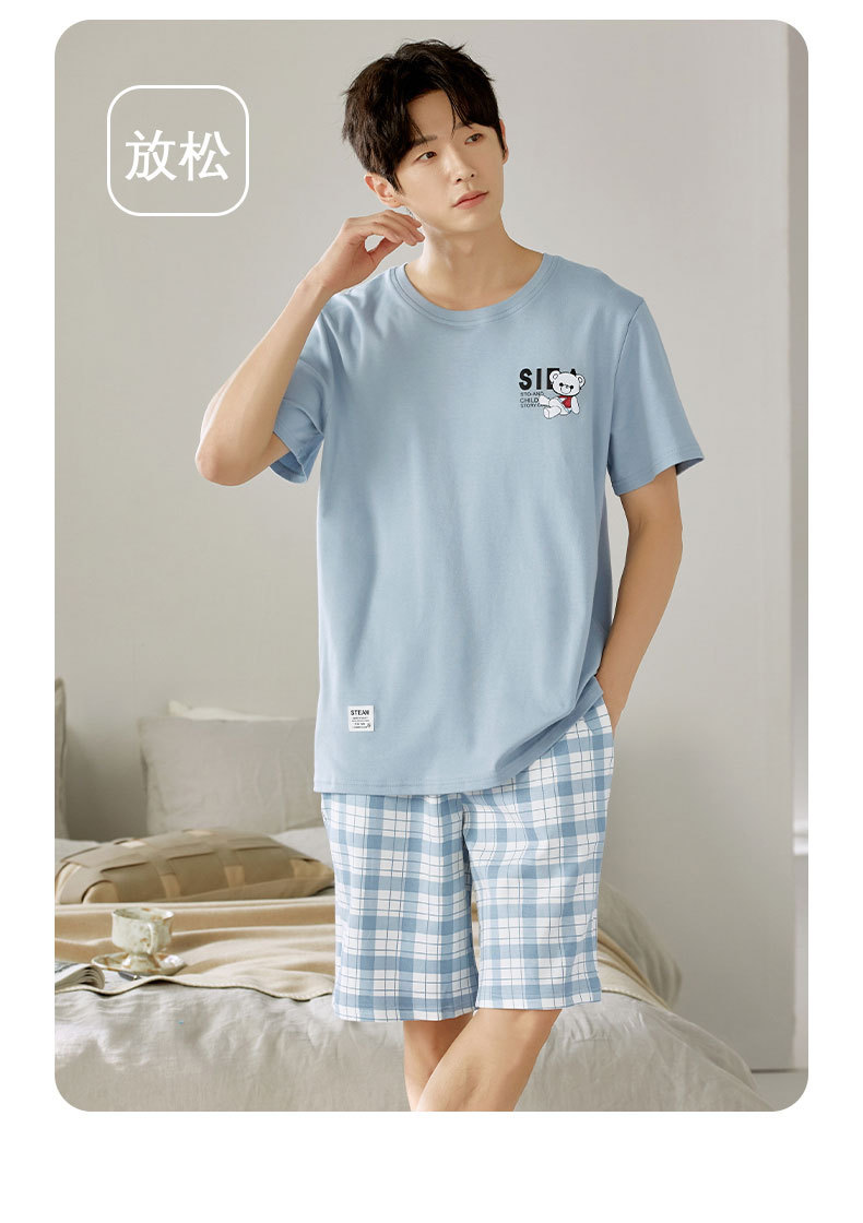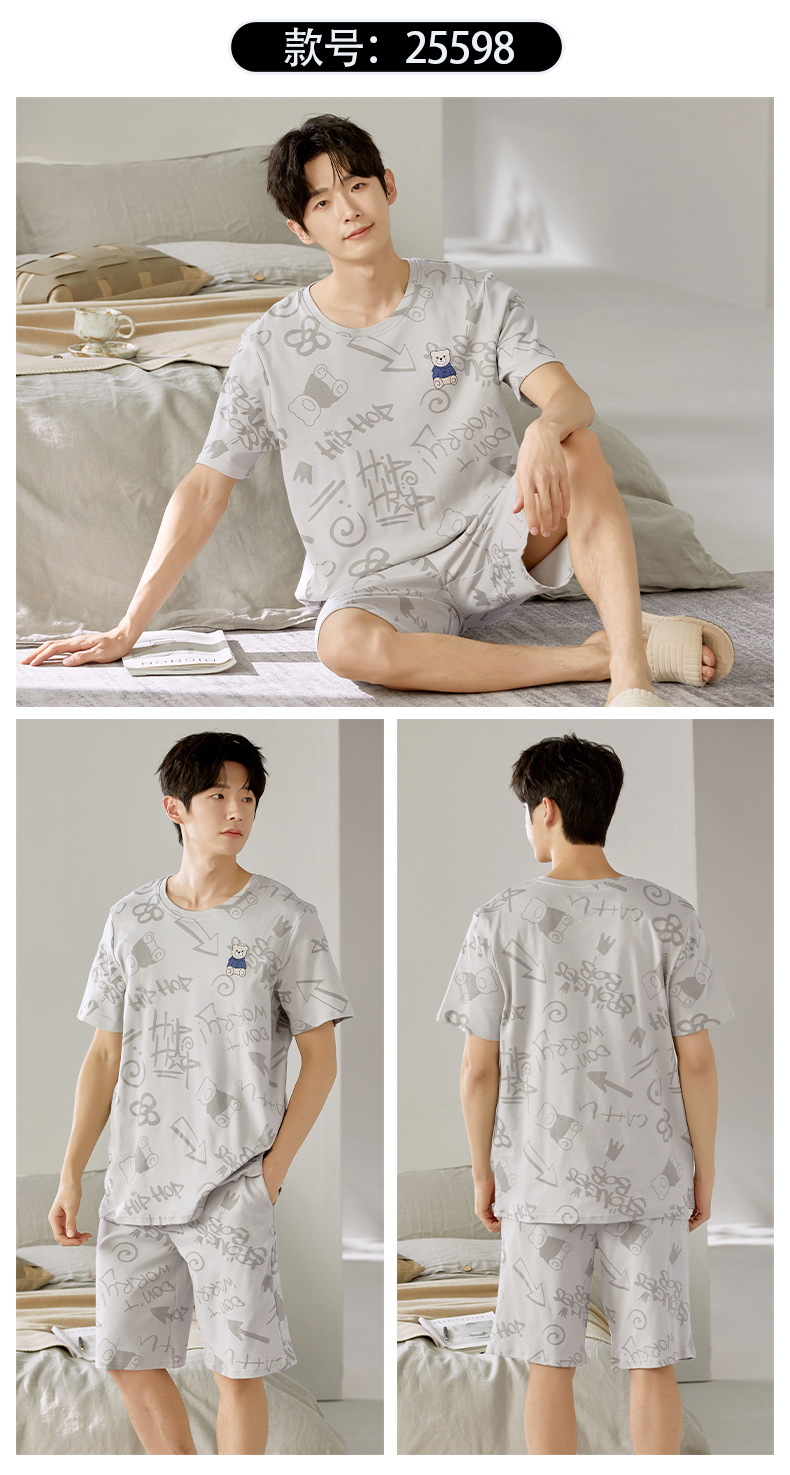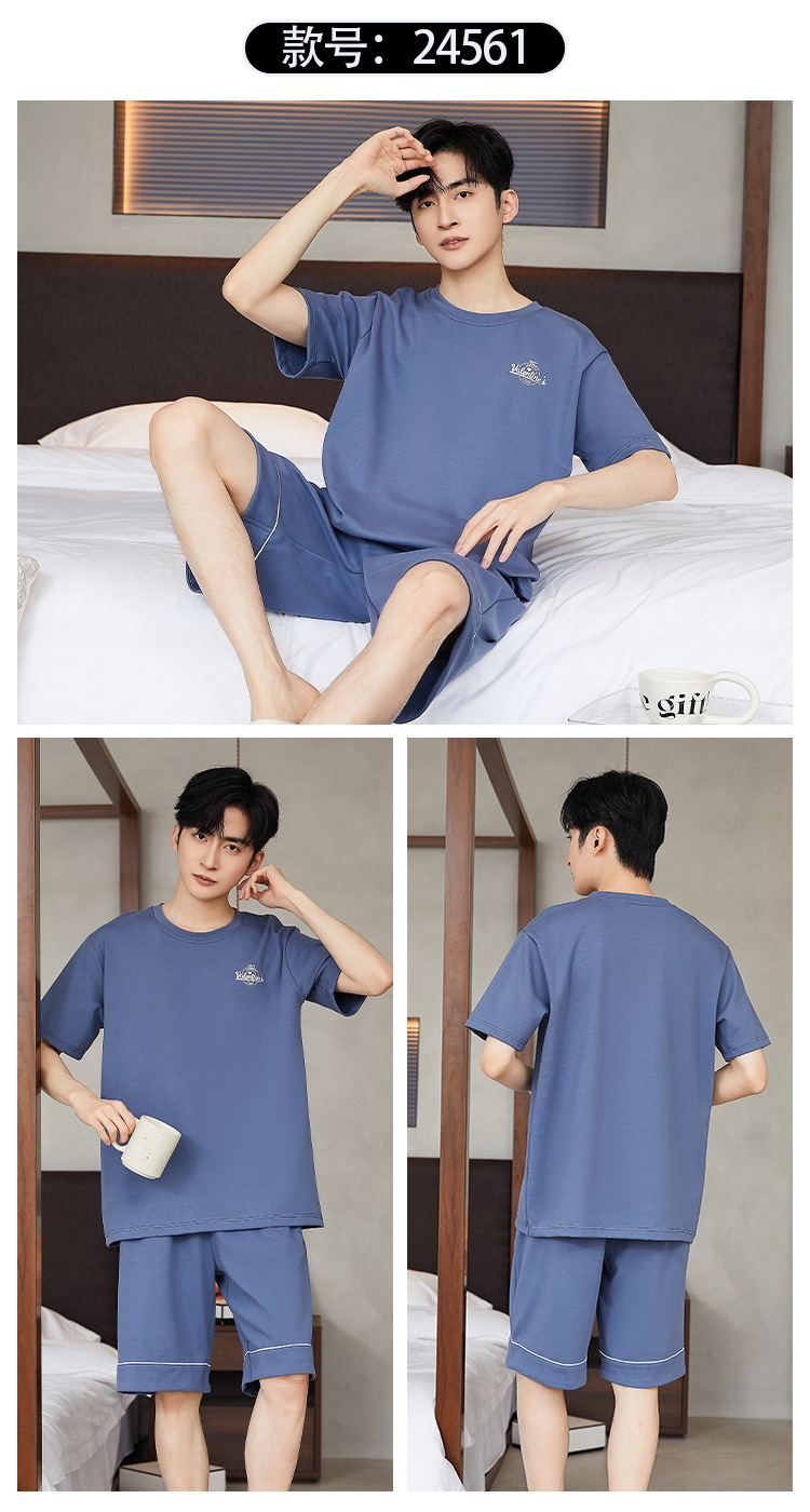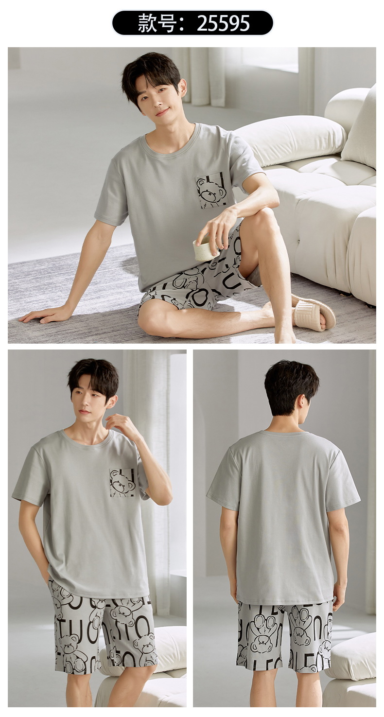 여름 남성 홈웨어 반팔 반바지 파자마 세트 얇고 시원하며 통기성이 뛰어나고 집에서 편안하며 착용 가능