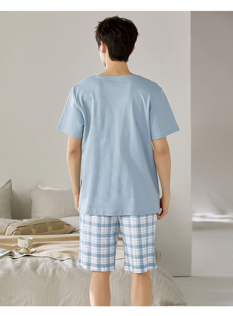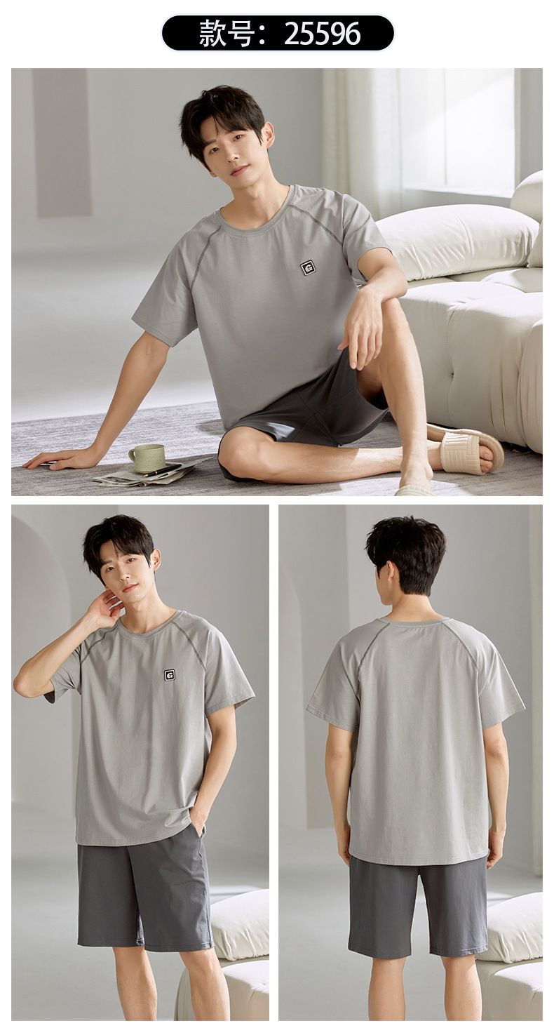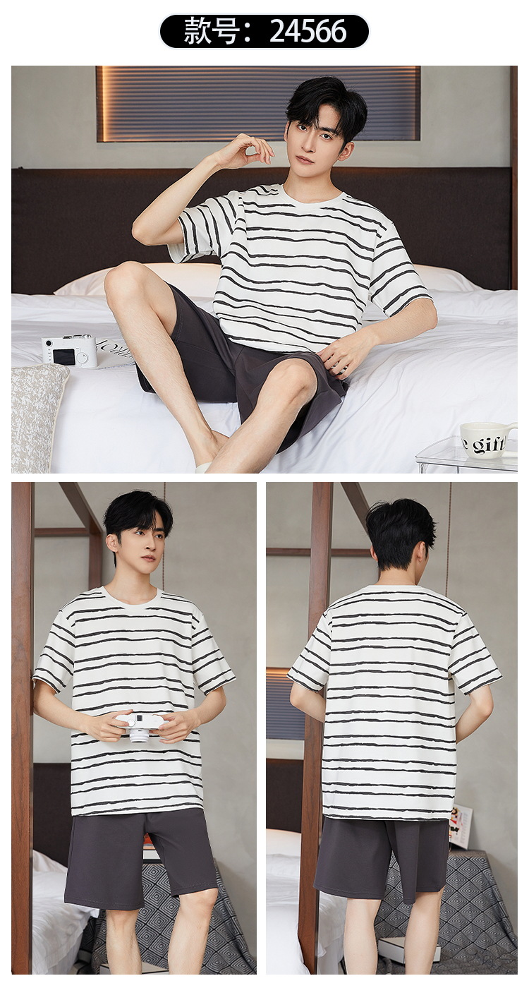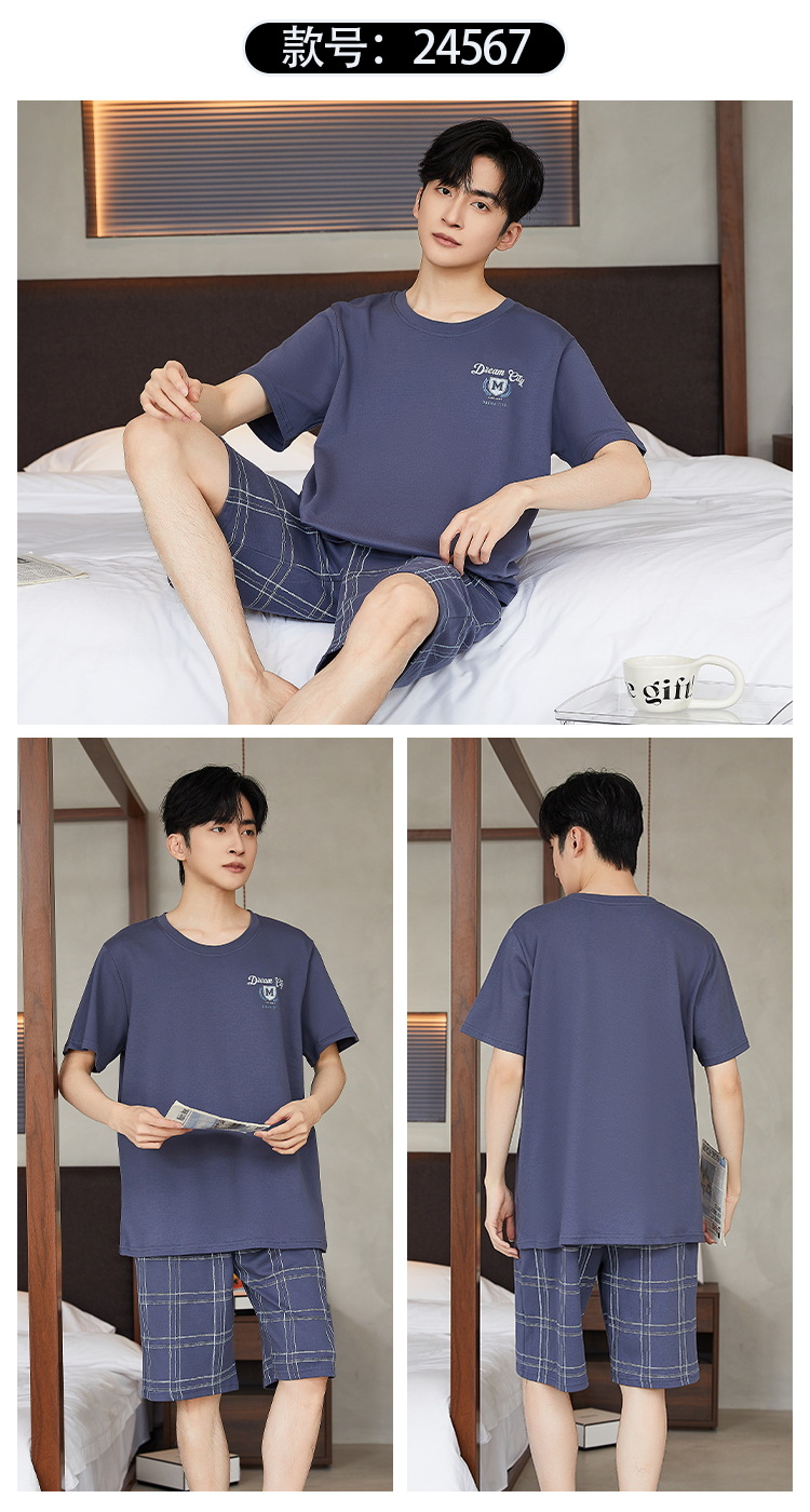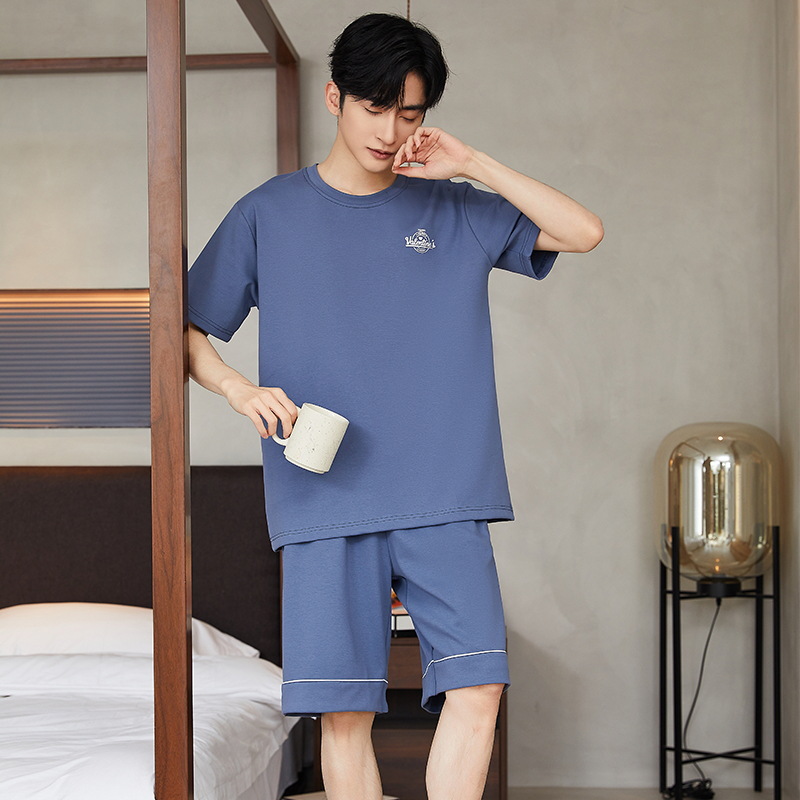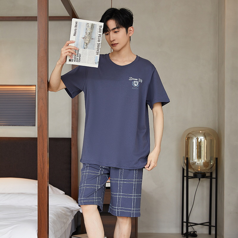 여름 남성 홈웨어 반팔 반바지 파자마 세트 얇고 시원하며 통기성이 뛰어나고 집에서 편안하며 착용 가능