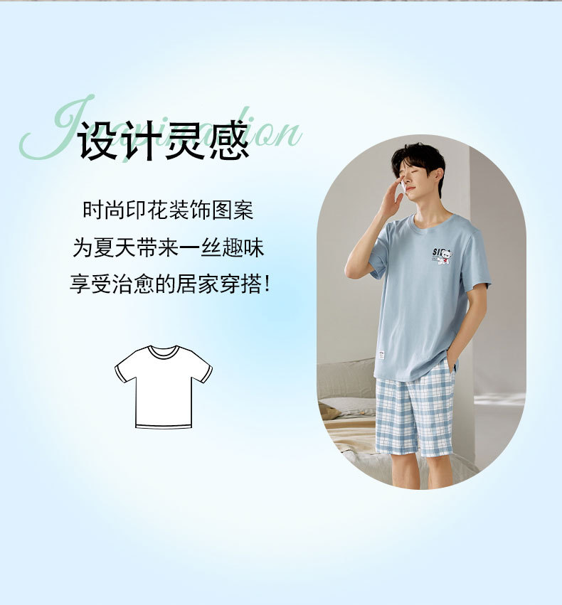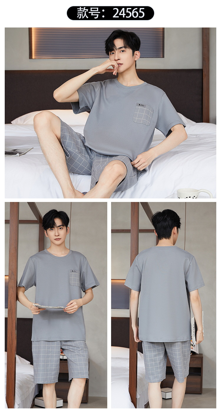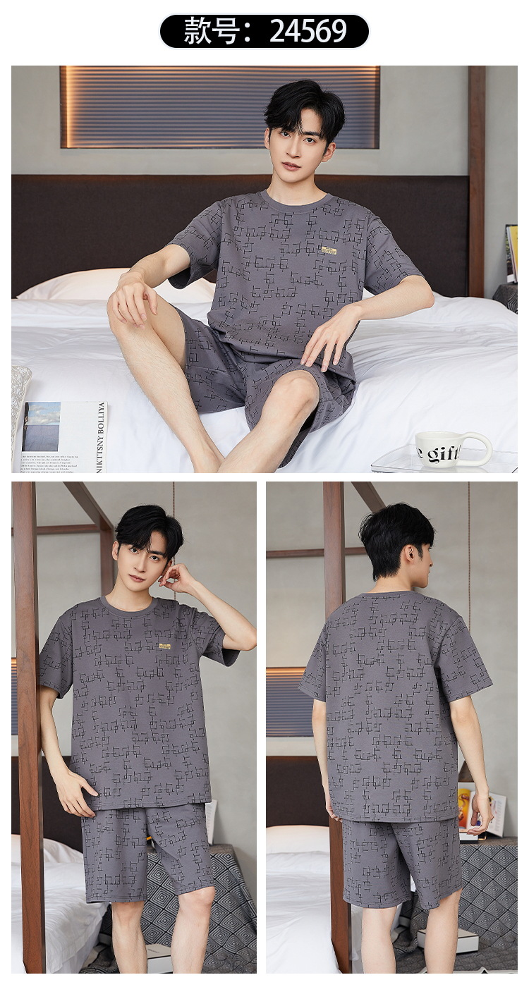 여름 남성 홈웨어 반팔 반바지 파자마 세트 얇고 시원하며 통기성이 뛰어나고 집에서 편안하며 착용 가능스토어 가기