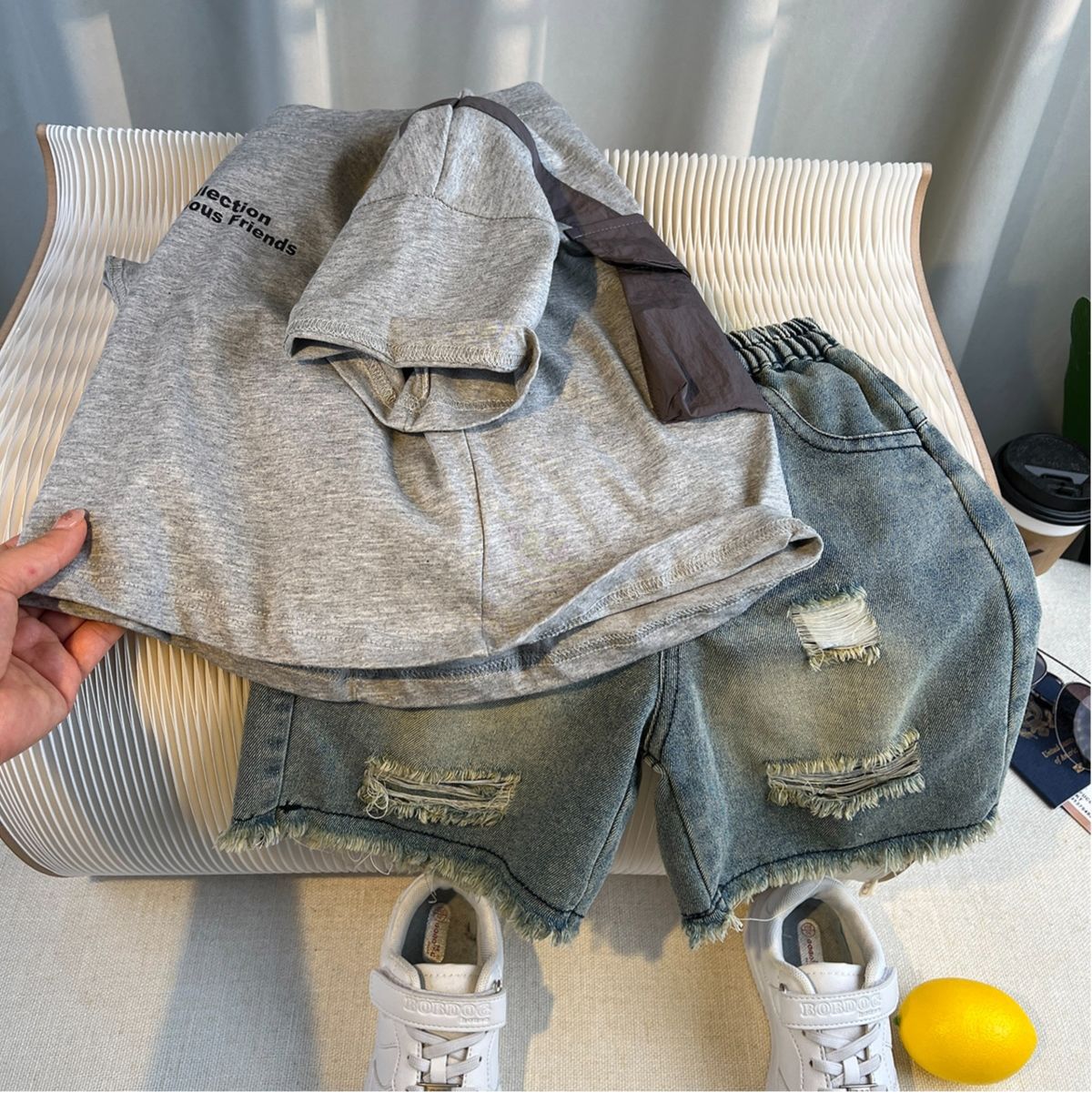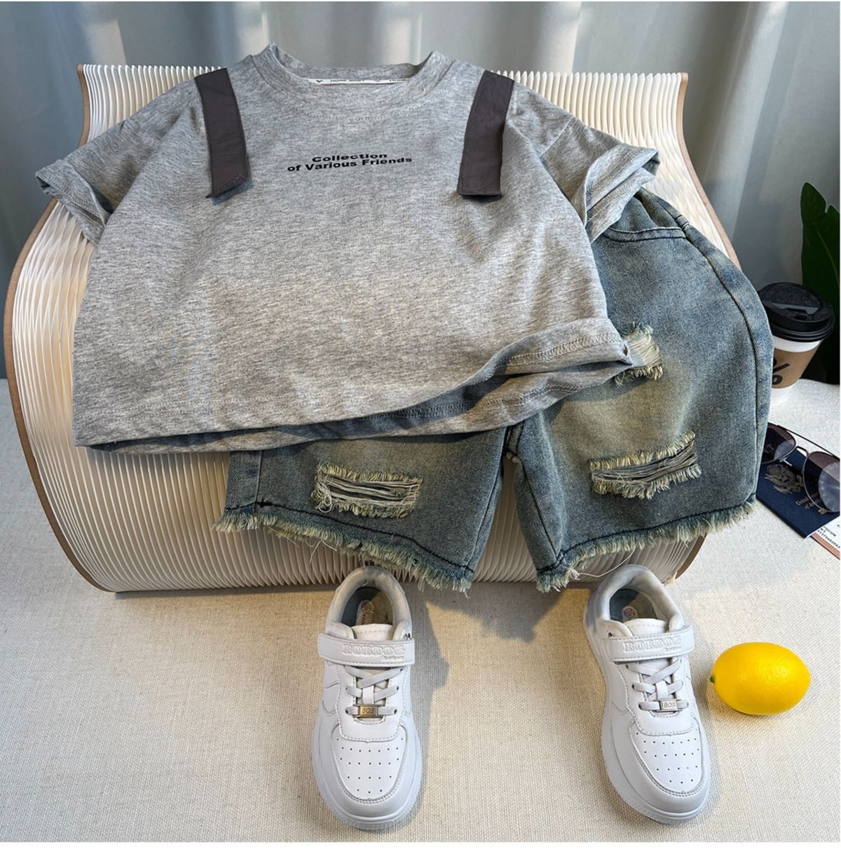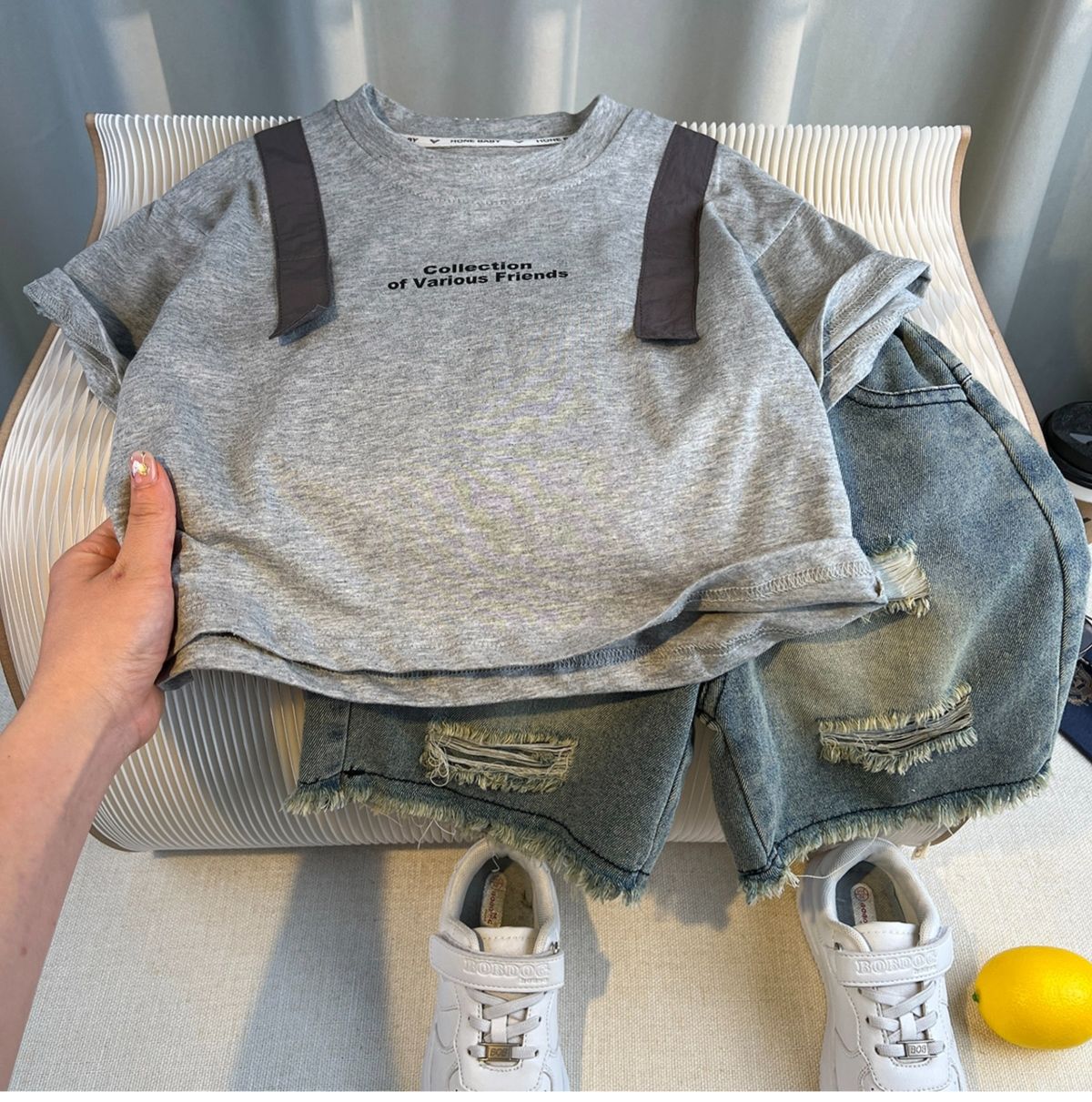 아동 여름 옷, 남아용 멋진 반팔 양복, 2025 새로운 스타일, 패셔너블한 아기 여름 유행과 시원한 한국 스타일 얇은 옷스토어 가기