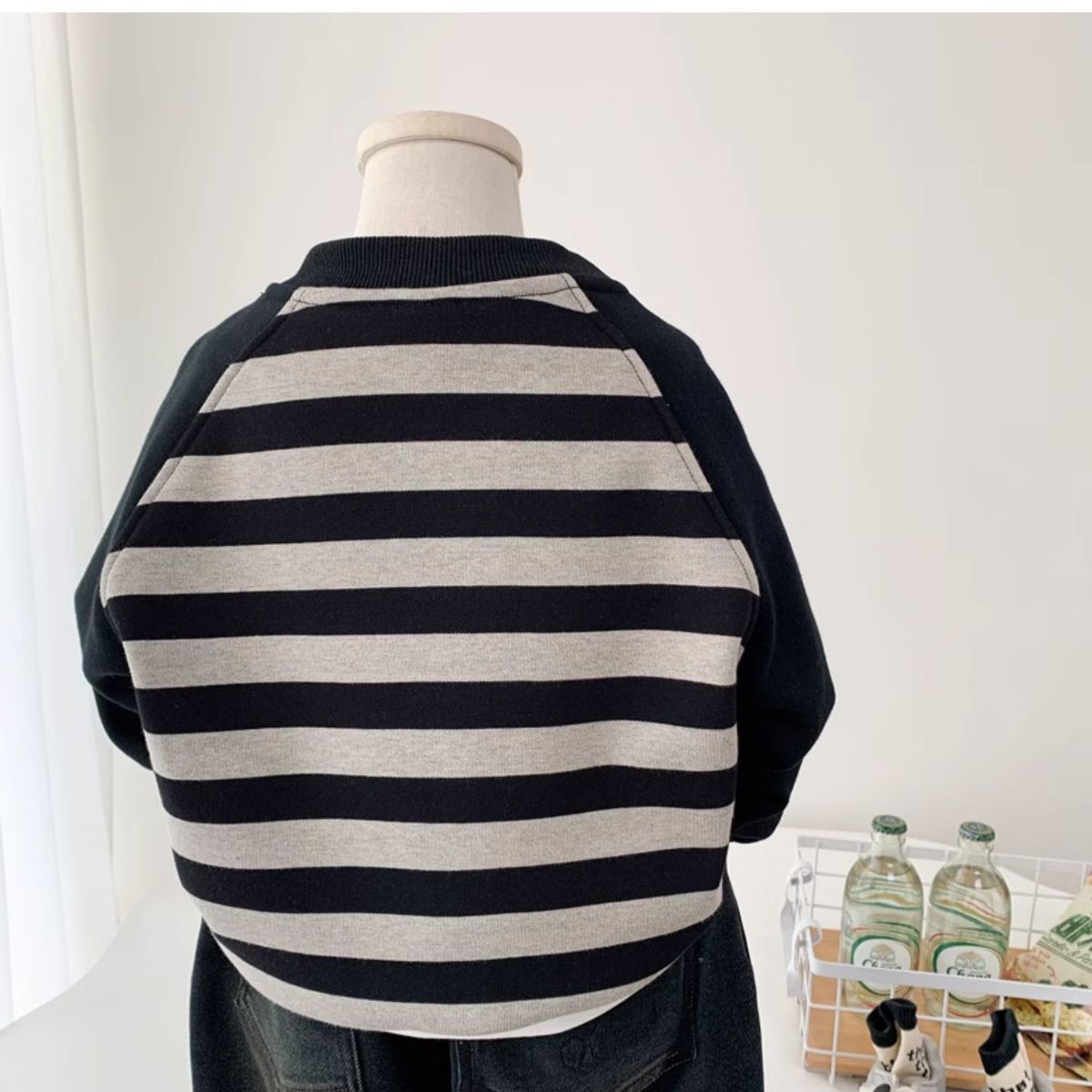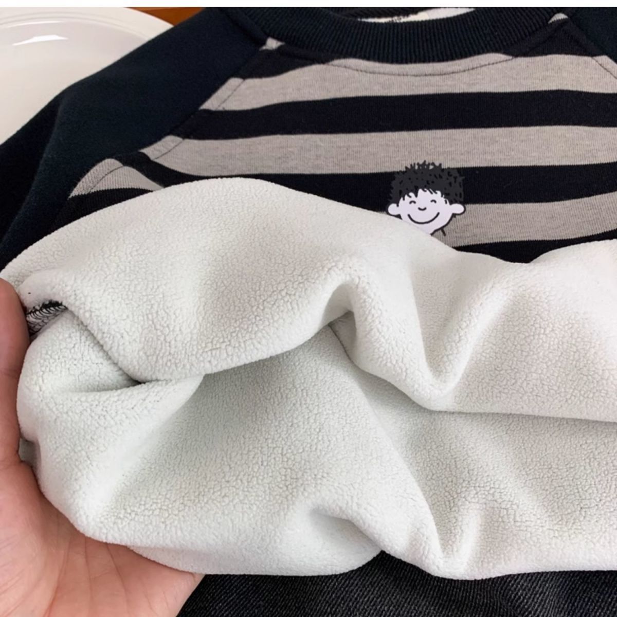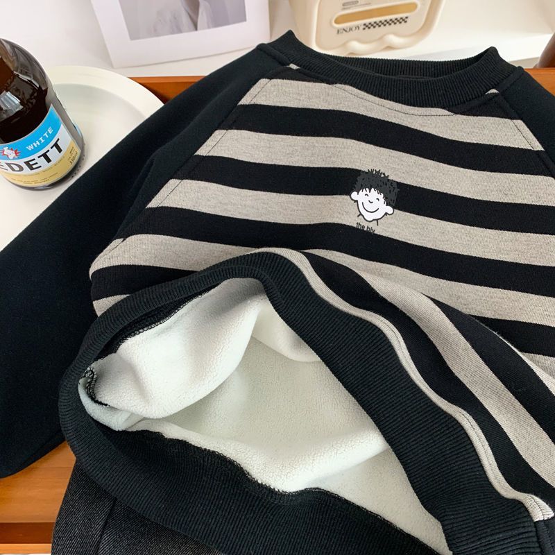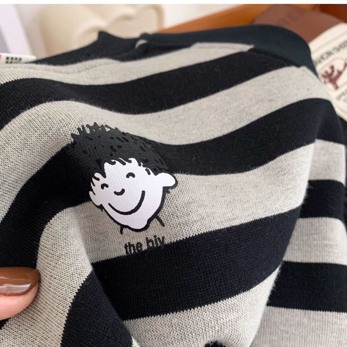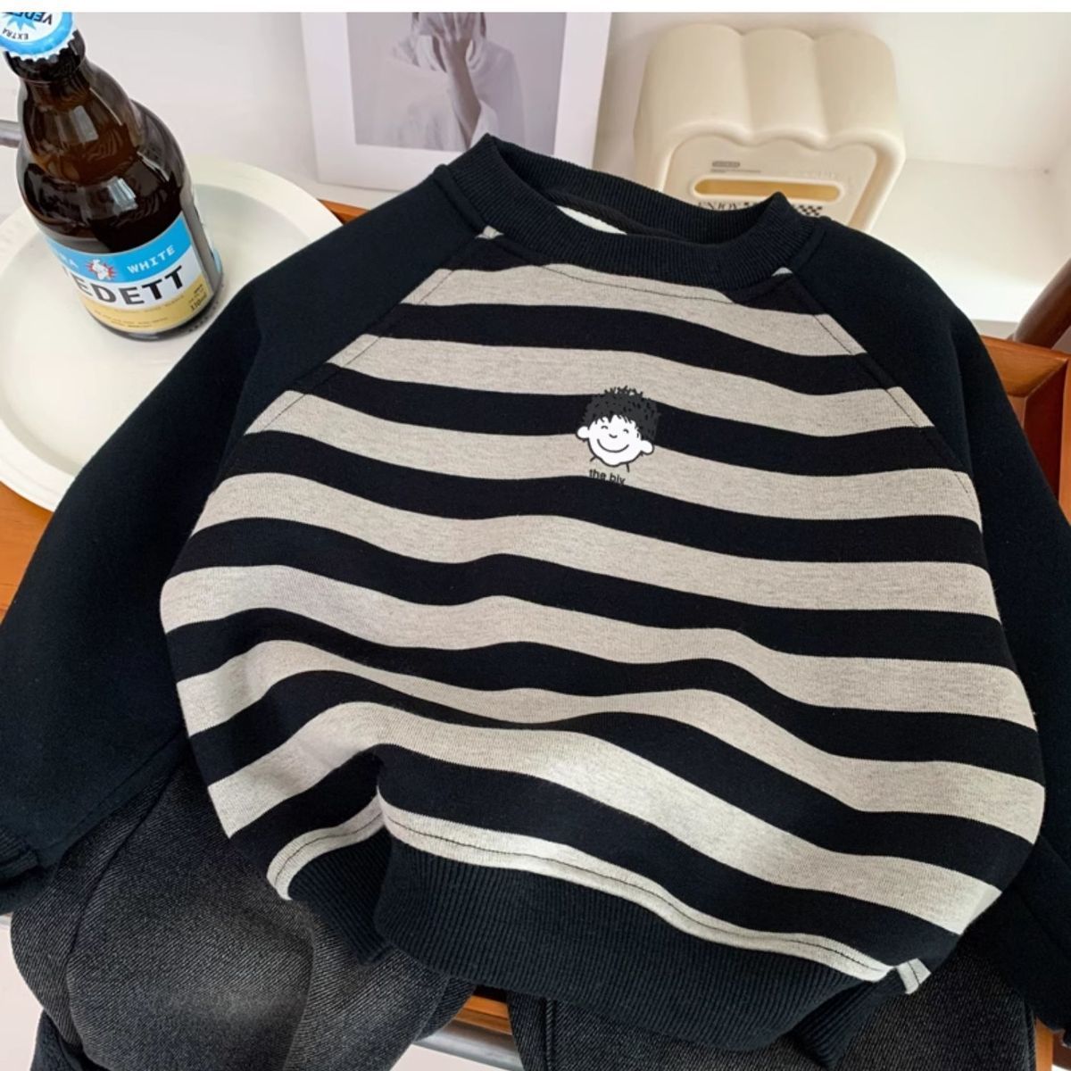 남아용 스트라이프 벨벳 스웨트셔츠, 멋진 남아용 원피스 벨벳 소프트 풀오버, 아동용 한국식 가을 겨울 상의, 트렌디스토어 가기