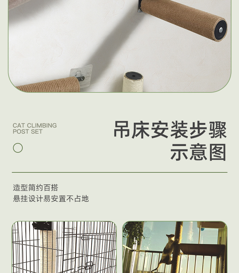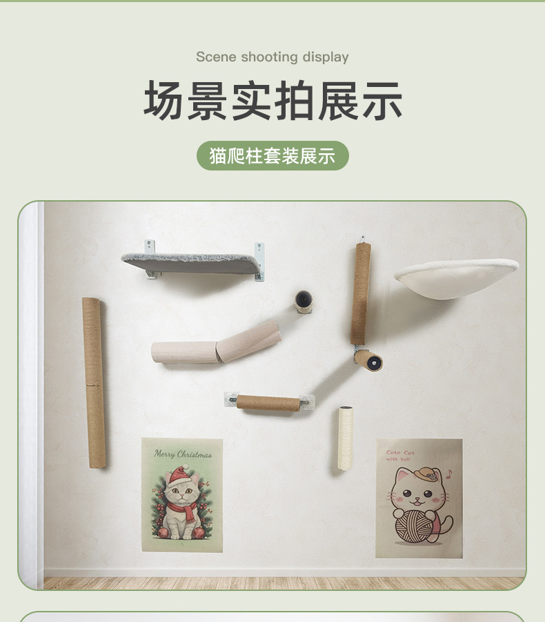 벽 매달려 단단한 나무 고양이 스크래치 칼럼 고양이 장난감 내마모성 사이 살 기둥 고양이 등반 프레임 고양이 해먹 통합 고양이 벽 세트스토어 가기