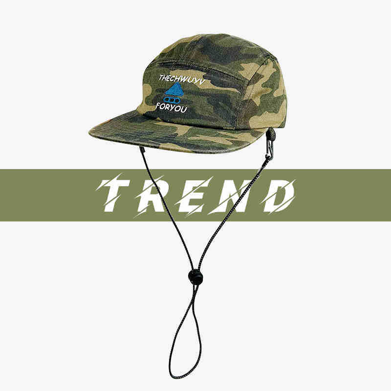 미국 스타일 기능성 위장 야구 모자 여성의 트렌디 한 브랜드 그린 그린 힙합 플랫 브림 5 피스 모자 남성용