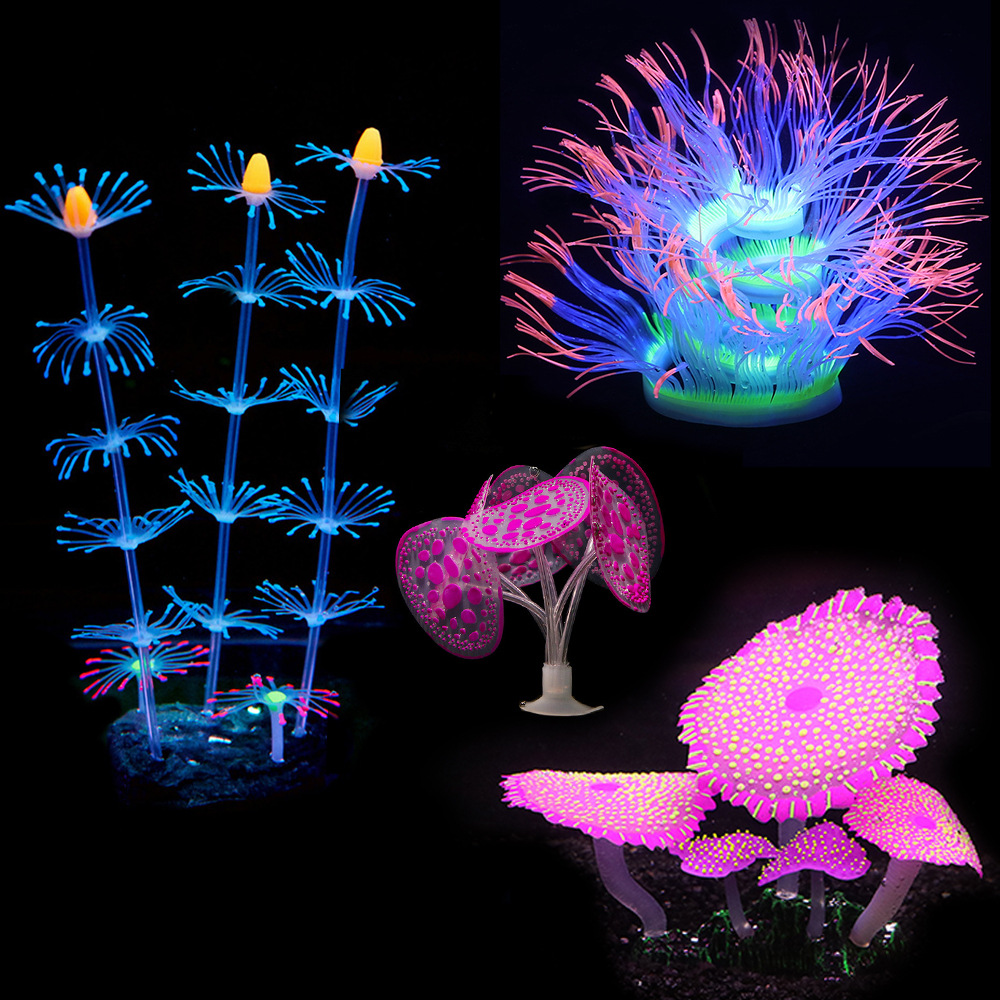 물고기 탱크 시뮬레이션 수생 잔디 부드러운 실리콘 형광 산호 수족관 풍경 장식 수생 잔디 식물 패키지스토어 가기