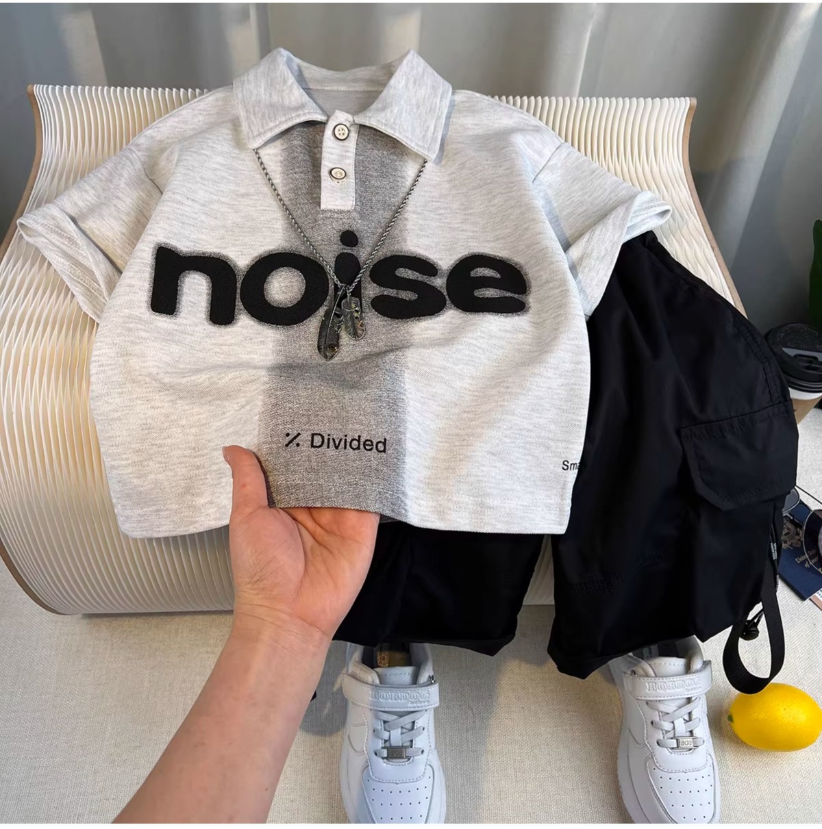 소년 여름 옷 2025 새로운 잘 생긴 어린이 반팔 양복 아기 소년 한국 스타일 티셔츠 카고 반바지 투피스 세트