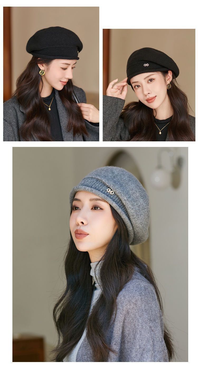 베레모 여성 가을, 겨울 패션 다목적 니트 모자 중년 및 노인 모직 모자 편안하고 따뜻한 크리스마스 모자스토어 가기