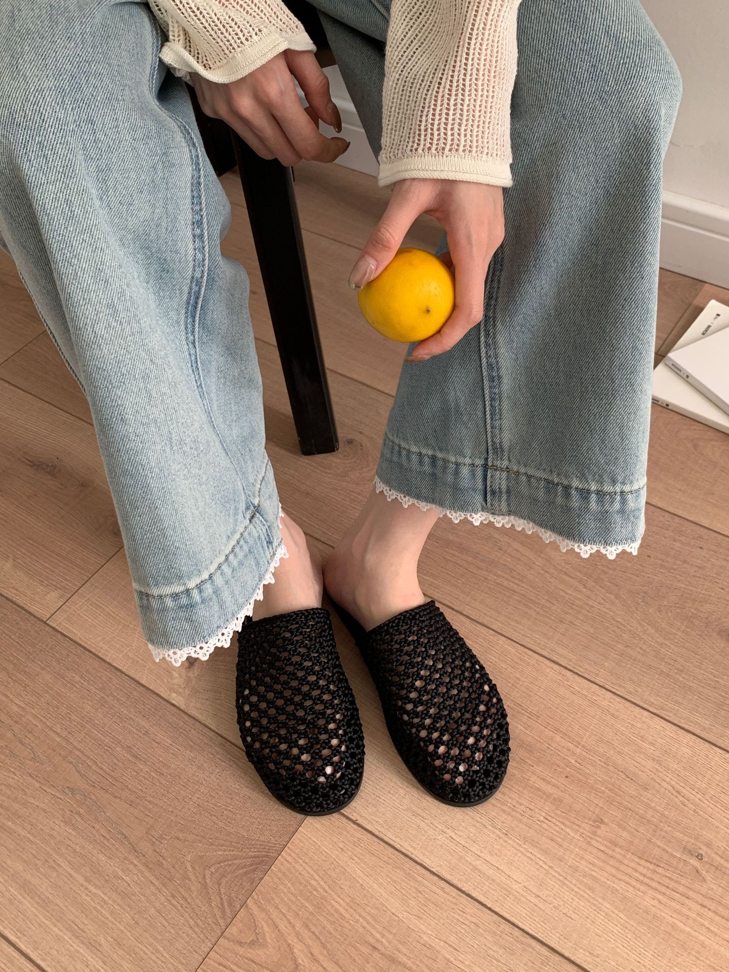짠 메쉬 발가락 반 슬리퍼 여성 신발 외부 착용 2025 여름 플랫 휴가 레트로 로마 샌들