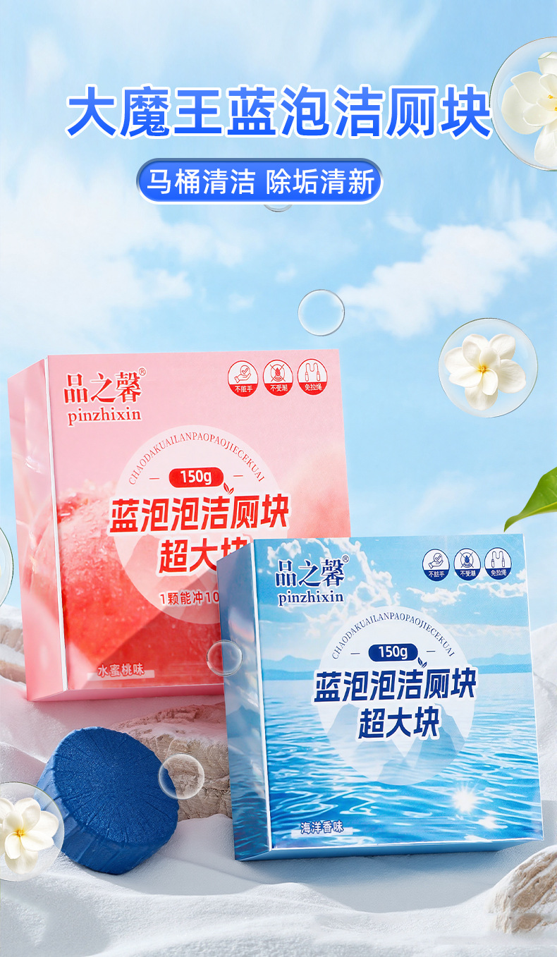 슈퍼 대형 블록 화장실 청소기 화장실 청소기 꽃 블루 버블 탈취제 먼지 청소 화장실 정신 노란색 제거 유물