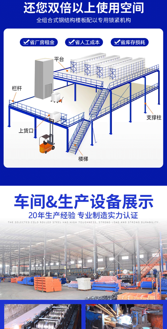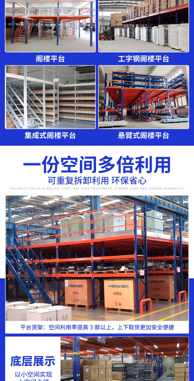 맞춤형 플랫폼 선반 무거운 창고 다층 두꺼운 파티션 용접 무료 건설 생산 사무실 다락방 선반