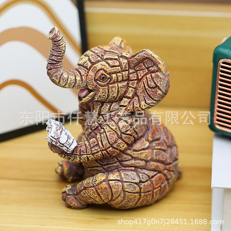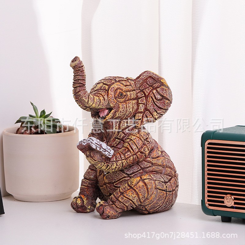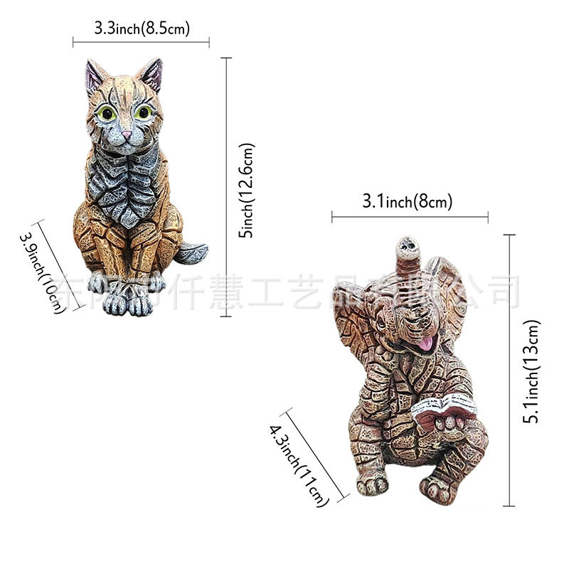 국경을 넘는 새로운 석유화학 고양이 코끼리 조각 수지 장식품 집 안뜰 동물 장식 공예 작은 애완 동물