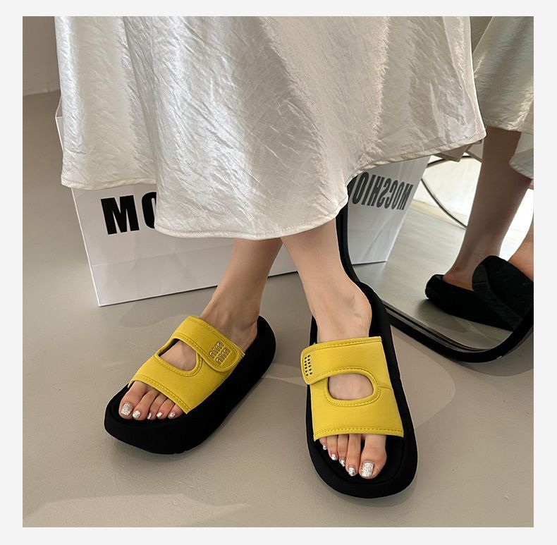 여름 아우터로 입기 좋은 여성용 인터넷 연예인 인기 두꺼운 밑창 슬리퍼 2025 스커트와 비치 슬리퍼가 포함된 새로운 벨크로 샌들