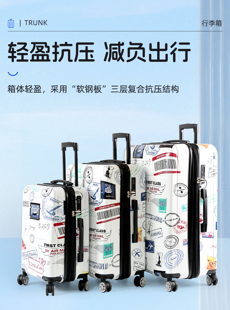 항공 탑승 케이스, 컬러풀한 만화 패턴 트롤리 케이스 20/24/ 28inch 풀 프린트 가방 3피스 맞춤형 세트스토어 가기