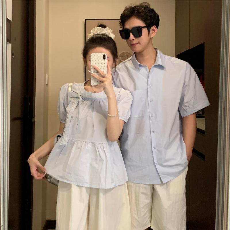 2025 커플 착용 여름 디자인 달콤한 나비 매듭 간단한 파란색 양복 드롭 배송