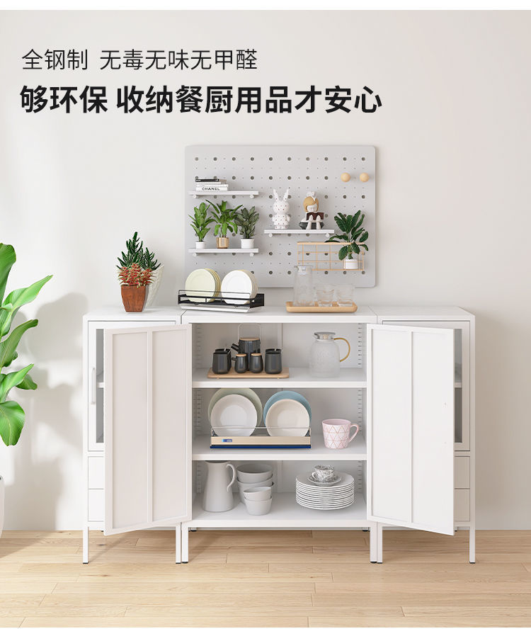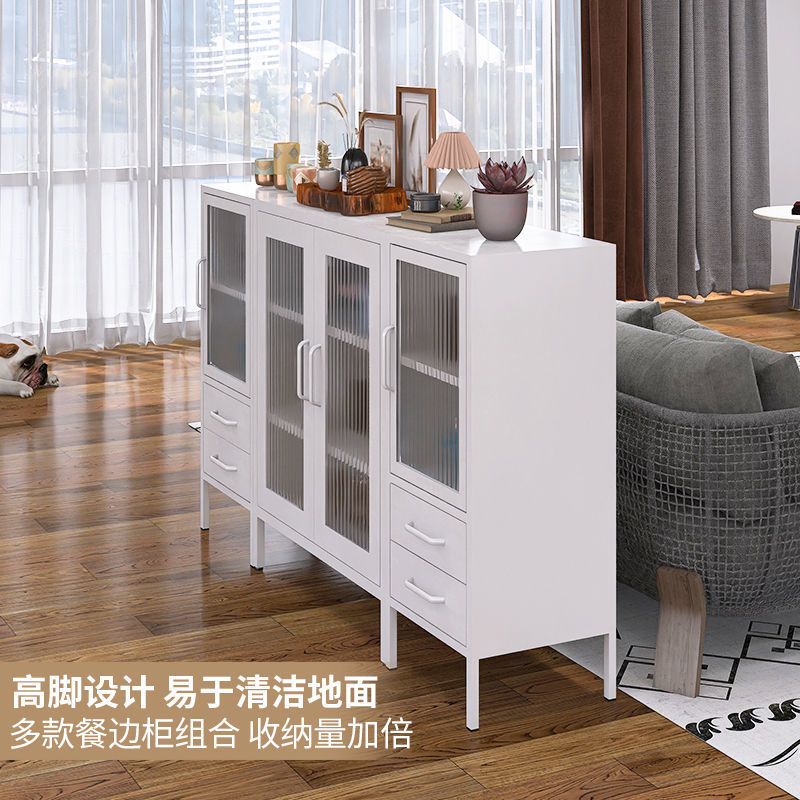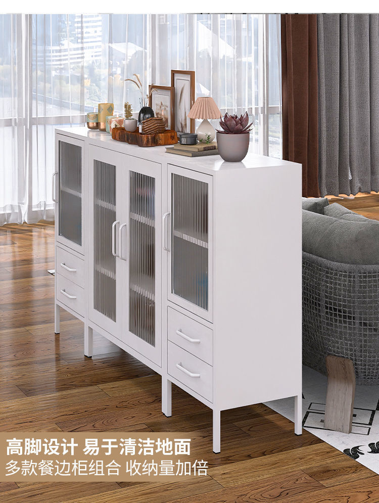철제 찬장 유리 도어 크림 스타일 저장 와인 캐비닛 저장 캐비닛 주방 식기 홈 디스플레이 캐비닛 공급망