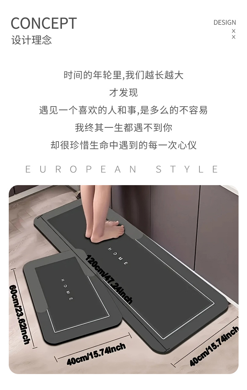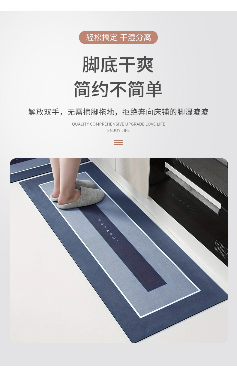 국경을 넘나드는 현대적인 간단한 규조토 진흙 주방 바닥 매트, 미끄럼 방지, 방수, 내유성 및 먼지 방지 바닥 매트, 가정용 간편한 관리 카펫