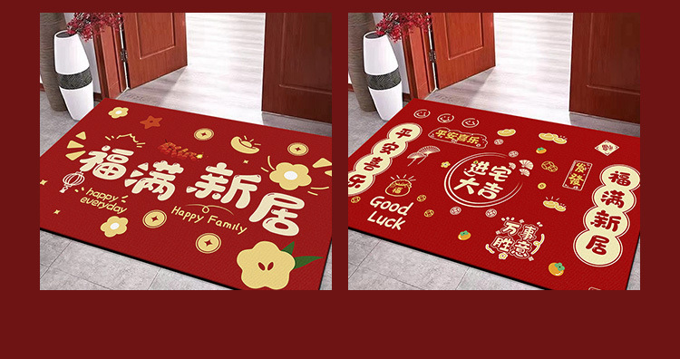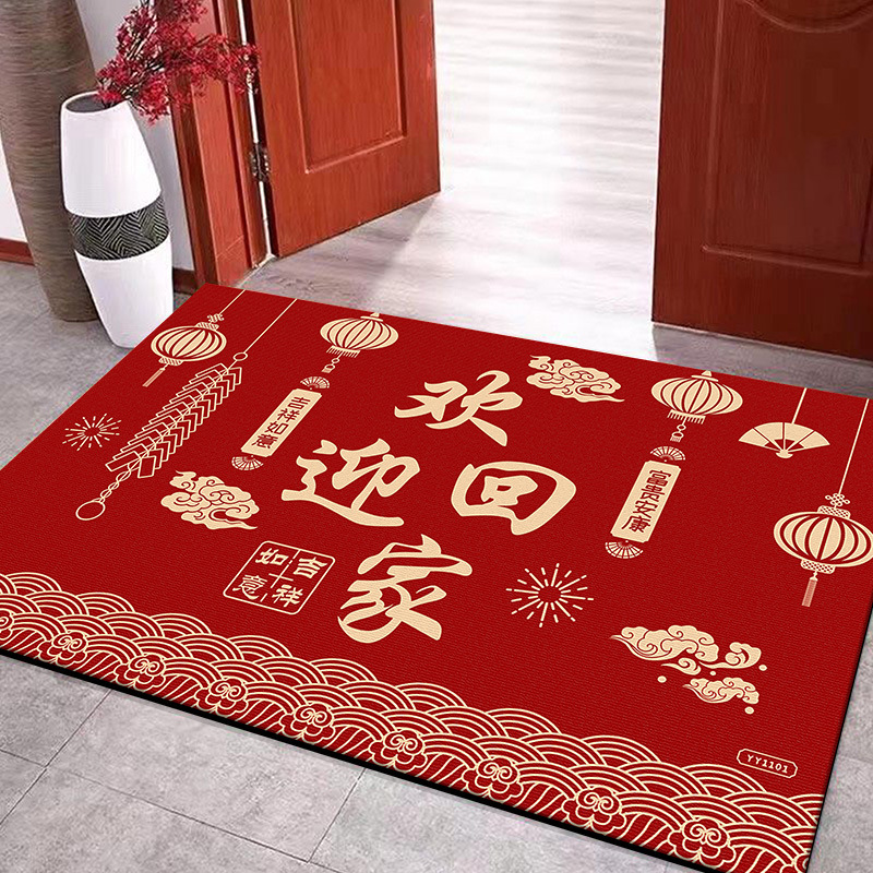 입구용 중국풍 빨간색 축제용 크리스탈 벨벳 매트 가정용 현관문 앞 쉽게 관리 가능한 내마모성 미끄럼 방지 매트스토어 가기
