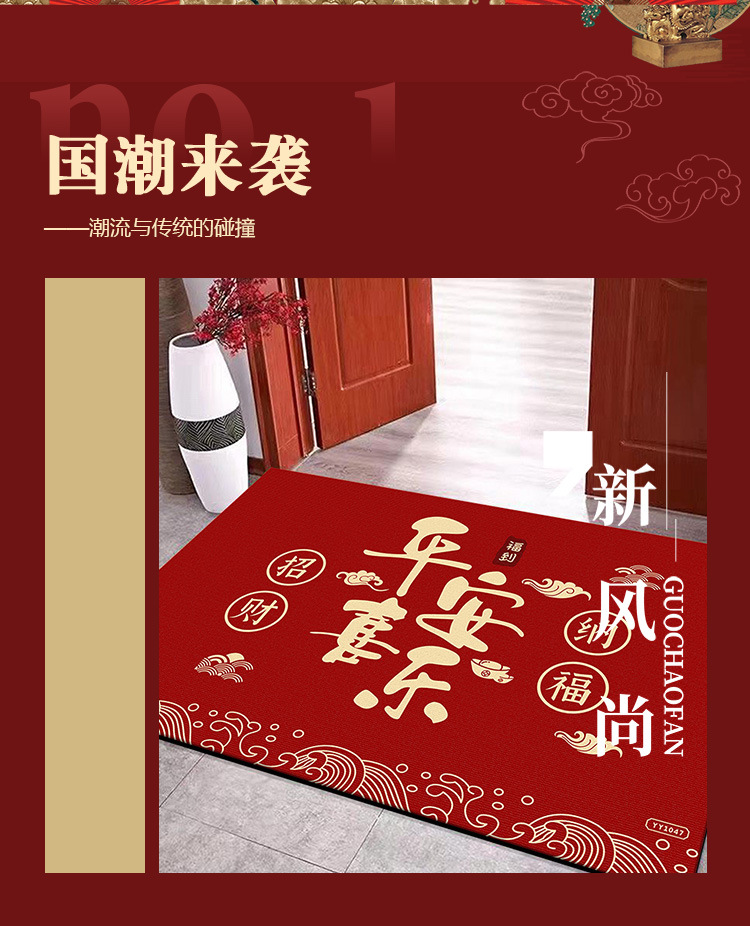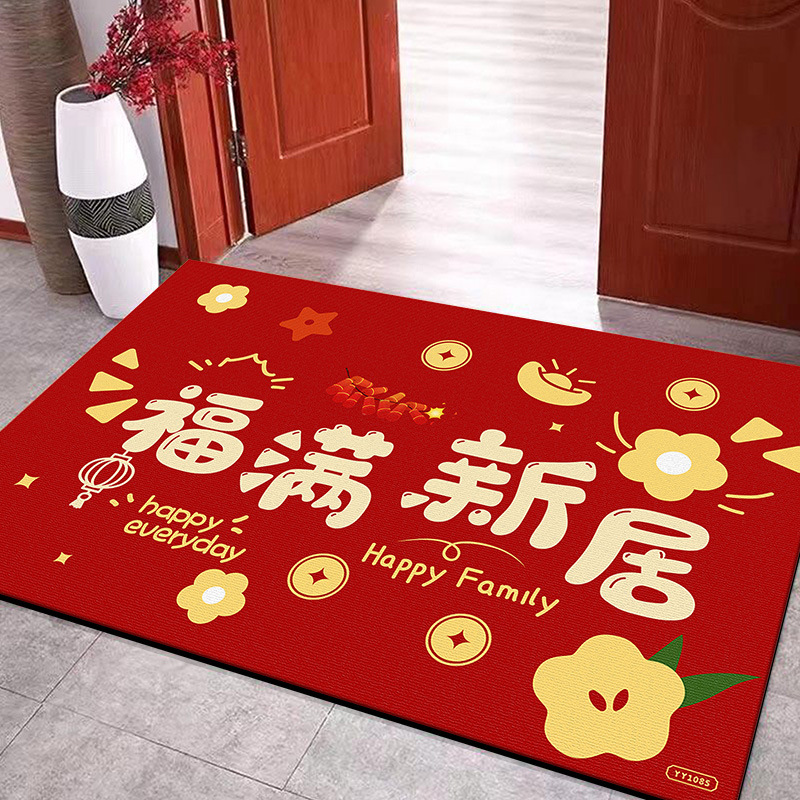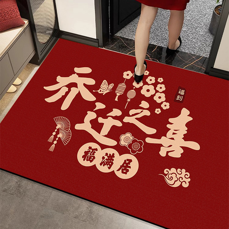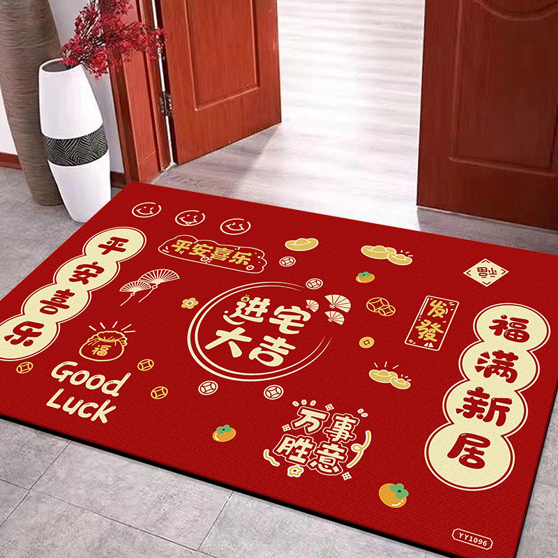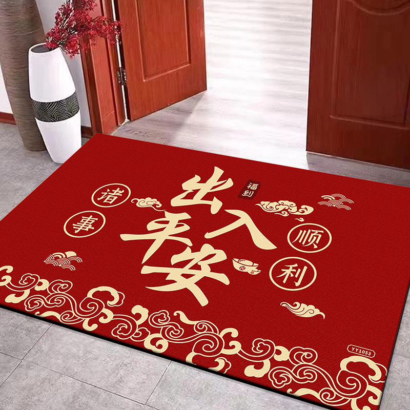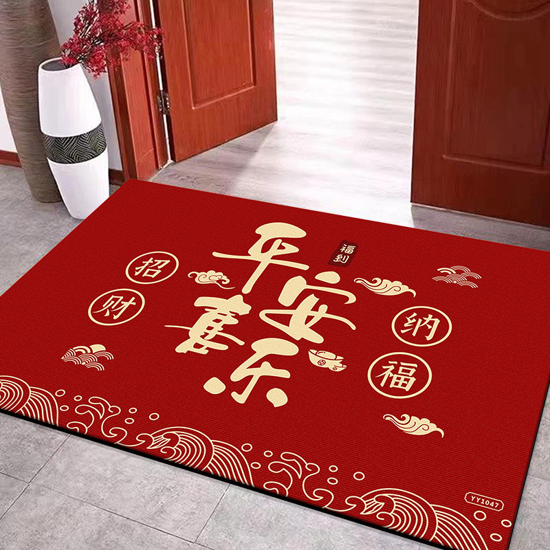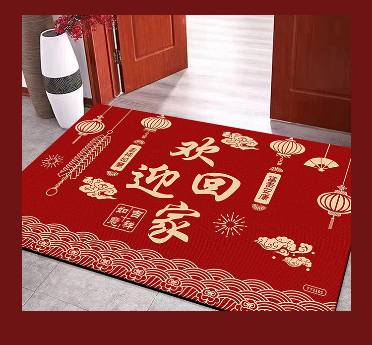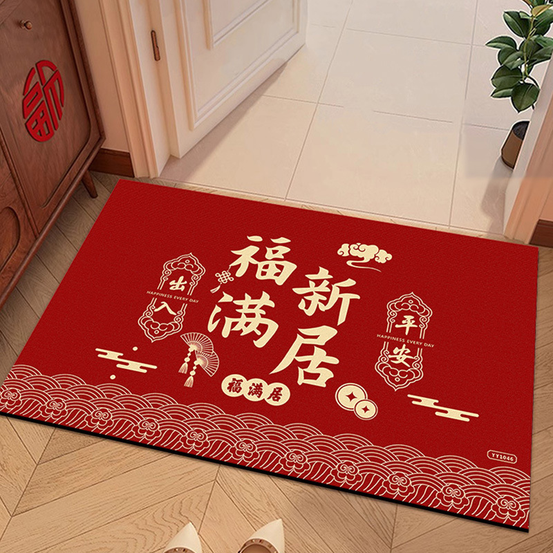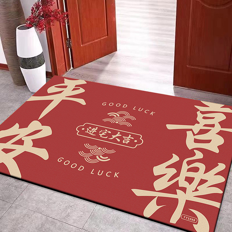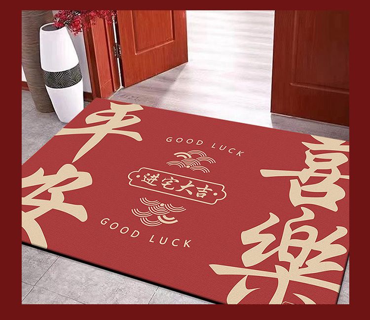 입구용 중국풍 빨간색 축제용 크리스탈 벨벳 매트 가정용 현관문 앞 쉽게 관리 가능한 내마모성 미끄럼 방지 매트